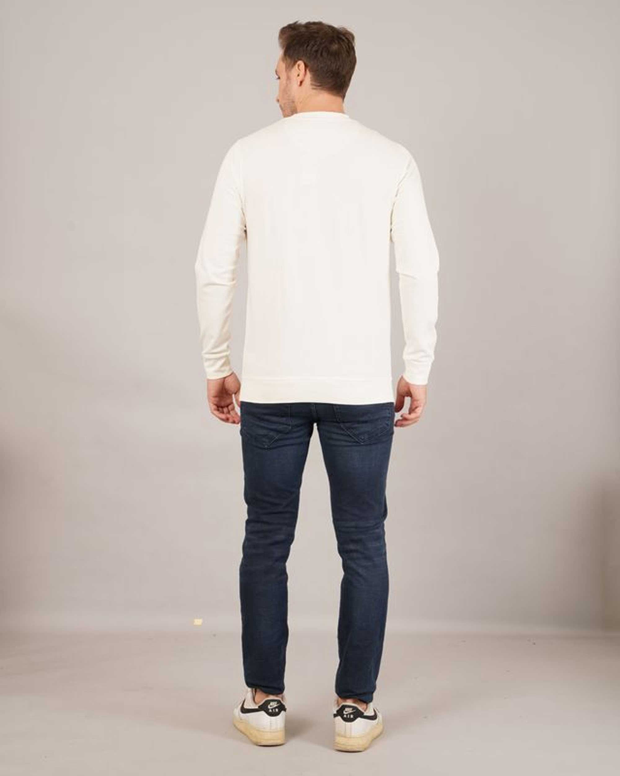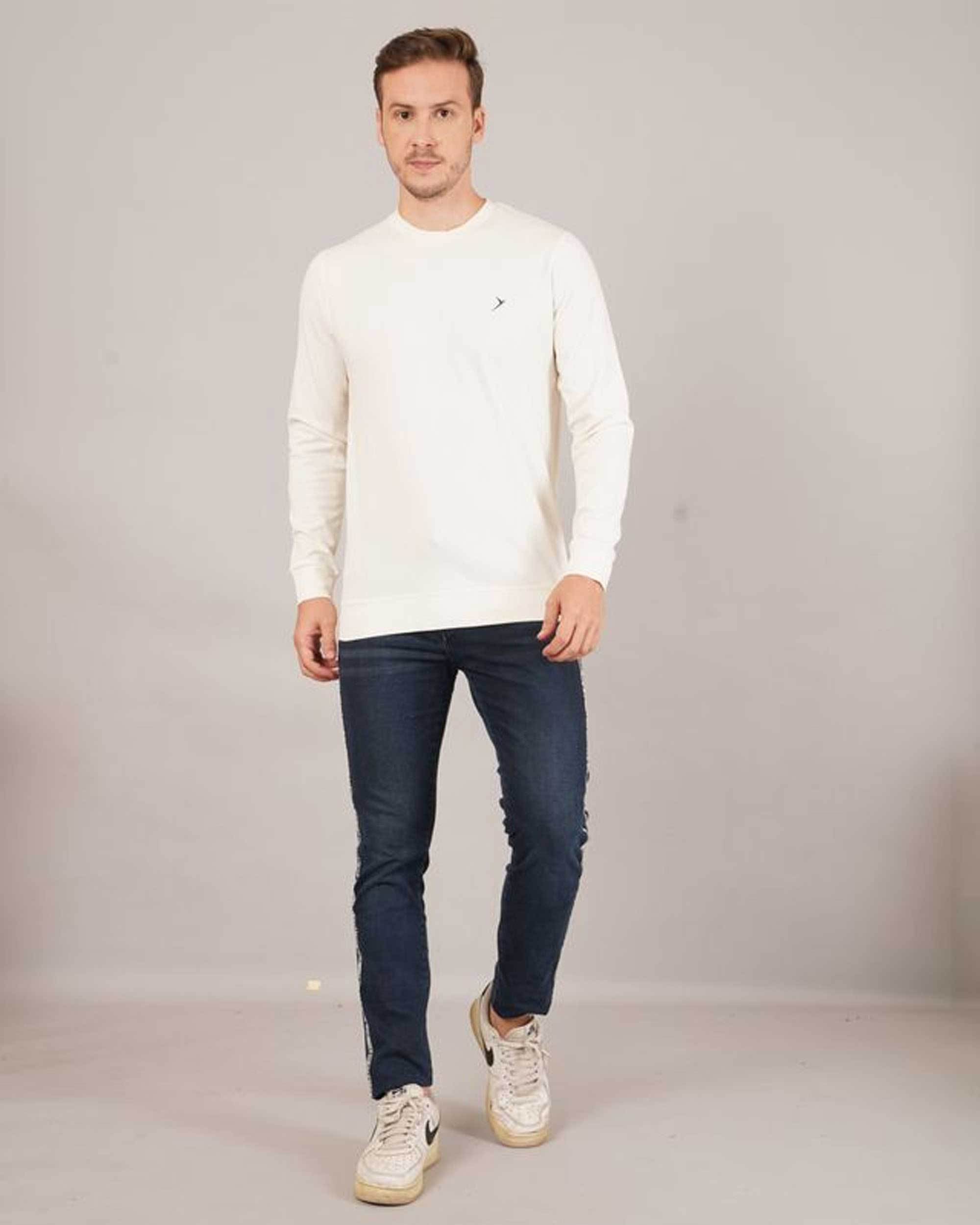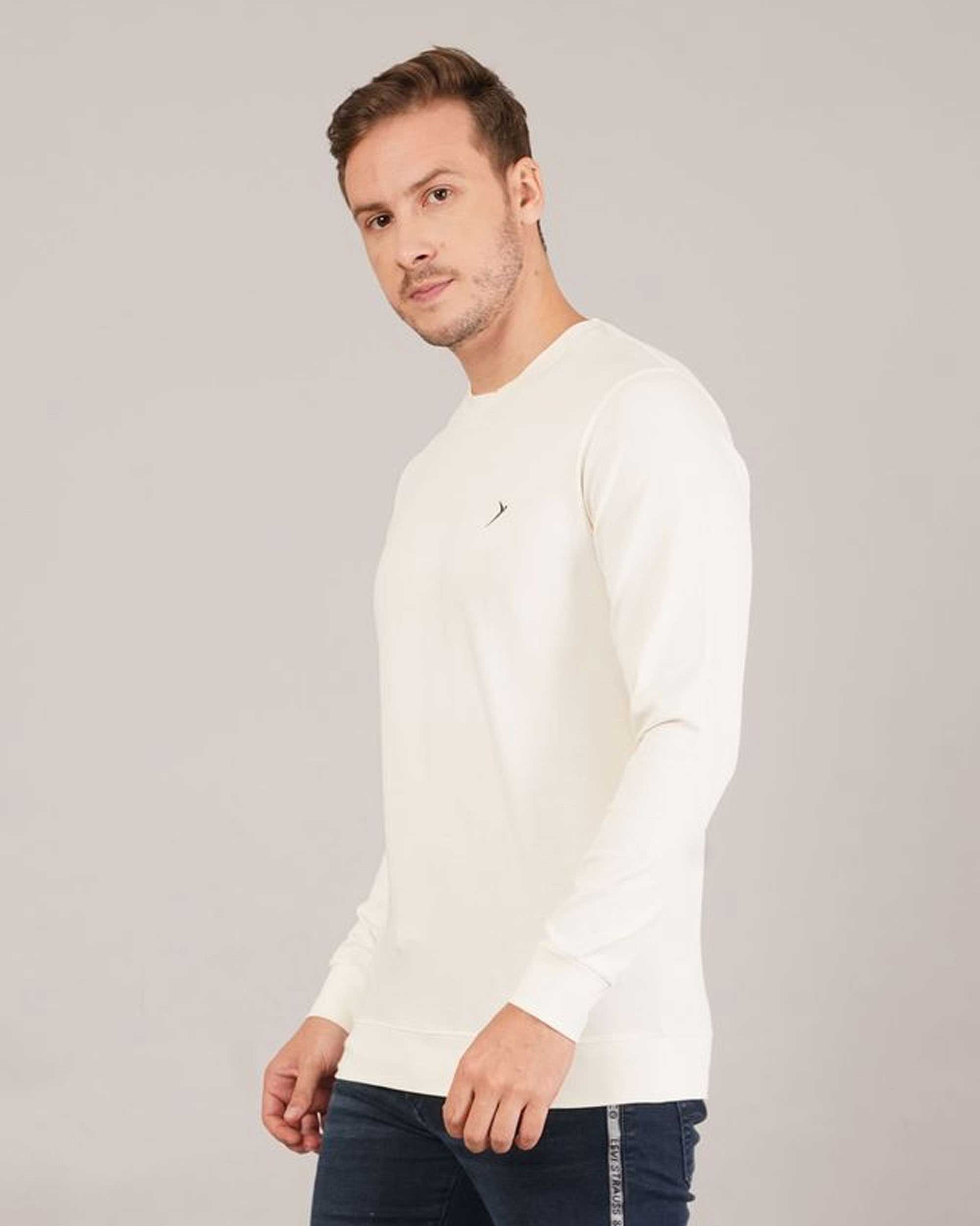 Stay cozy and stylish with this off-white solid sweatshirt. Made from a soft cotton-blend fabric, it features a round neck, full sleeves, and ribbed hems for a snug fit. The minimal chest logo design adds a touch of sophistication, making it ideal for casual outings or relaxed weekends.