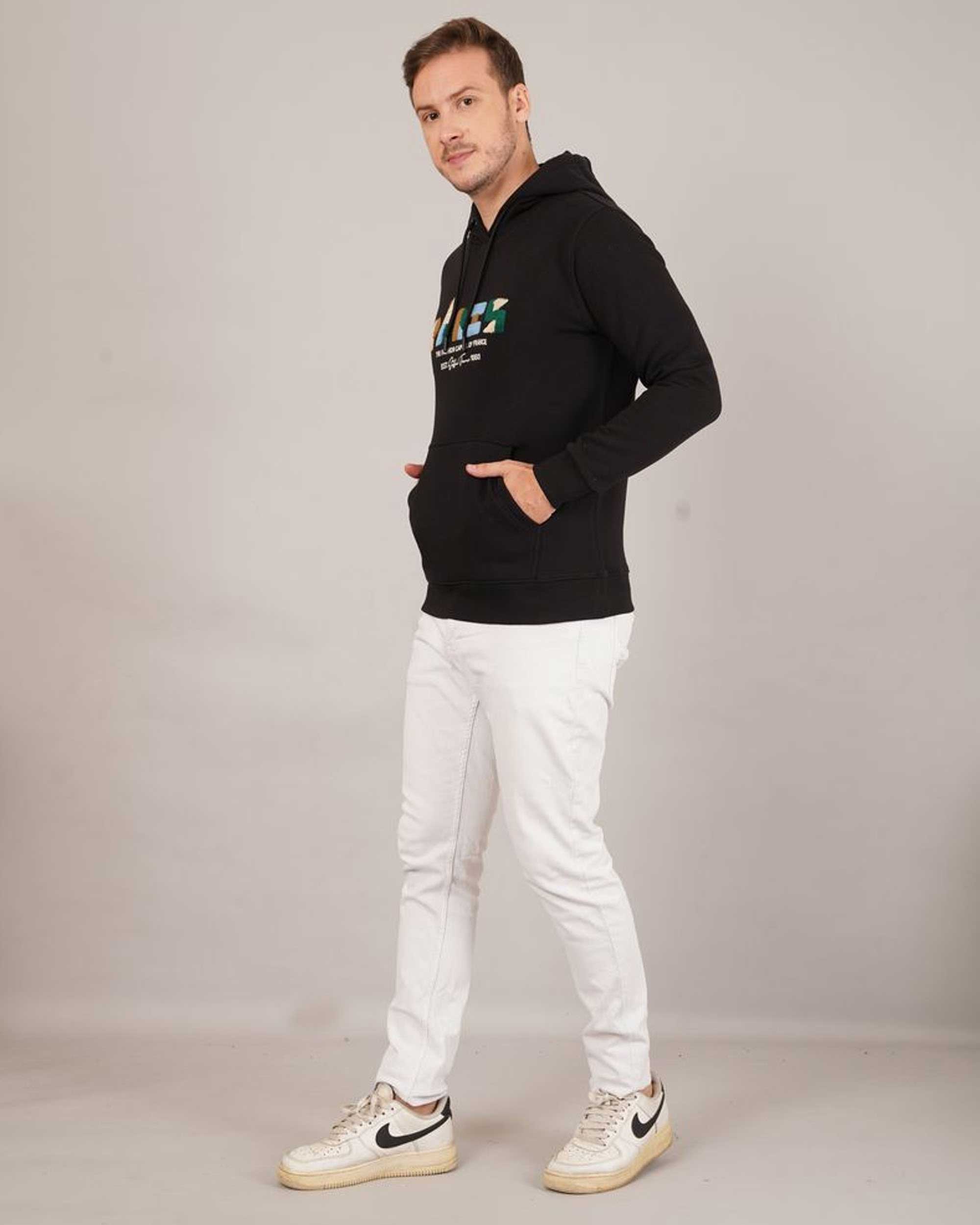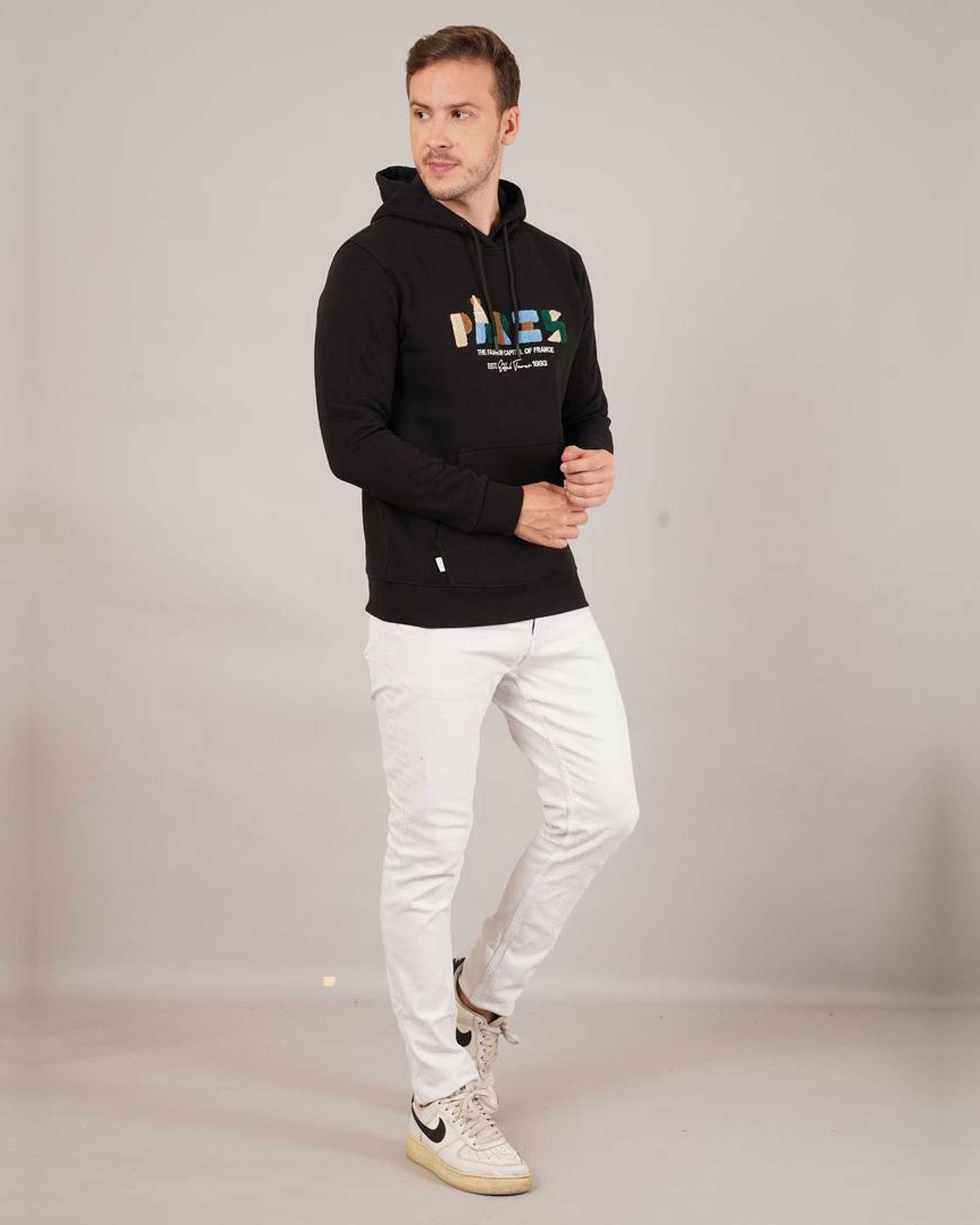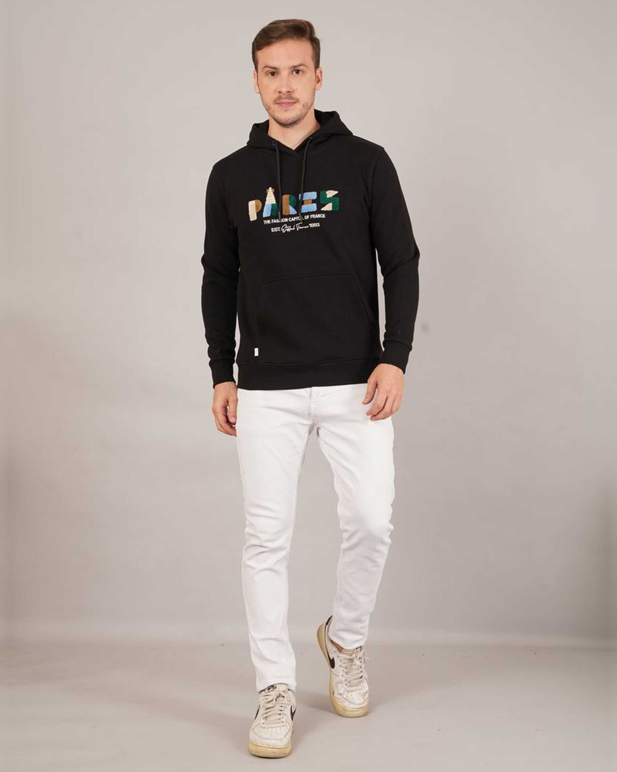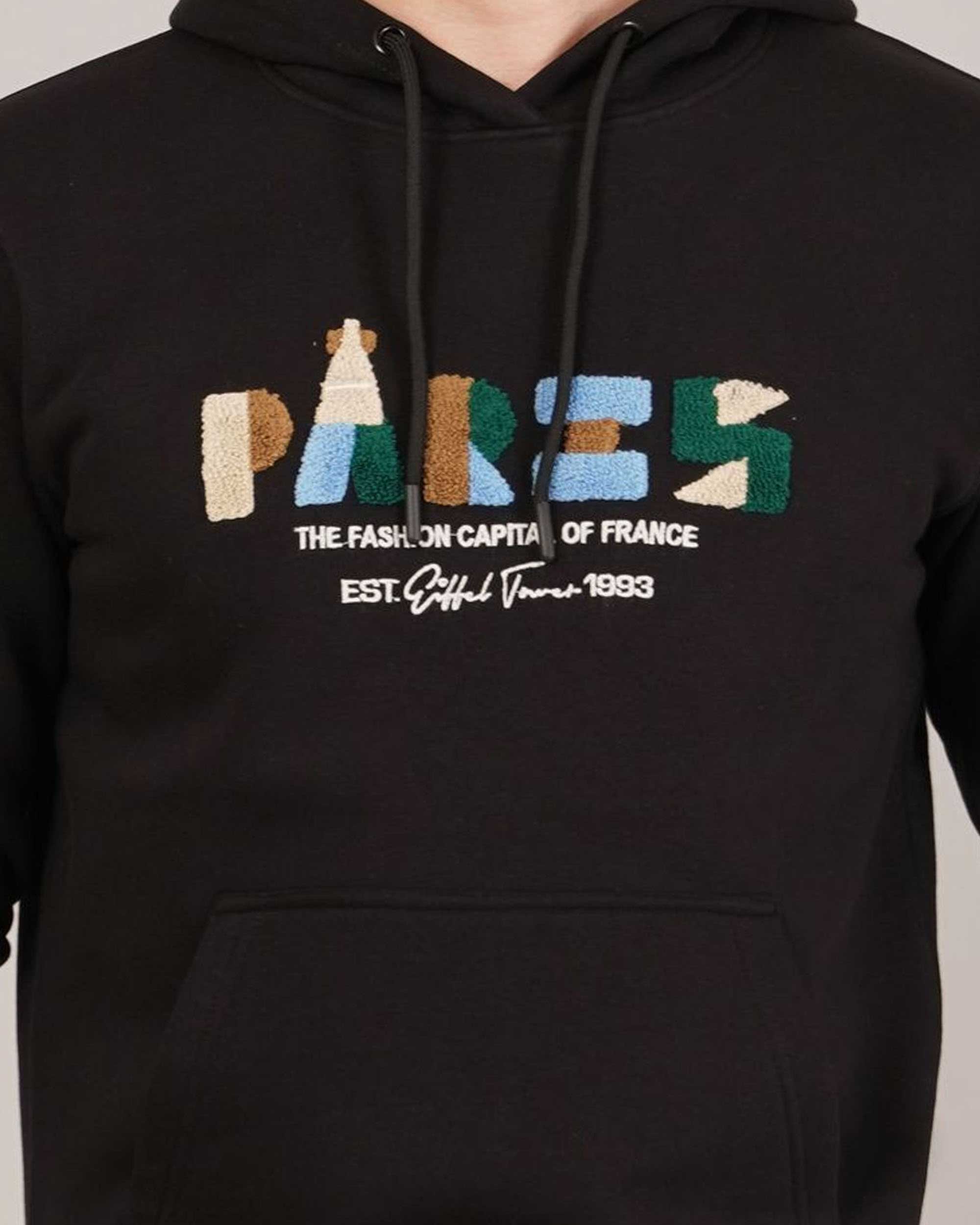Add a modern streetwear vibe to your winter look with this stylish black printed hoodie for men. Featuring a bold “PARIS – The Fashion Capital of France” text on the front, this hoodie combines comfort with trend. Crafted from premium cotton fleece, it keeps you warm and cozy while maintaining breathability. The adjustable drawstring hood and kangaroo pocket enhance practicality and style. Perfect for casual outings, travel, or everyday wear.