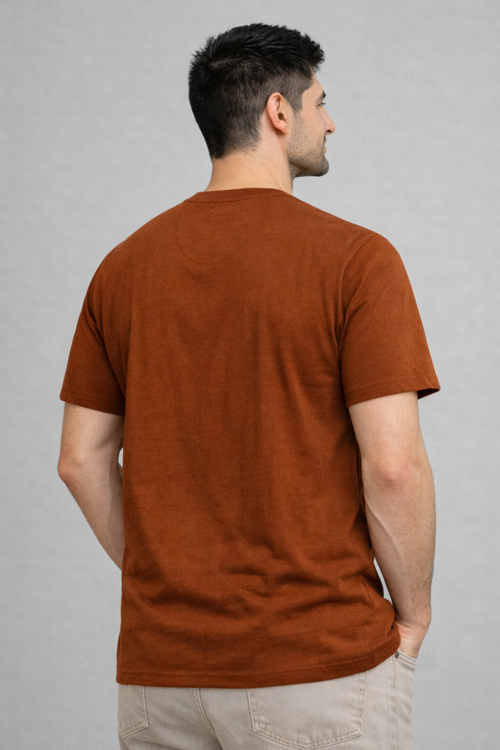 Whether you're lounging around or out with friends, this T-shirt makes a statement. The deep rust color makes it versatile and easy to pair with jeans, shorts, or even casual jackets. It’s an essential addition for anyone who values trendy yet comfortable clothing. Whether worn on a casual outing or as part of a streetwear look, this T-shirt blends fashion and function seamlessly.