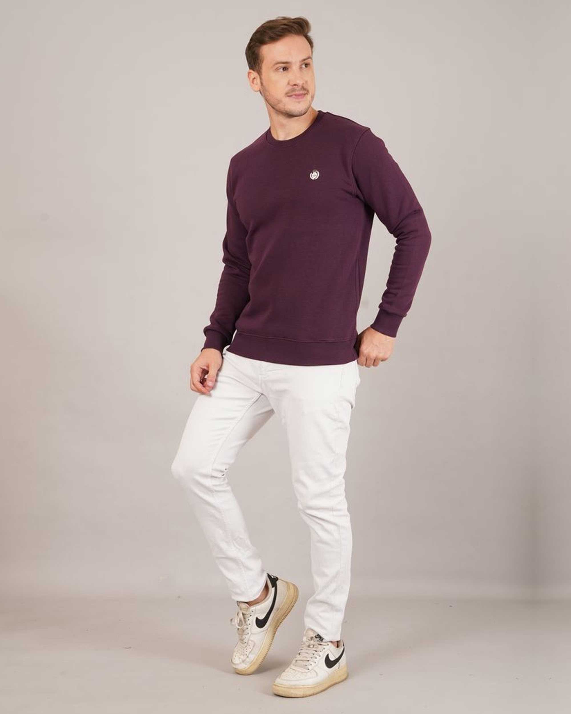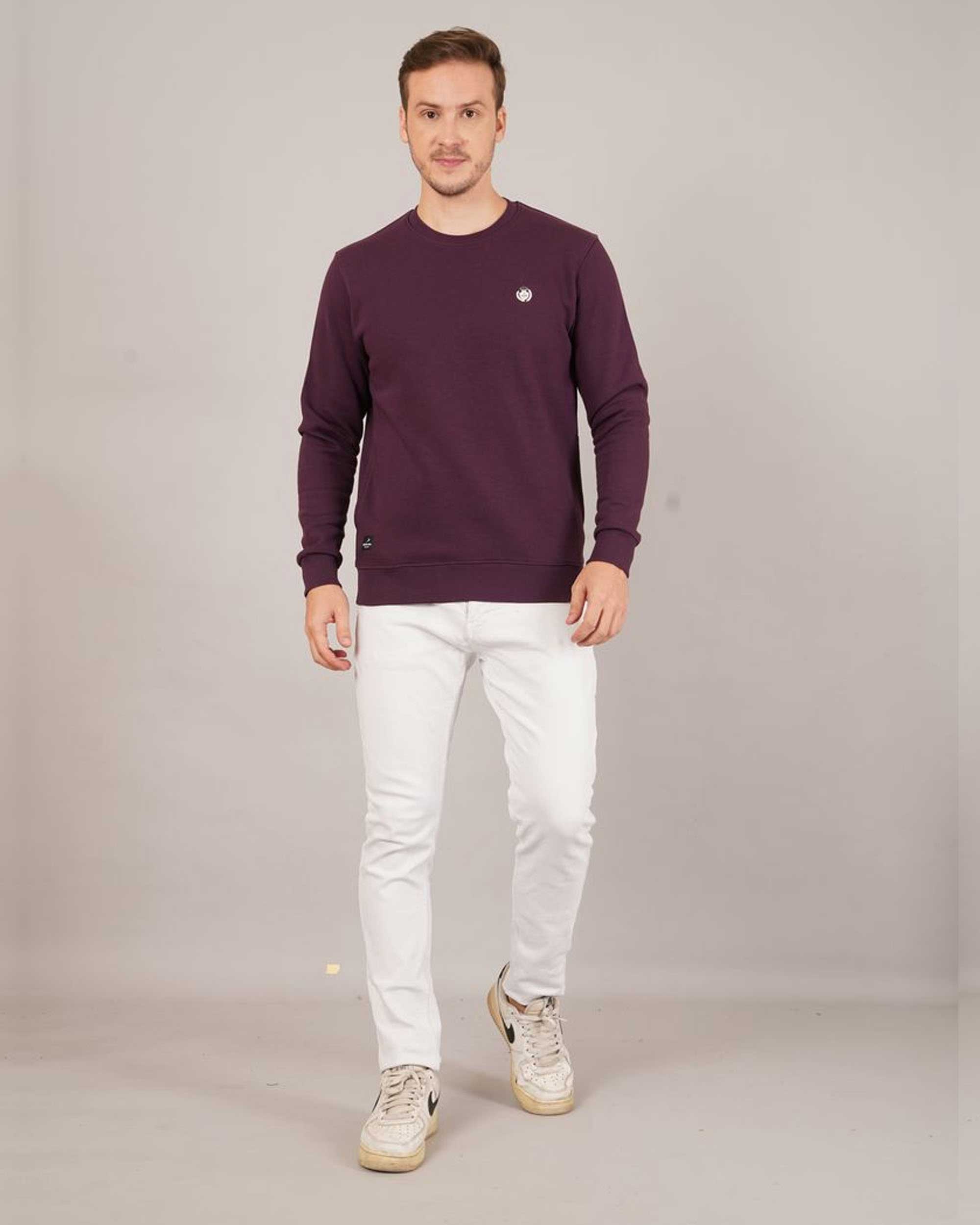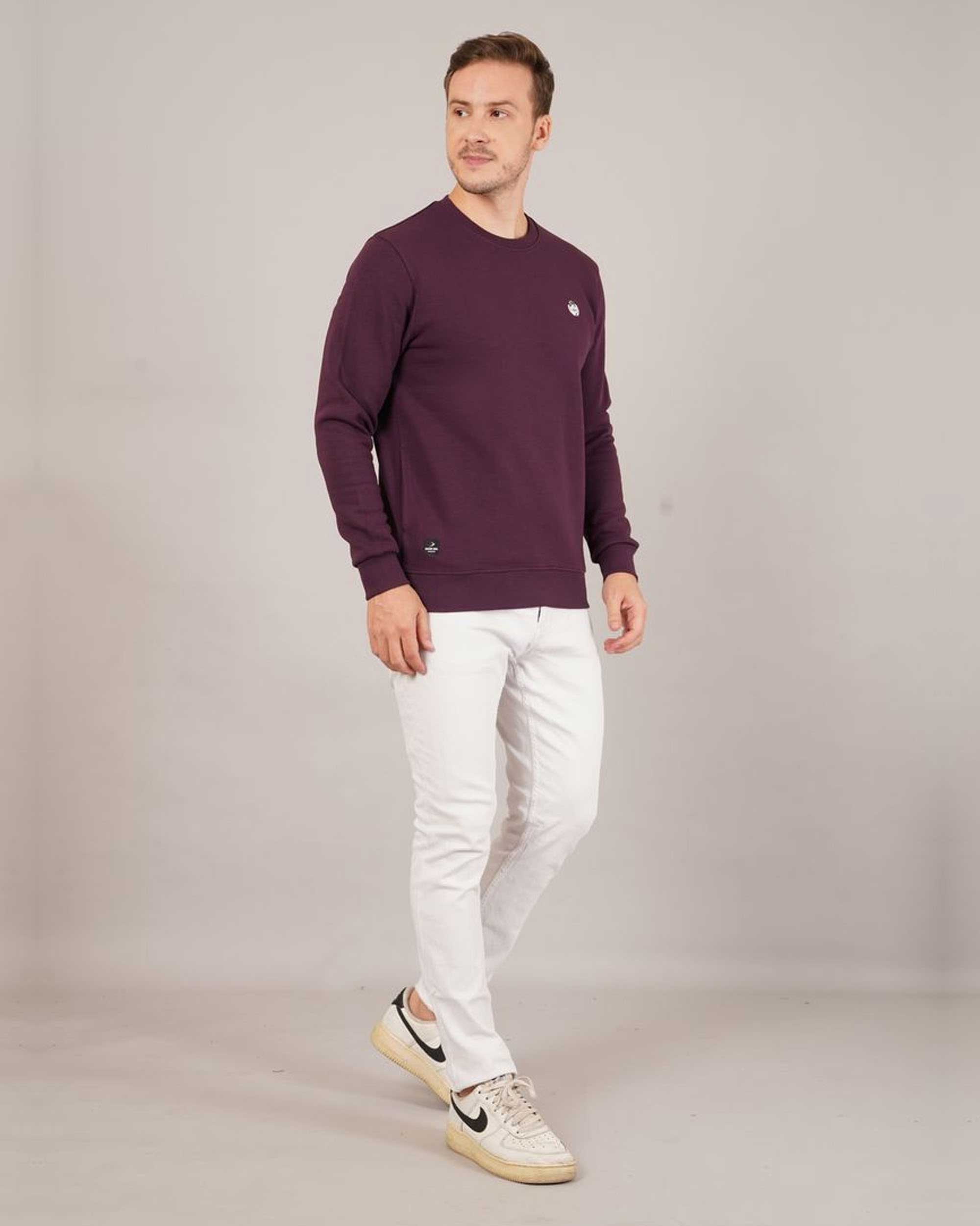 Upgrade your winter wardrobe with this stylish maroon solid sweatshirt for men. Featuring a minimal design with a subtle chest logo, this sweatshirt offers a perfect blend of comfort and modern style. Made from soft cotton fleece fabric, it keeps you warm while ensuring breathability. The crew neck, full sleeves, and ribbed hem give it a classic yet trendy look ideal for casual outings or everyday wear.