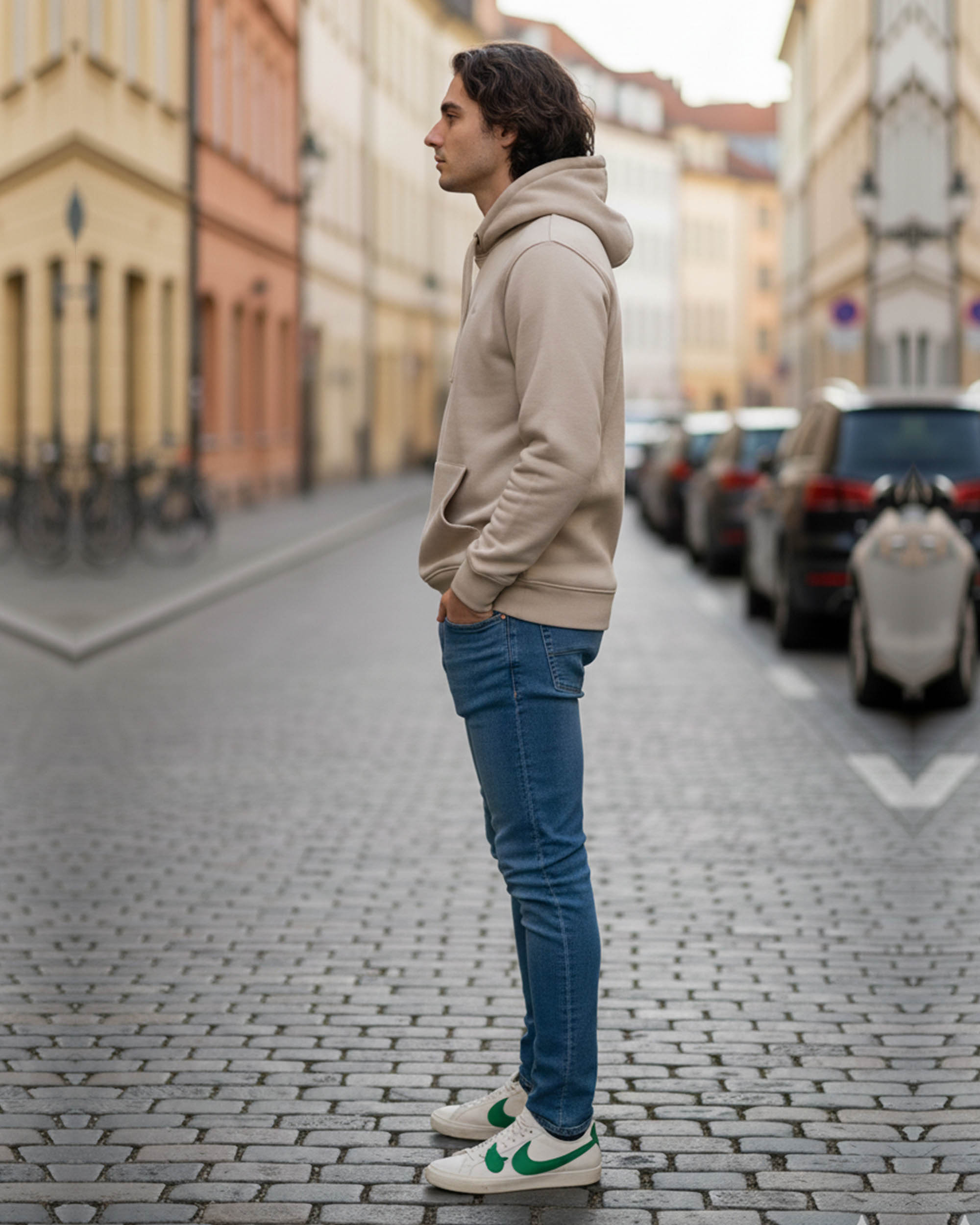 Upgrade your casual wardrobe with this solid beige hooded sweatshirt, designed for modern men who prefer comfort with a stylish edge. Crafted from a premium cotton-blend fabric, this hoodie provides warmth, softness, and breathability for everyday wear.