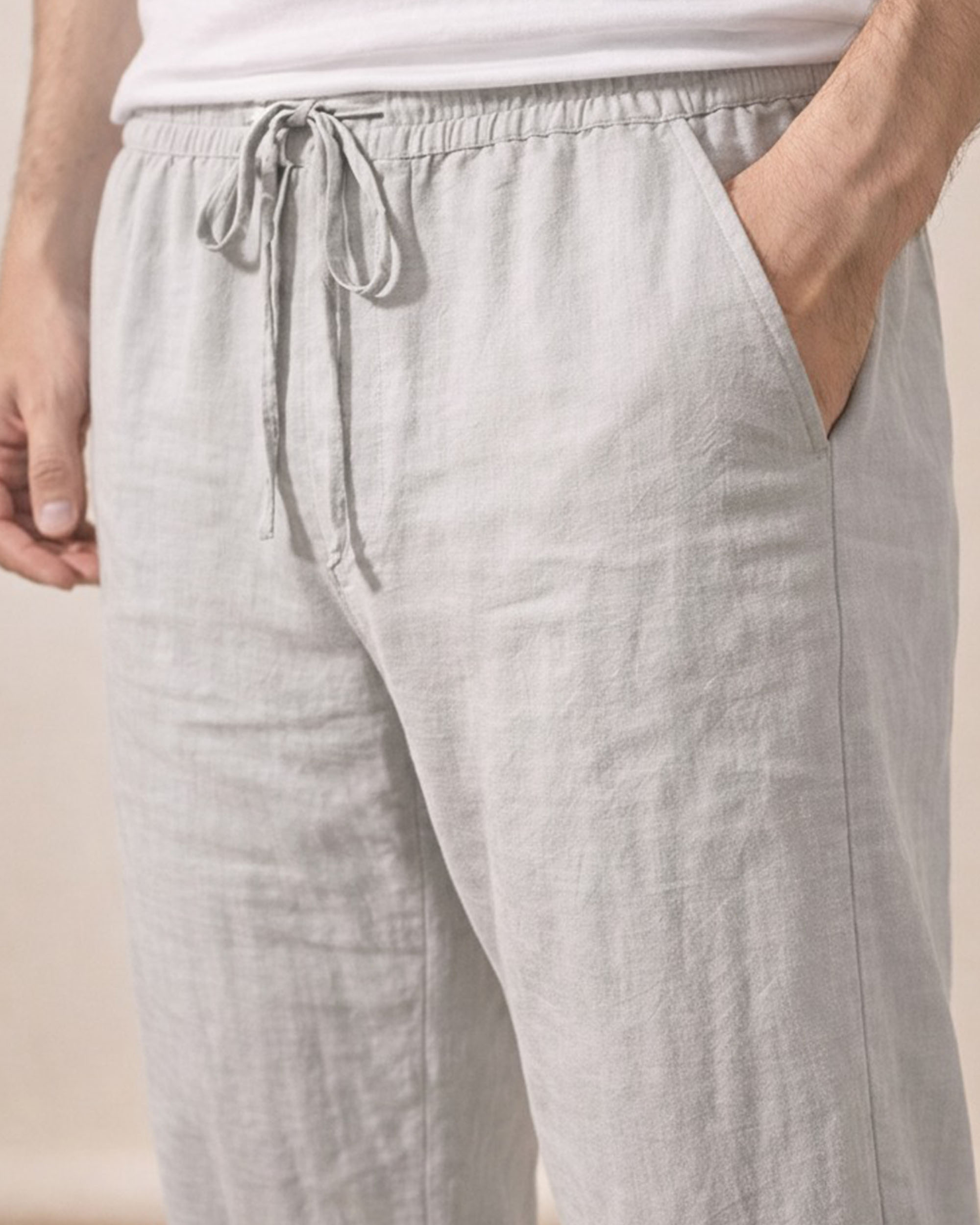 Upgrade your summer wardrobe with these stylish men’s linen blend casual trousers. Designed with breathable and lightweight fabric, these pants offer superior comfort and airflow, making them perfect for warm weather and everyday wear.