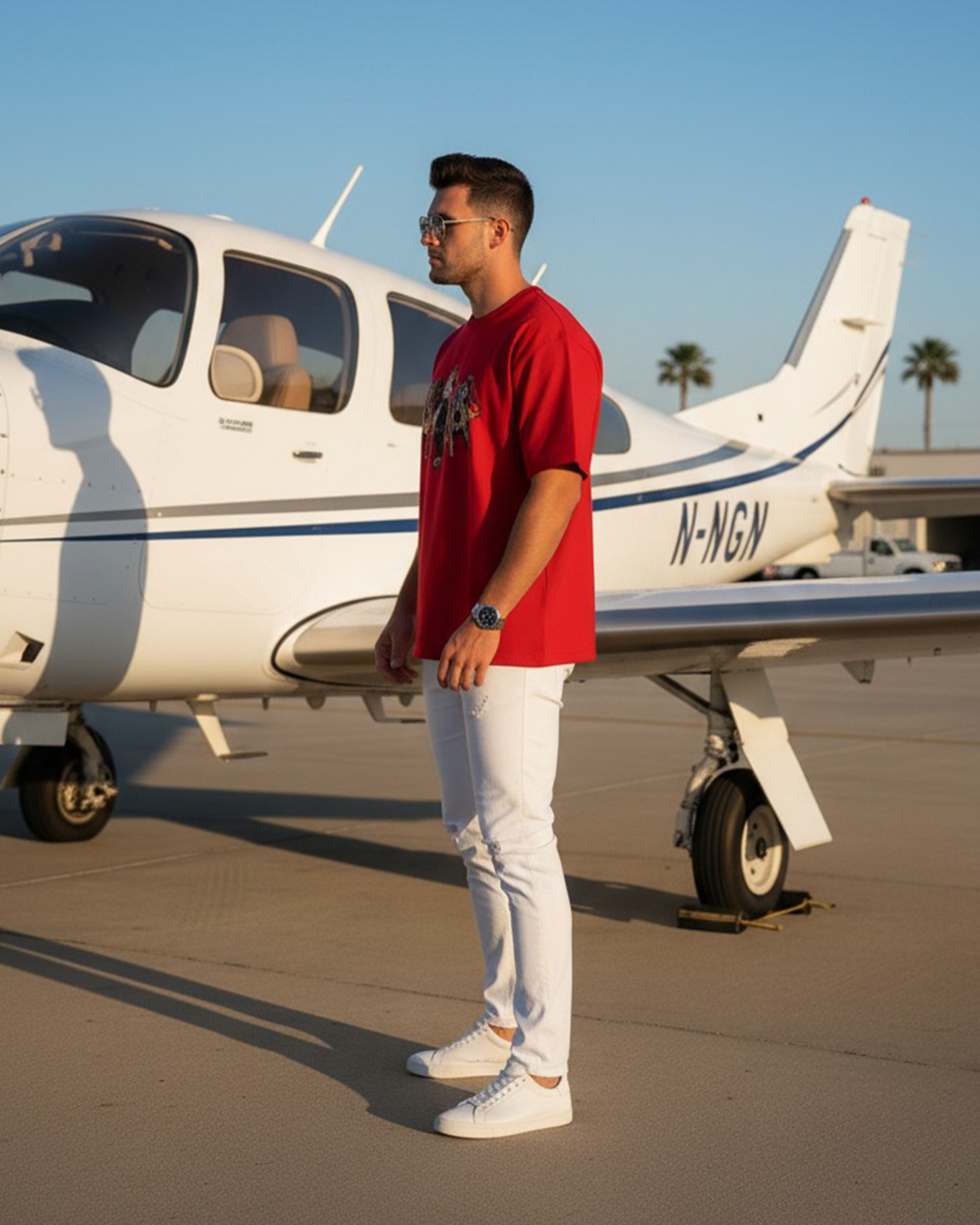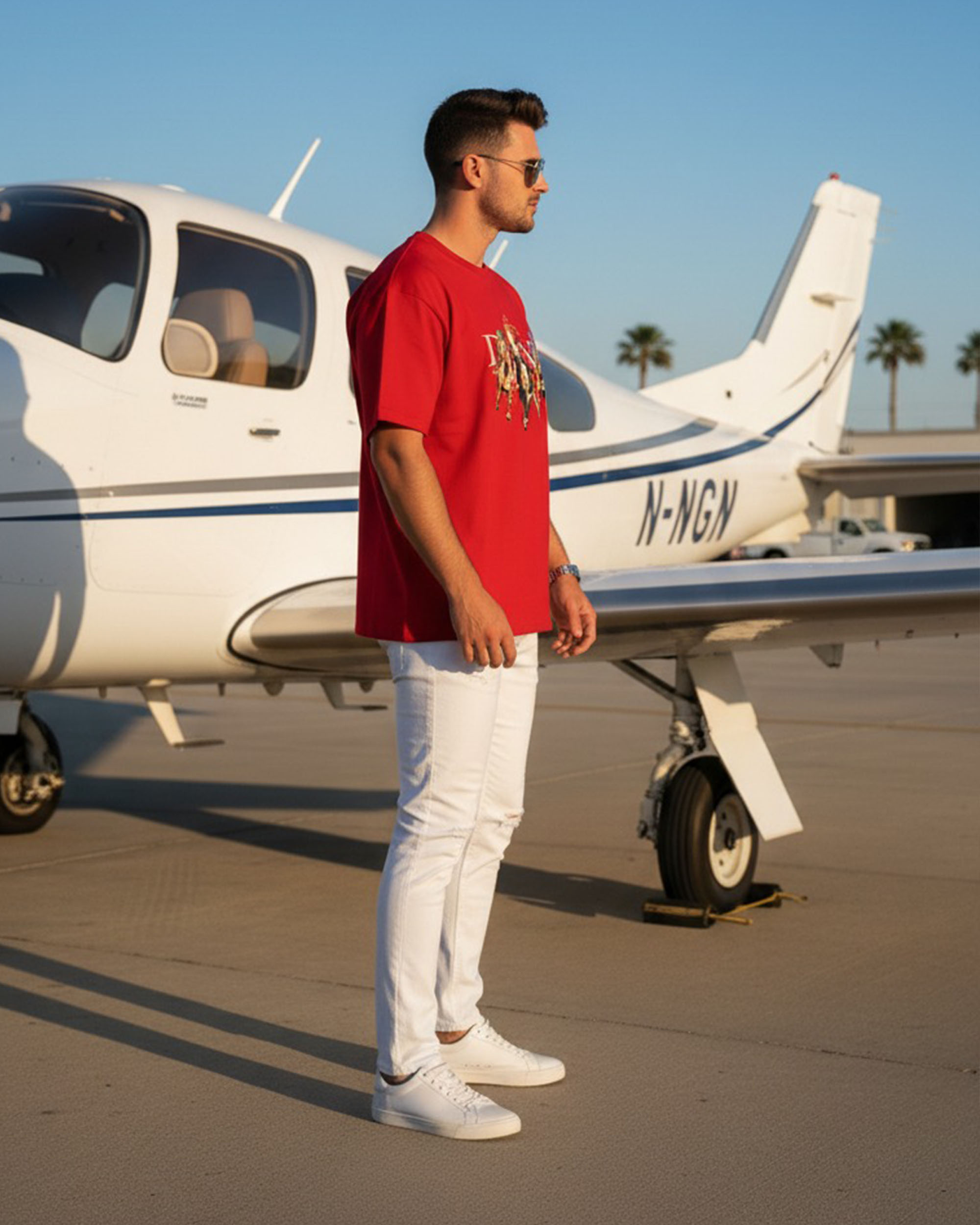 Upgrade your streetwear collection with this luxury oversized printed T-shirt featuring a premium horse-racing artwork design. Crafted using high-quality breathable cotton, this tee ensures maximum comfort while maintaining shape and color even after multiple washes. Perfect for fashion-forward men who love bold and stylish looks. Pair it with denim, joggers, or cargos for an iconic casual or airport outfit.