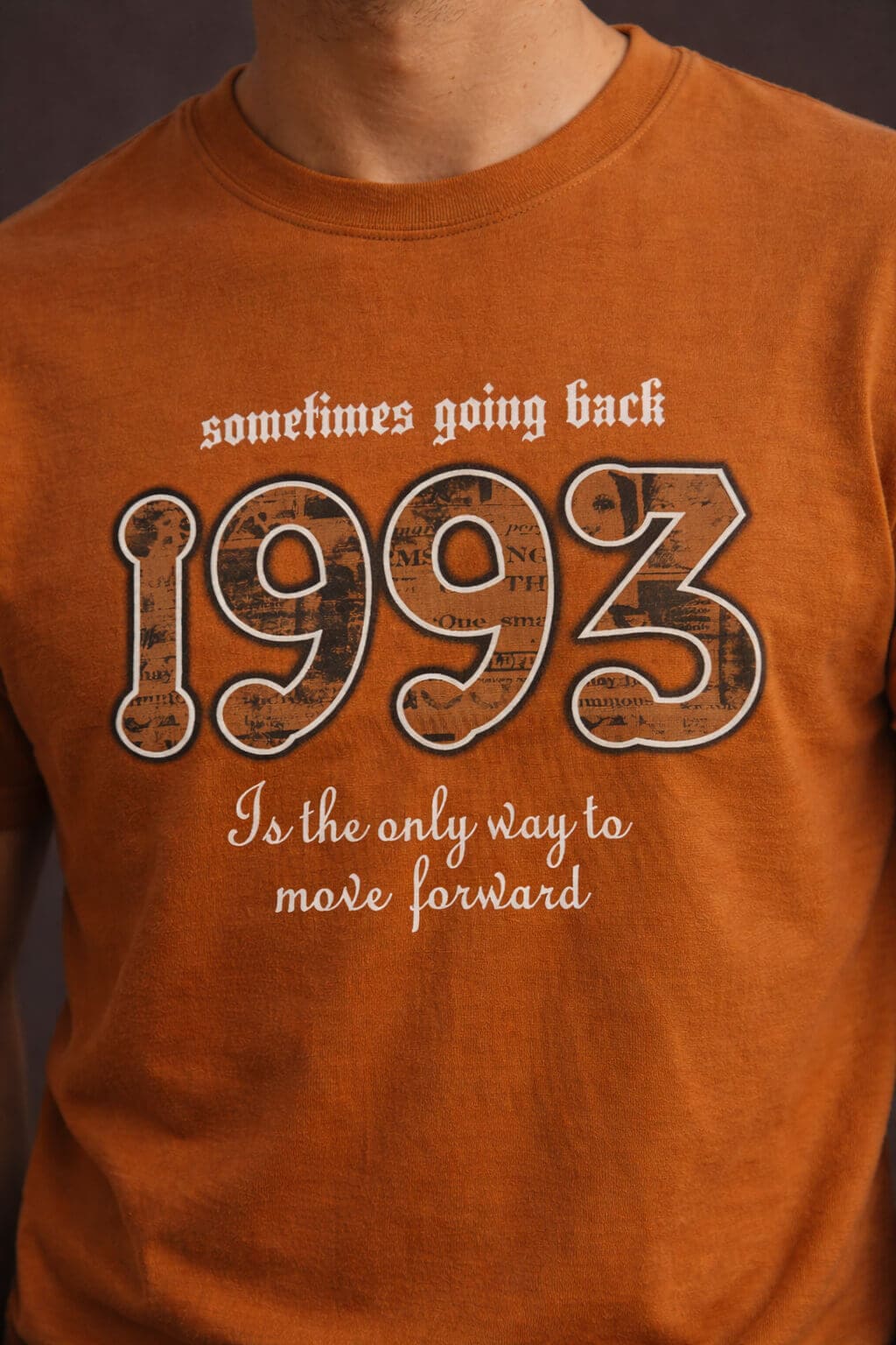 The front features a bold “1993” graphic print, complemented by stylish typography that adds depth and character to the design. The combination of vintage-inspired artwork and contemporary fit makes this T-shirt ideal for those who want to express individuality through fashion.