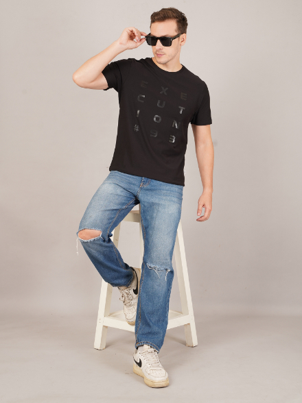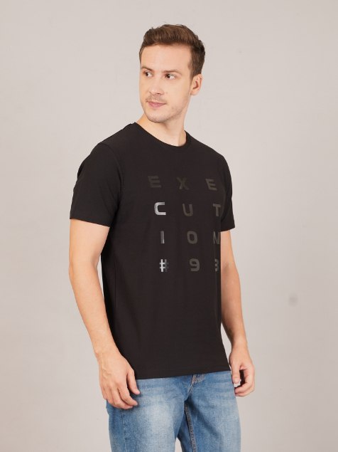 This BLACK T-shirt stands out with its raised “EXECUTION #93” lettering on the front. Crafted from smooth stretch fabric, it offers a clean and modern look suitable for casual outings and everyday style.