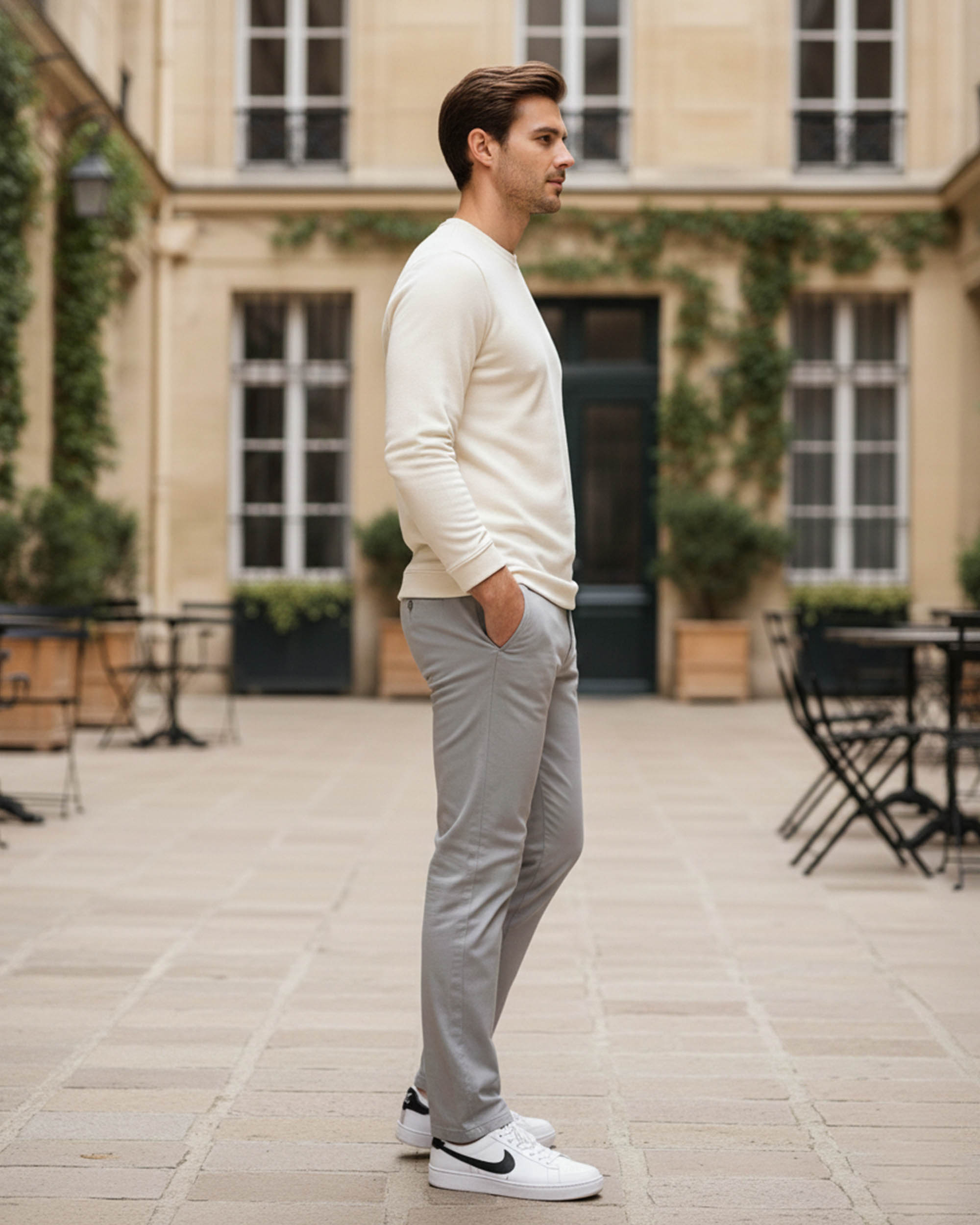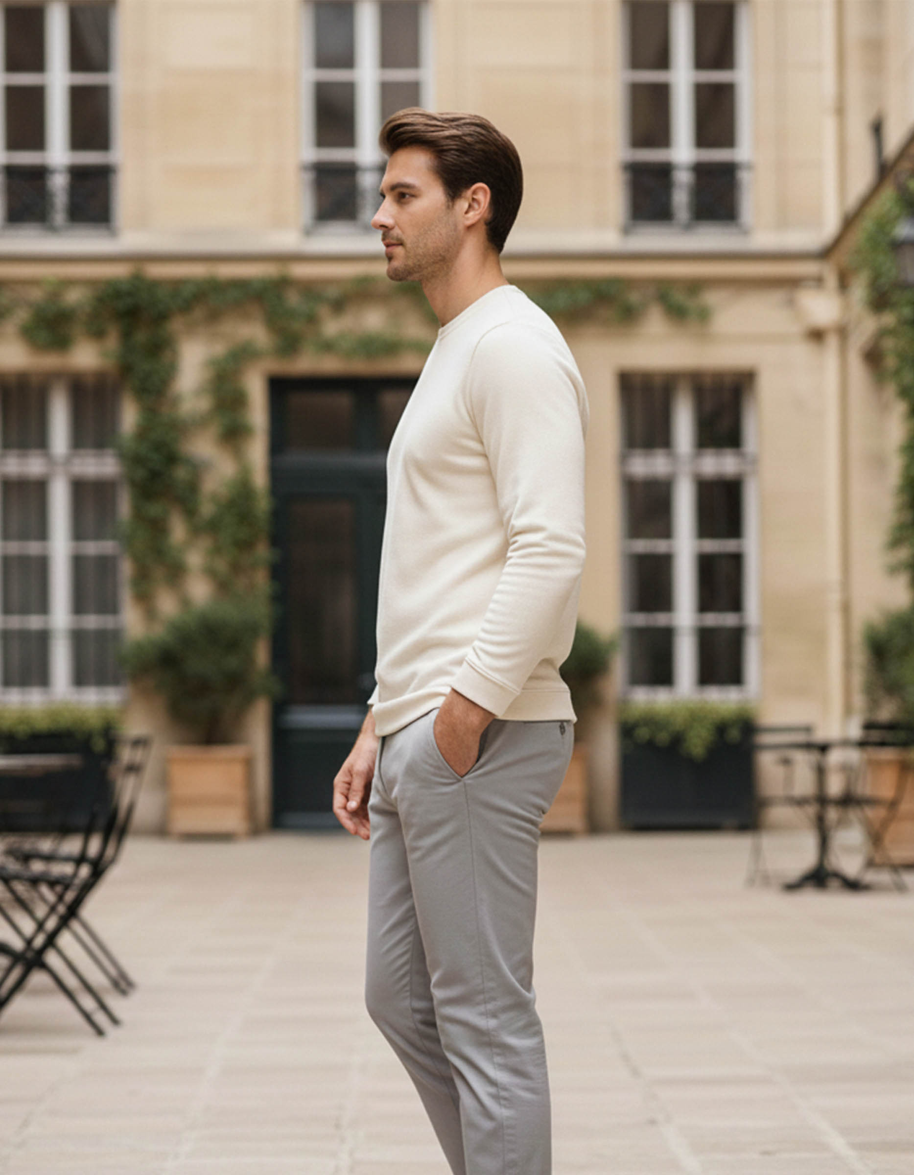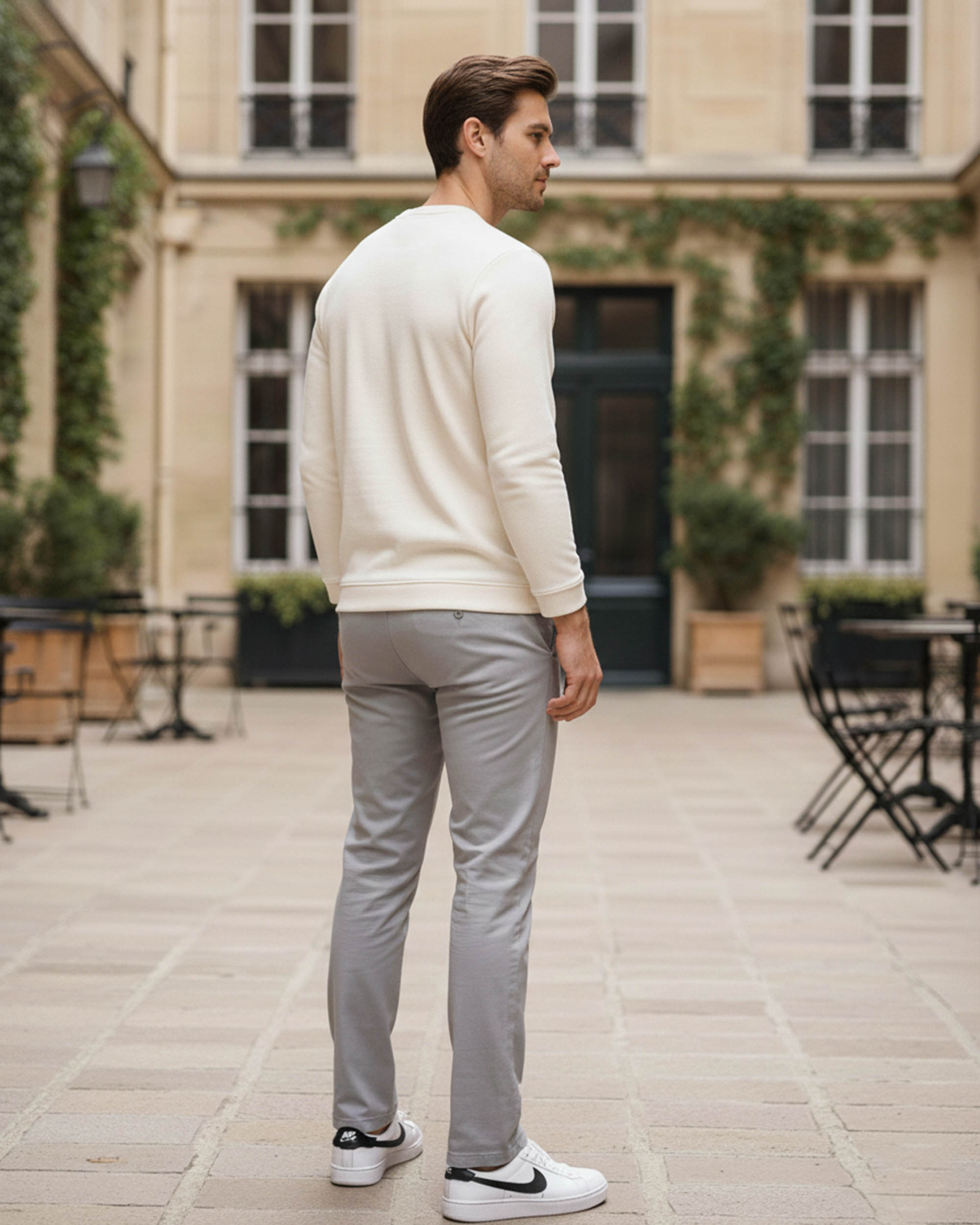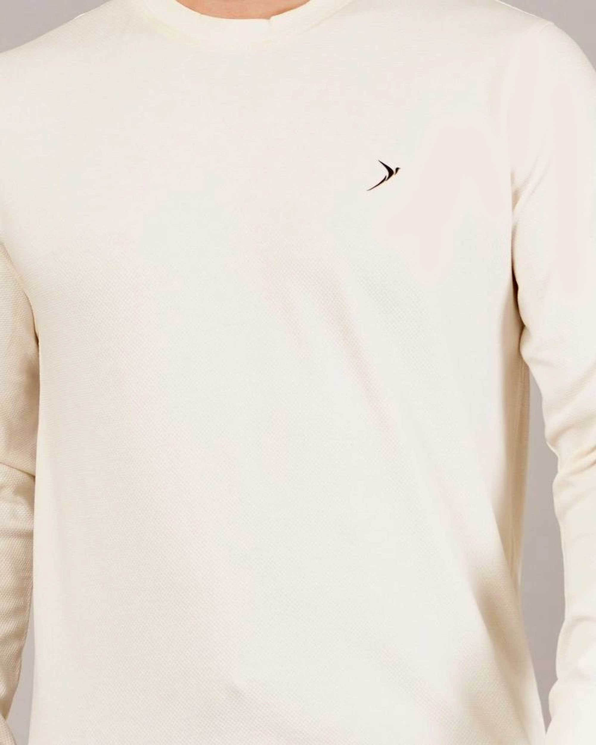 Stay cozy and stylish with this off-white solid sweatshirt. Made from a soft cotton-blend fabric, it features a round neck, full sleeves, and ribbed hems for a snug fit. The minimal chest logo design adds a touch of sophistication, making it ideal for casual outings or relaxed weekends.