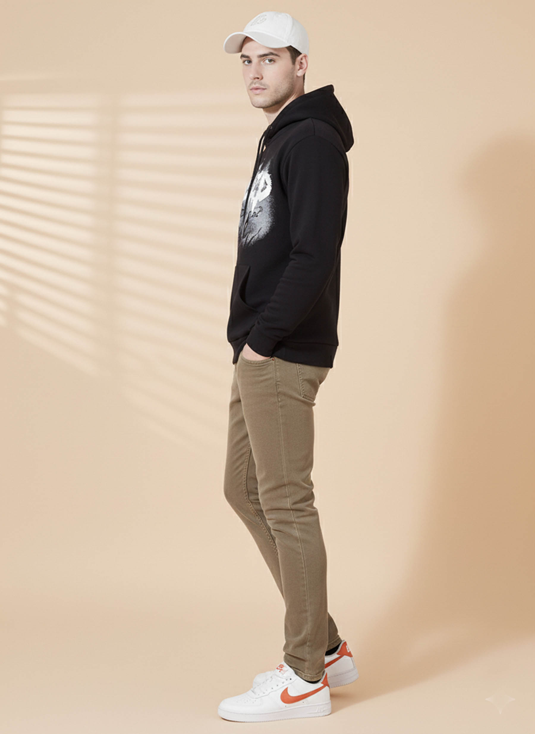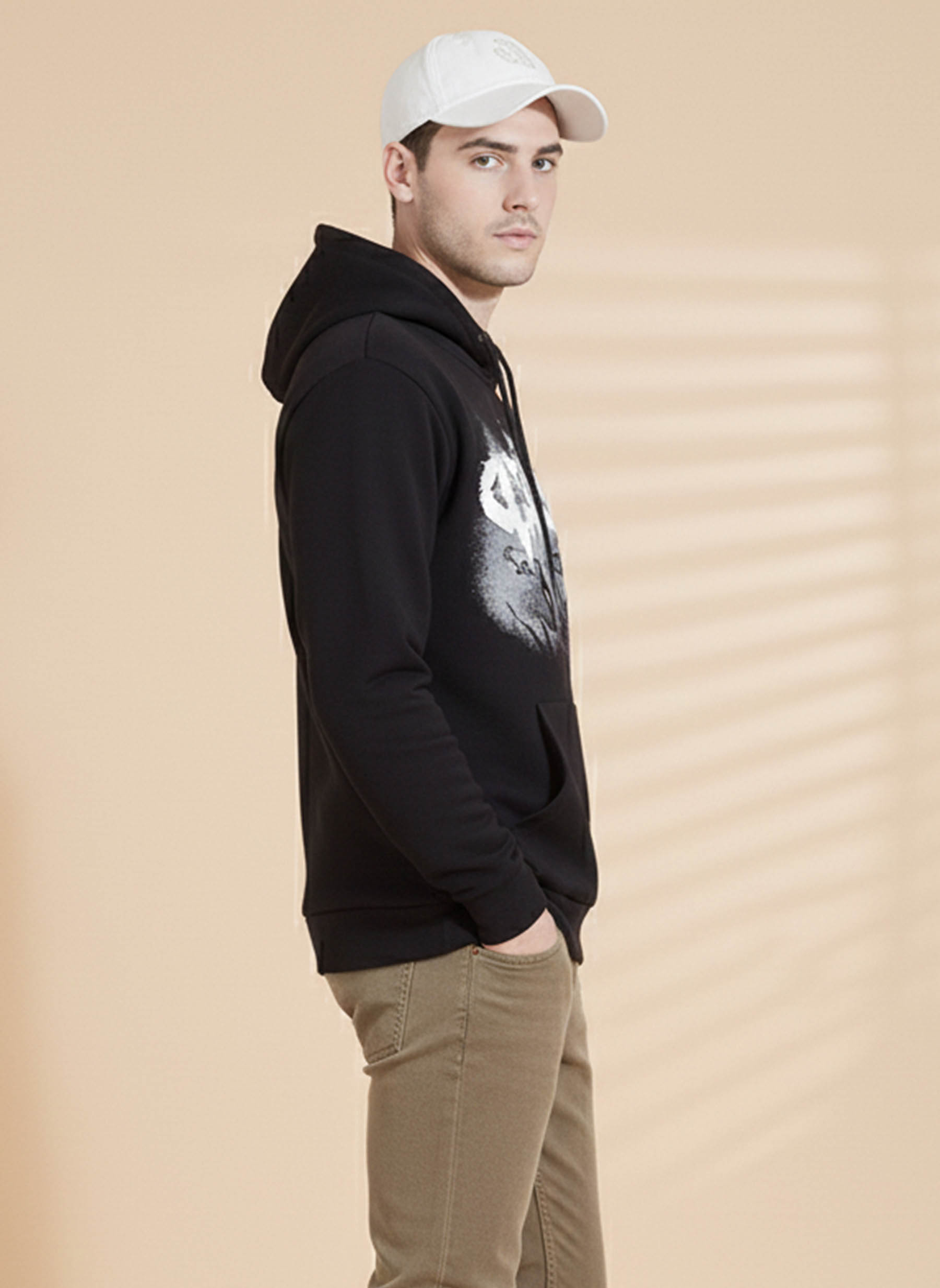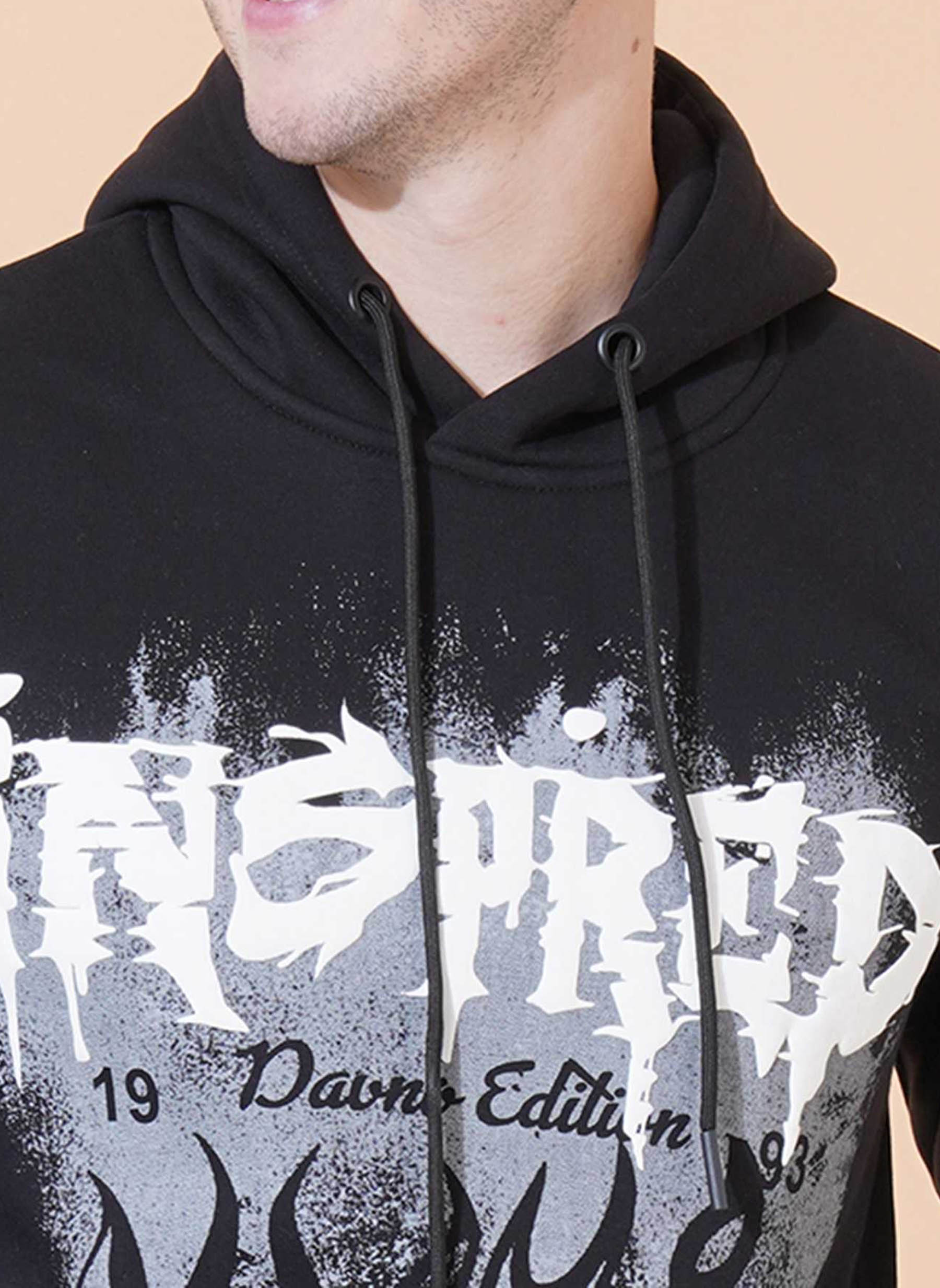 Command attention with this bold black hoodie featuring a graffiti-style “INSPIRED” front print and flame graphics. Crafted from a soft fleece blend, this pullover hoodie offers both comfort and street-style impact. With a drawstring hood and kangaroo pocket, it's the perfect addition to your winter casualwear collection.