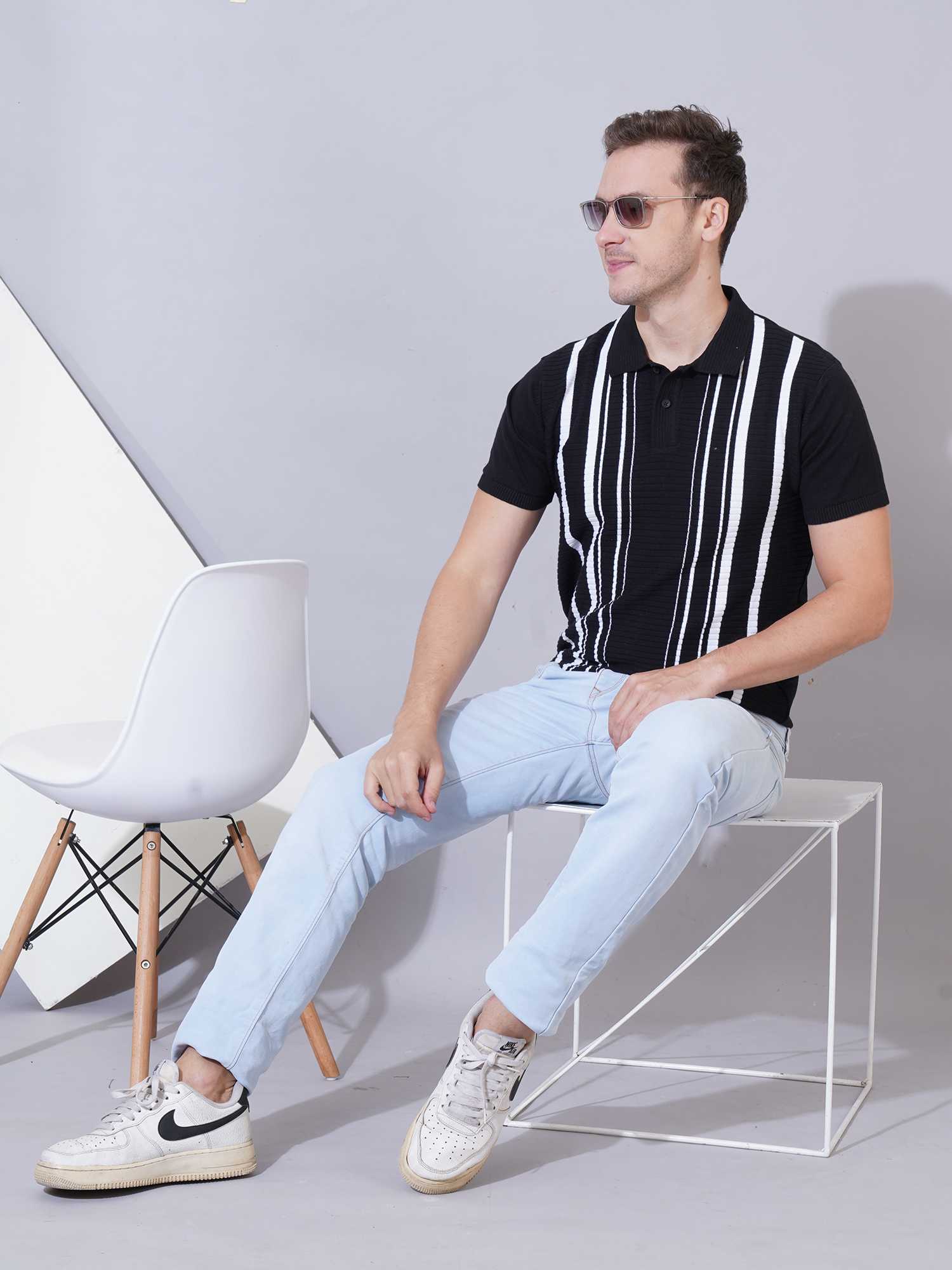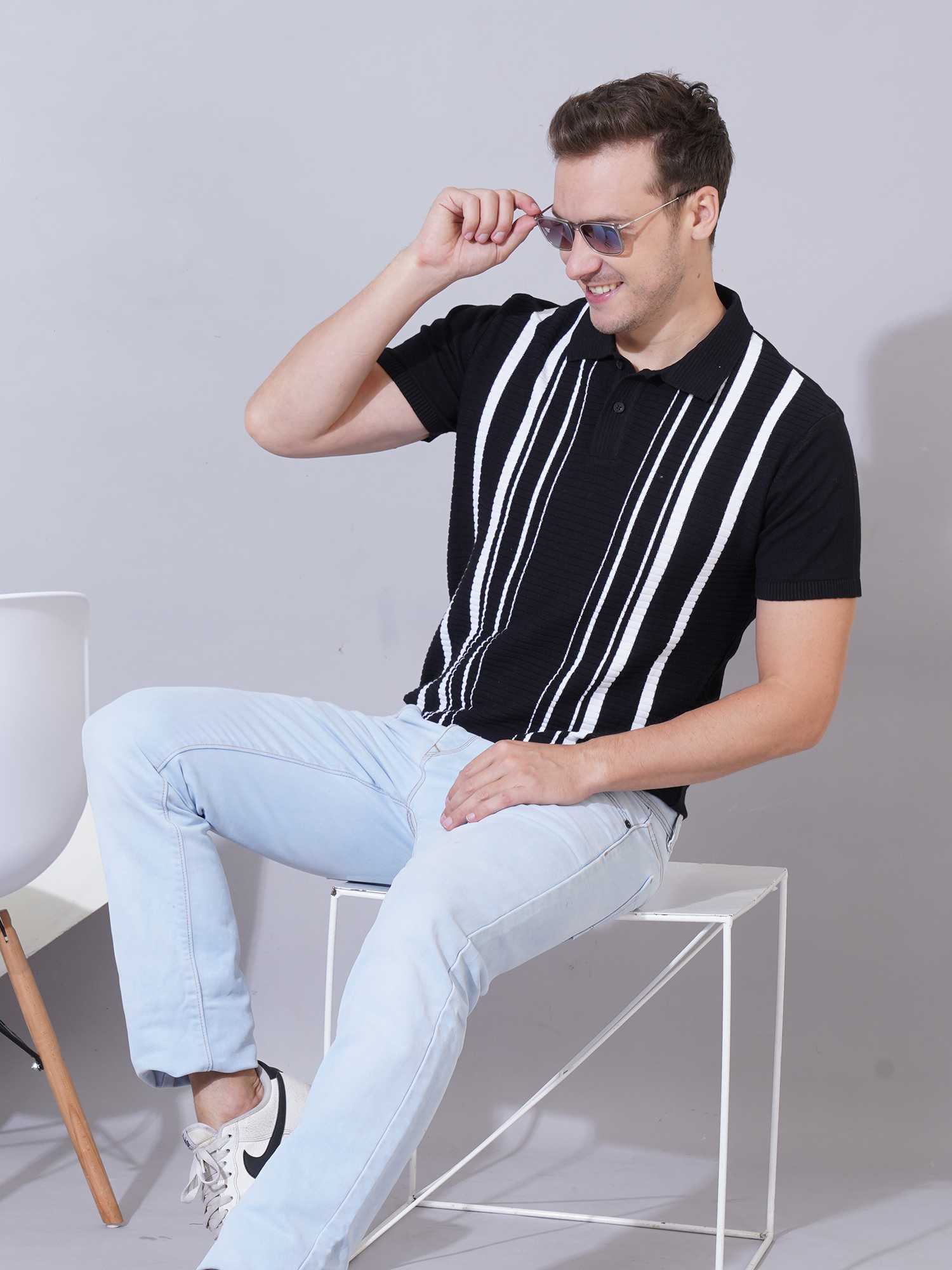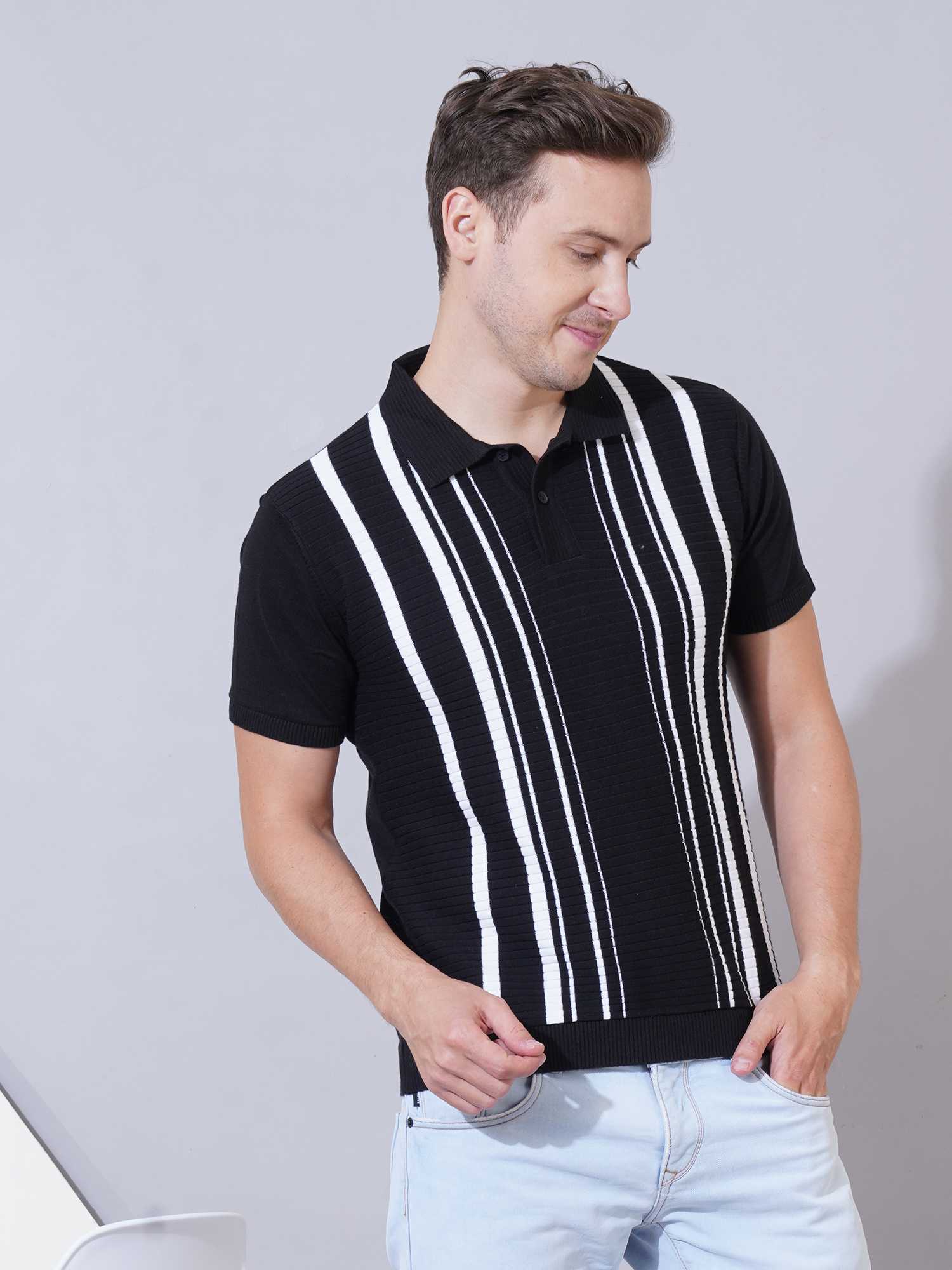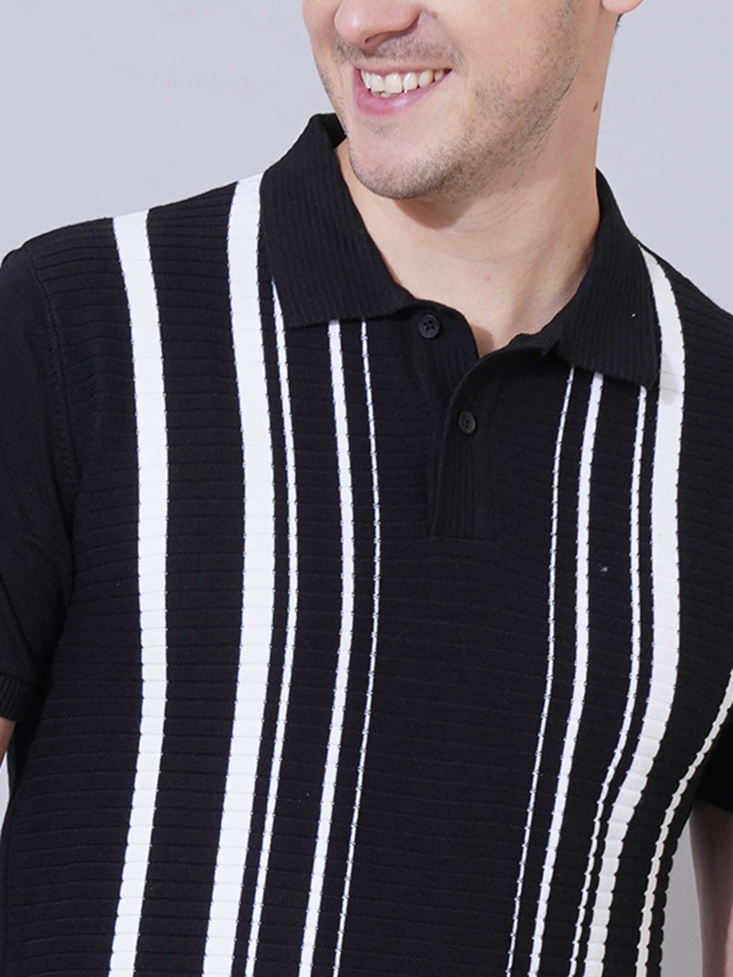 Color: Black base with white vertical textured stripes