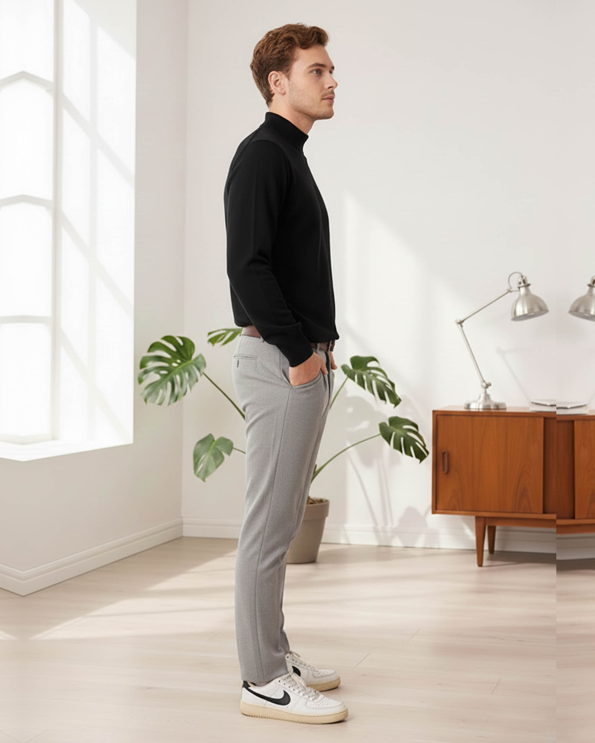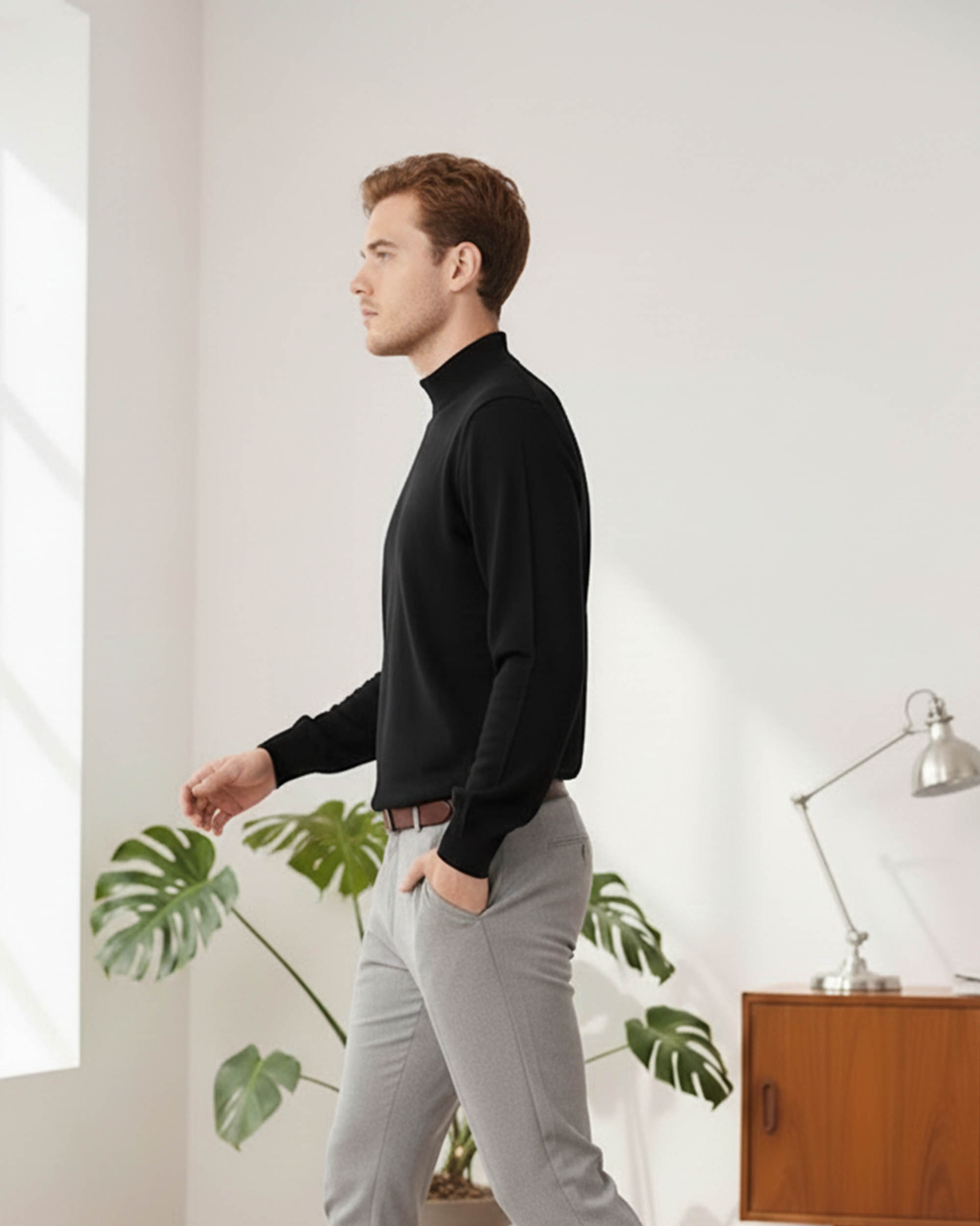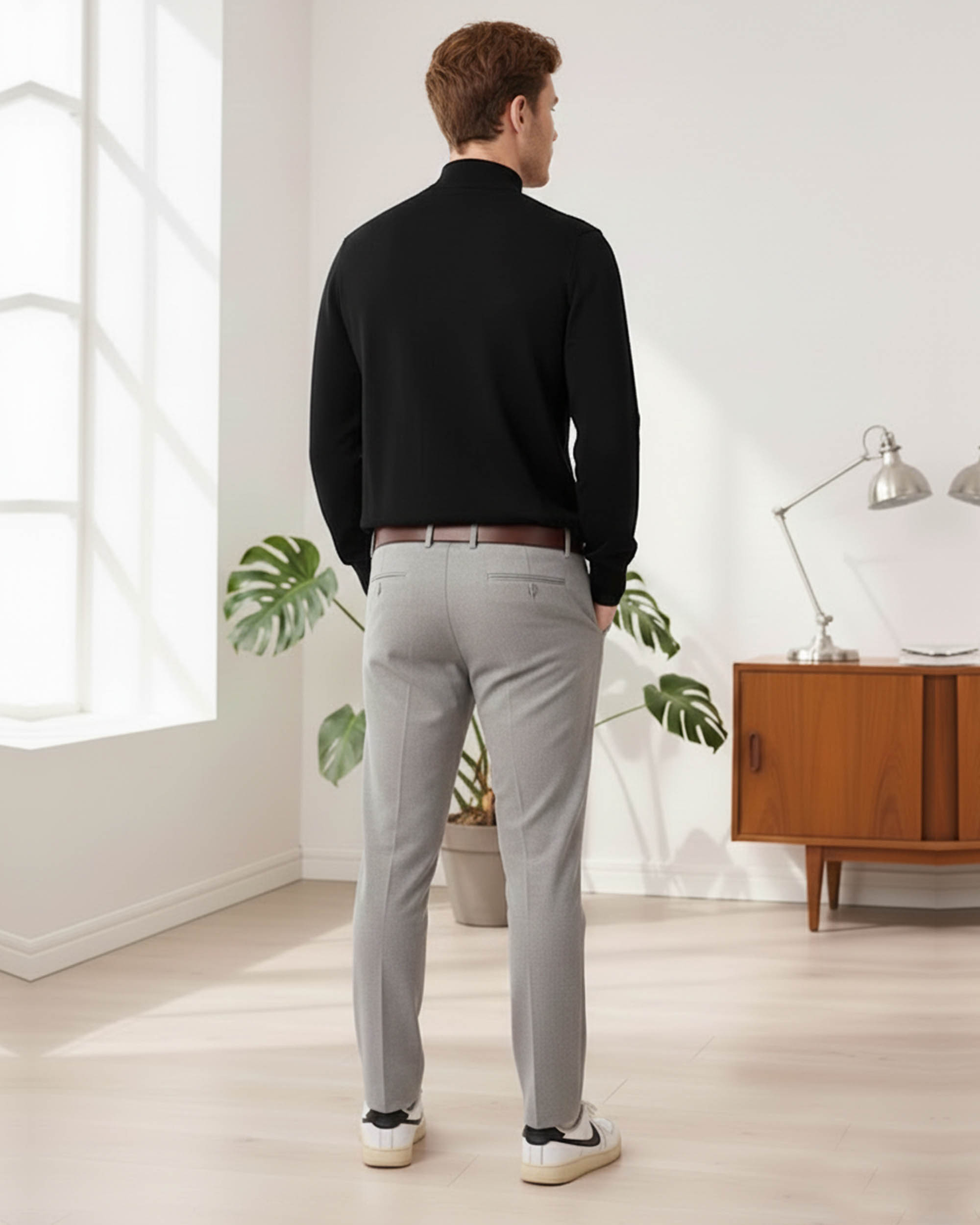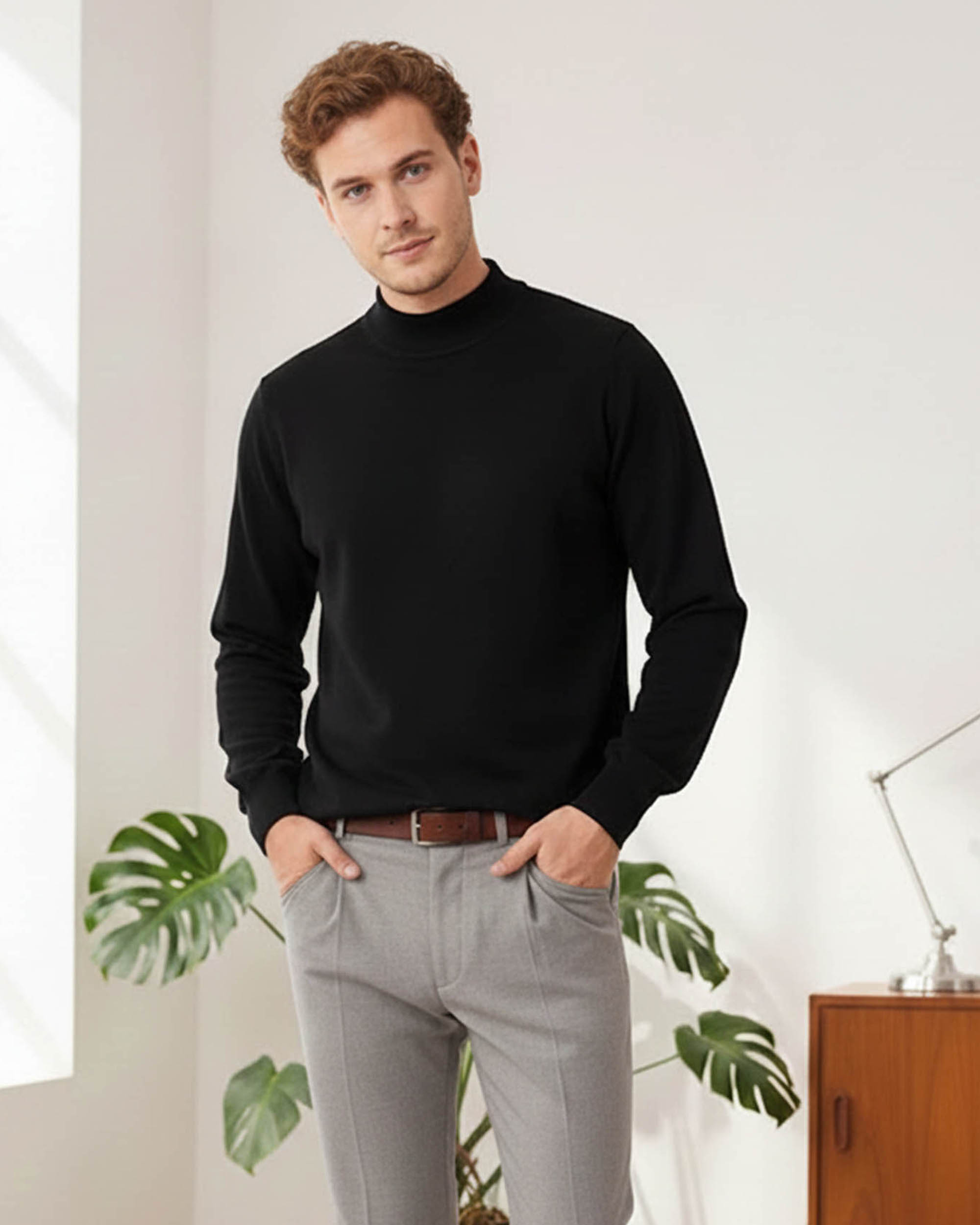 Effortless style meets comfort with this timeless black-and-white pairing. The solid black sweater features a clean crew neckline and ribbed cuffs, offering a polished yet casual look. Paired with crisp white slim-fit jeans, this outfit is perfect for a smart-casual day out, date night, or weekend gatherings.
