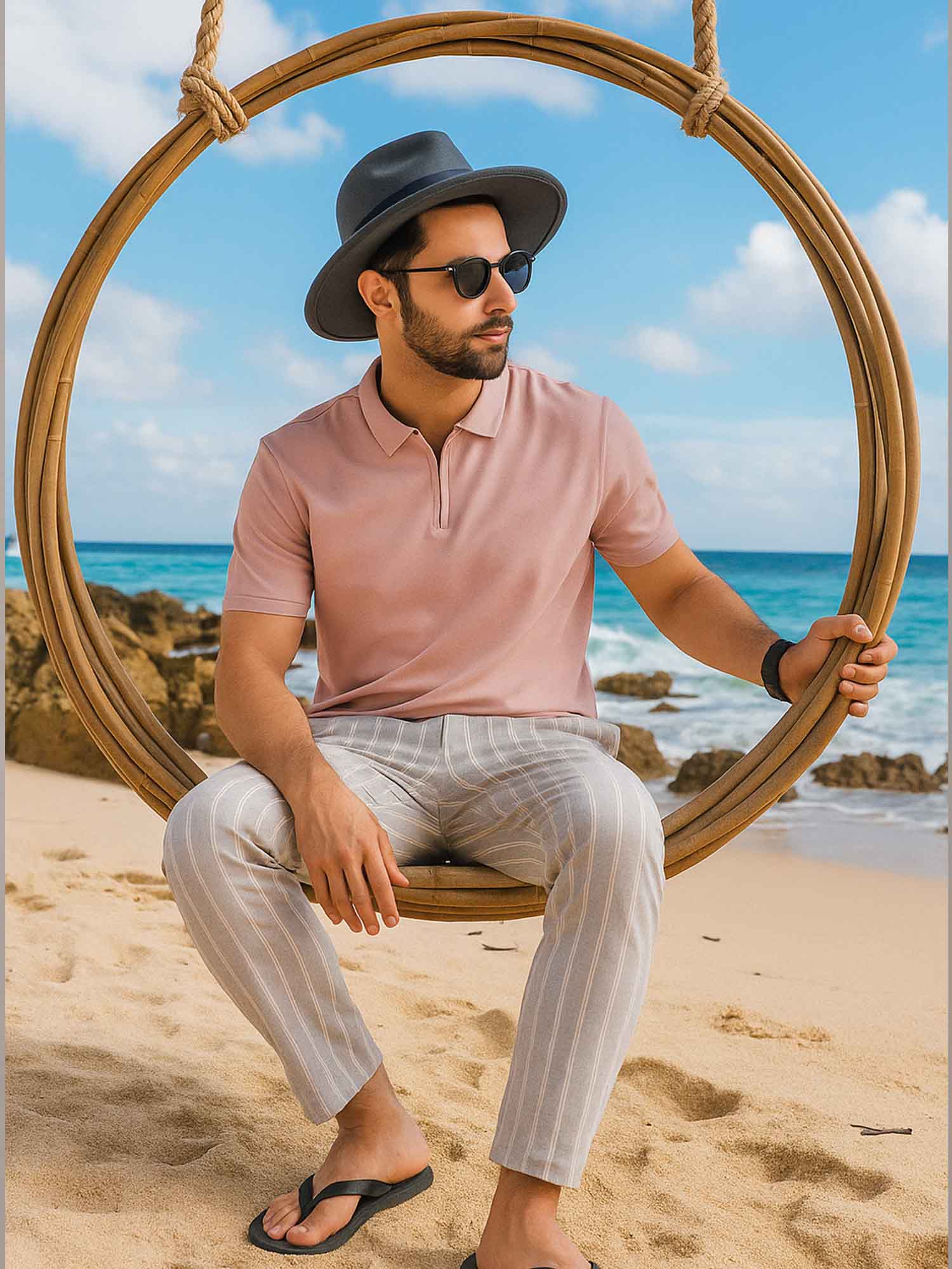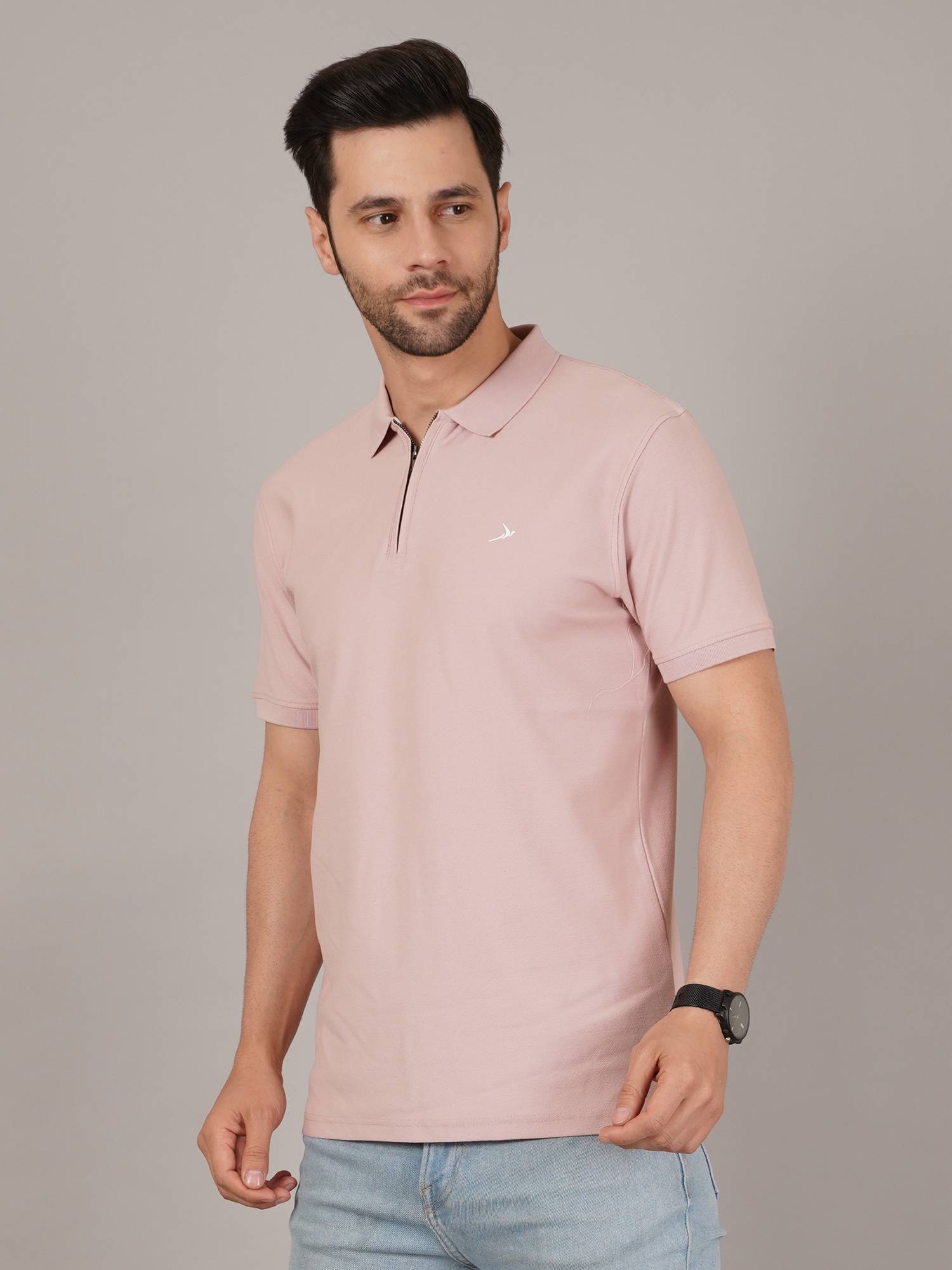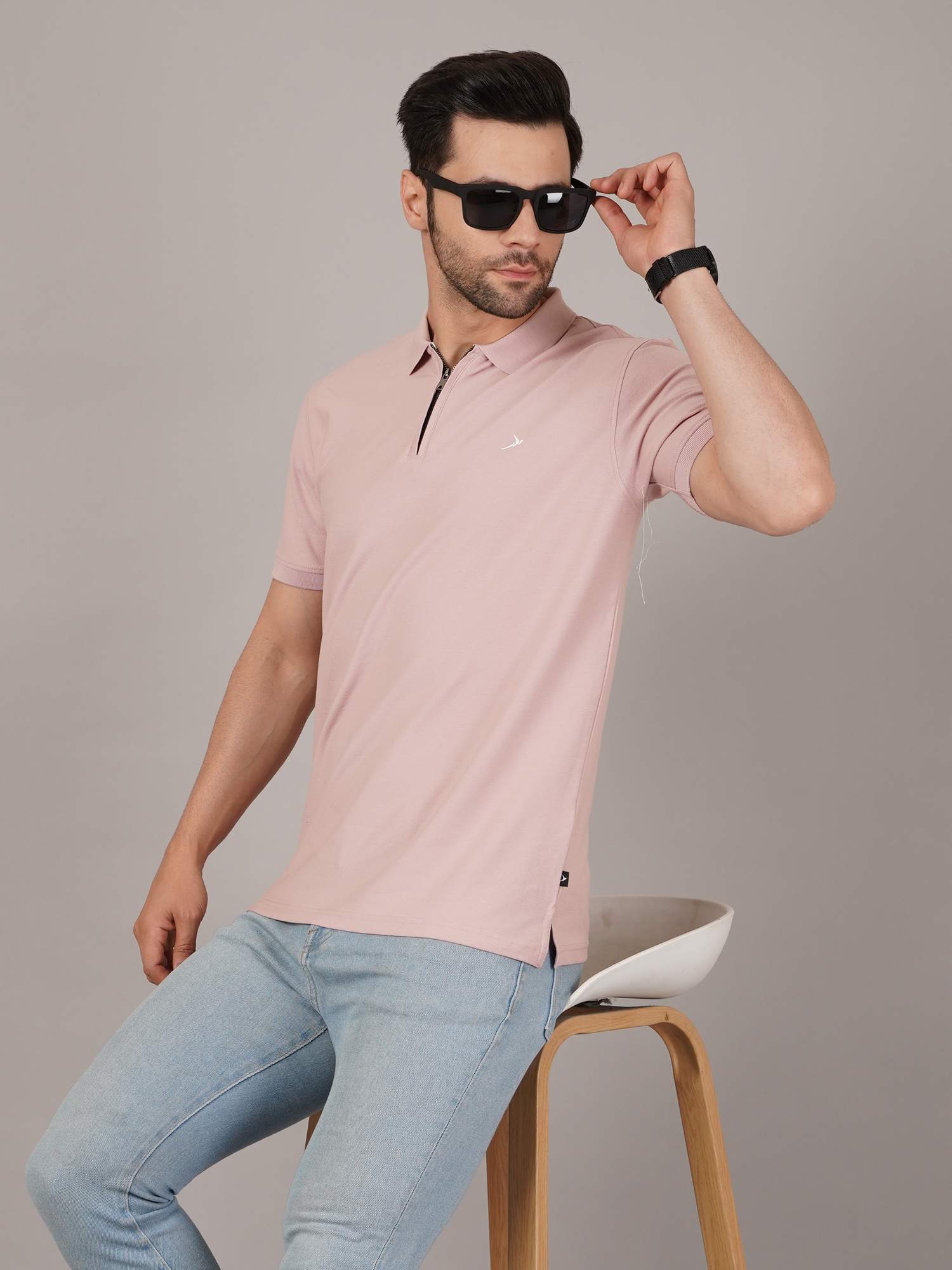 Elevate your casual wardrobe with this stylish dusty pink slim-fit polo t-shirt. Designed with a modern half-zip placket and subtle embroidered chest logo, it offers a perfect balance of comfort and sophistication. The soft, breathable cotton blend ensures all-day ease, making it a versatile choice for work, weekends, or evening outings.