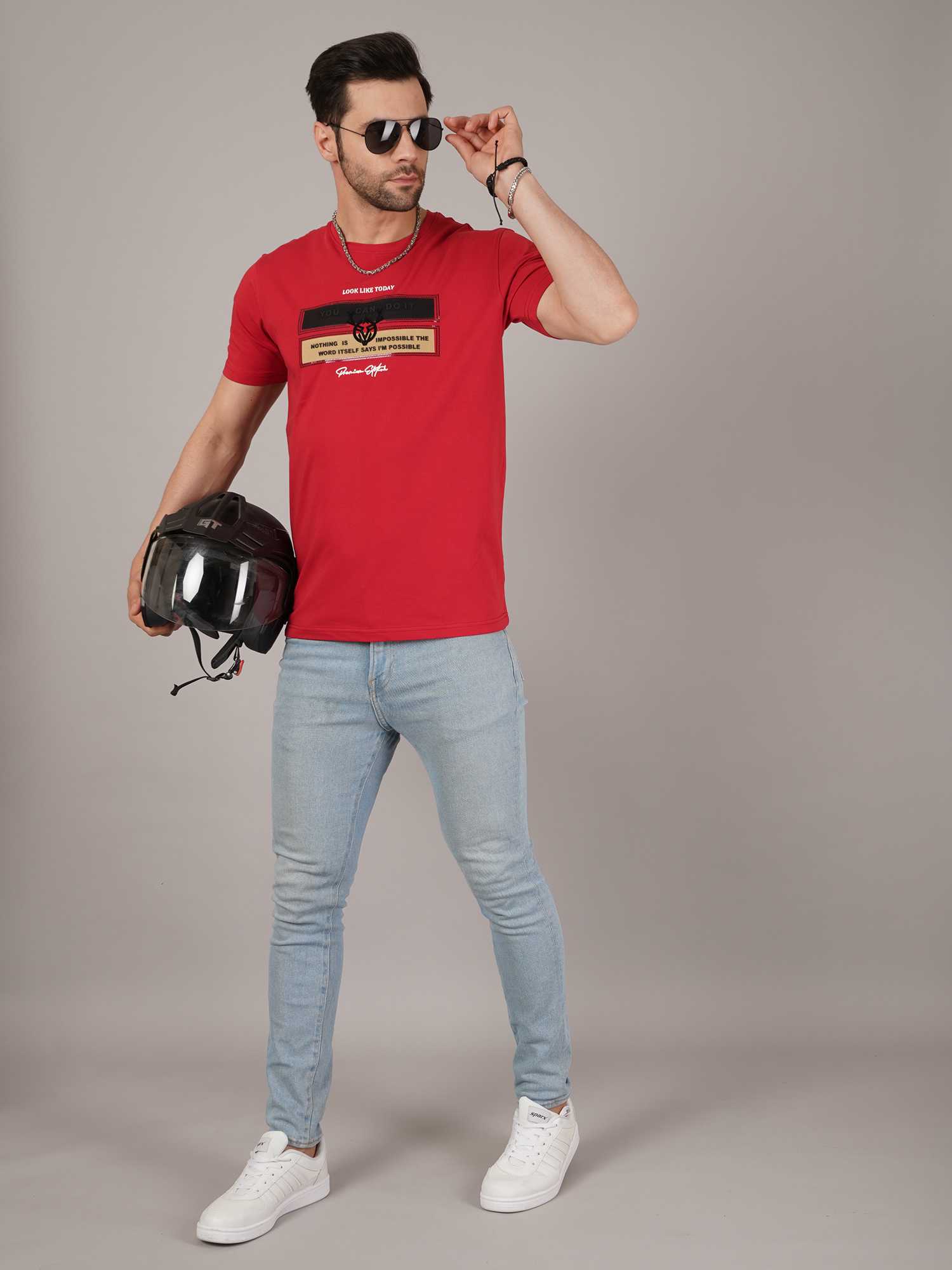 Stay inspired and stylish with this RED graphic t-shirt featuring bold motivational quotes. Crafted from