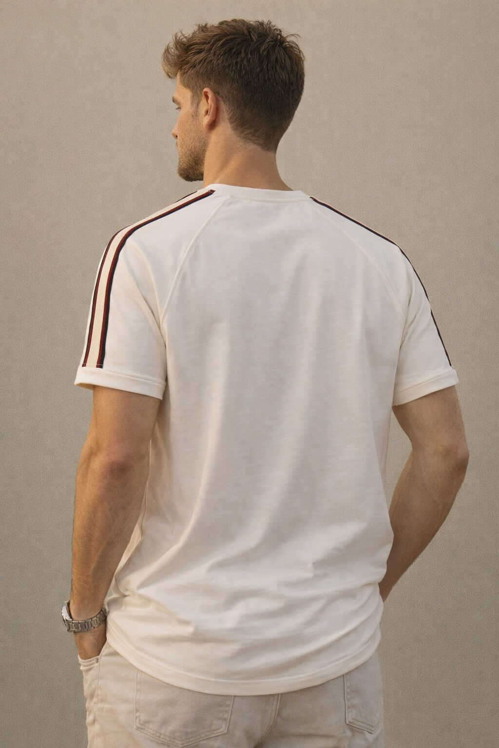 Crafted from high-quality breathable fabric, the T-shirt offers a soft-touch feel and all-day ease. The off-white base adds a fresh, versatile tone that pairs effortlessly with denim, chinos, or joggers for a smart casual appearance.