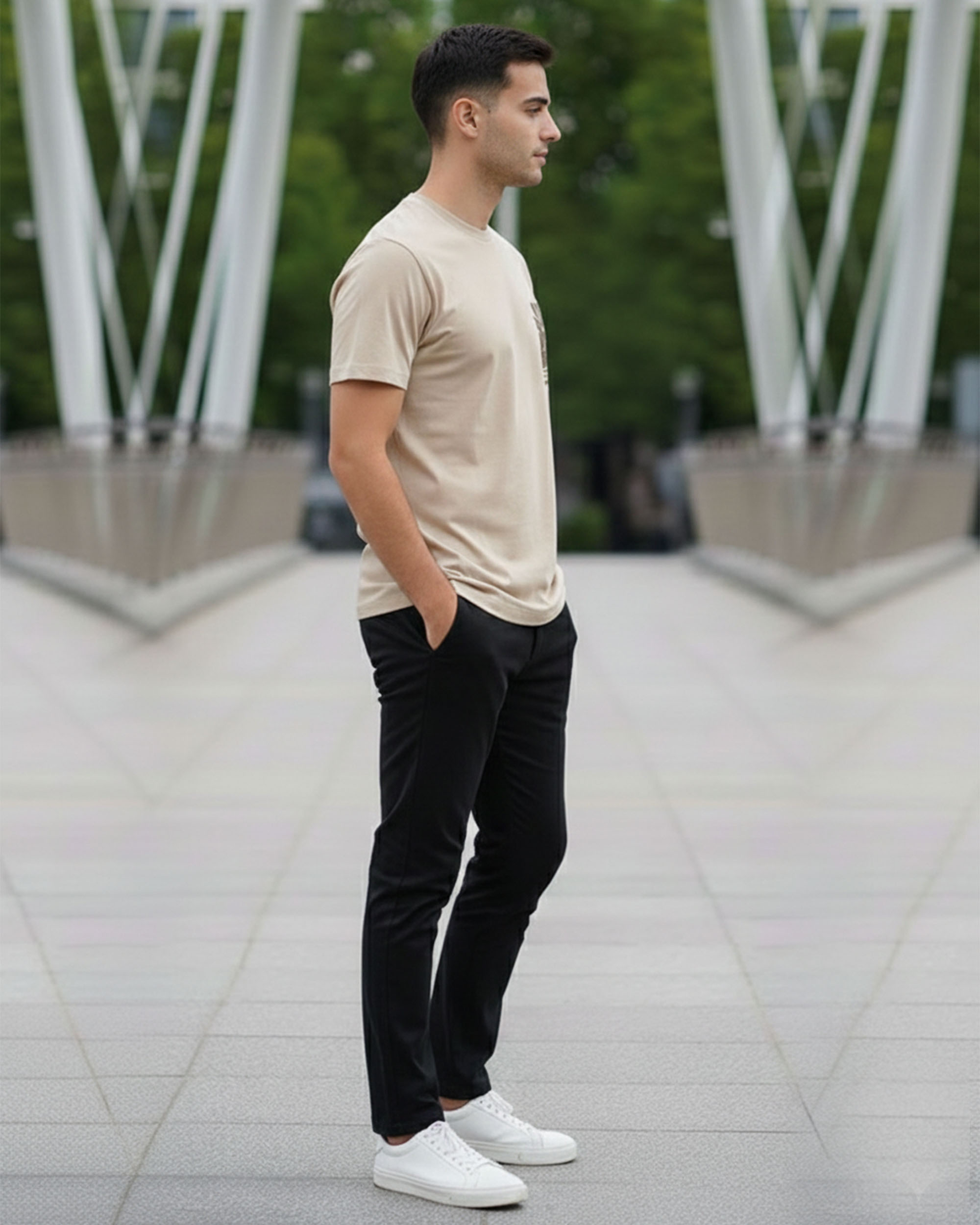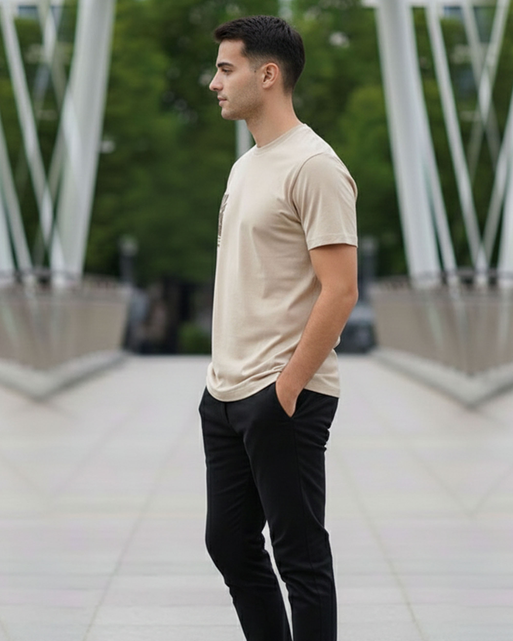 Upgrade your casual wardrobe with this stylish Beige Printed Round Neck T-Shirt for Men. Designed with premium pure cotton, it offers all-day comfort and a soft feel on the skin. The T-shirt features a minimal botanical graphic print on the front, giving it a trendy yet classy look.