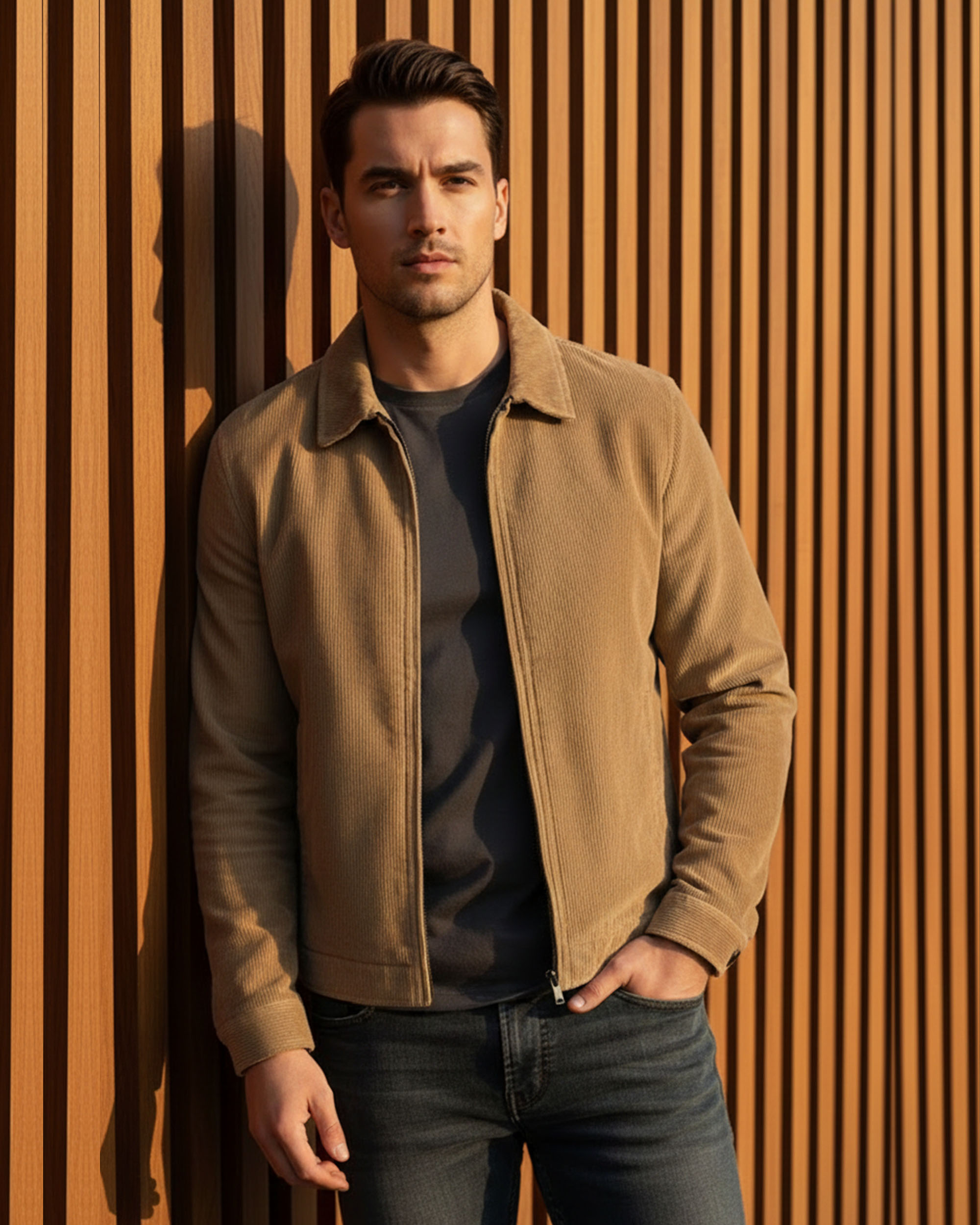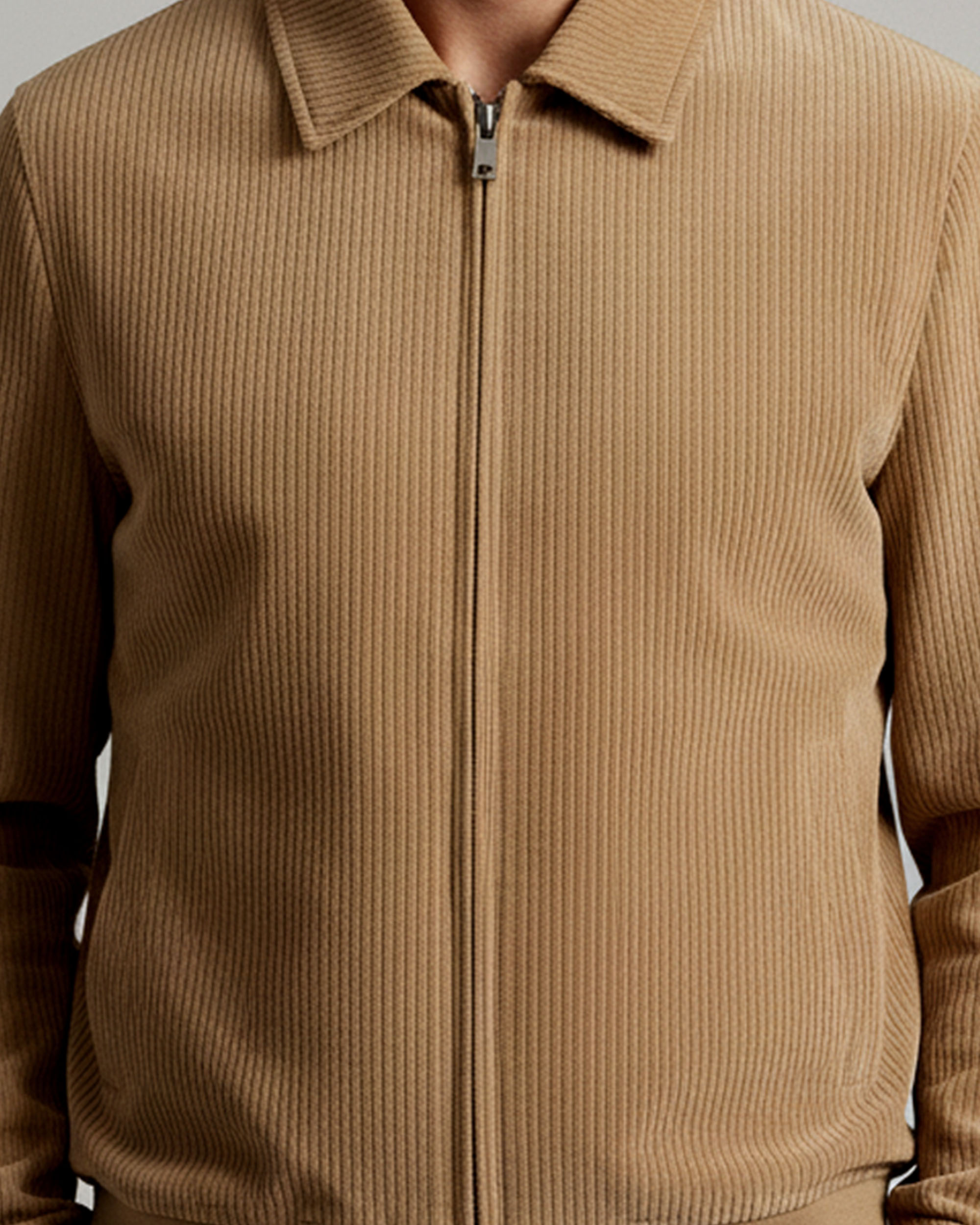 Upgrade your everyday style with this Men’s Solid Ribbed Zip-Up Jacket, crafted for a clean and modern look. Made from a soft cotton blend fabric, this jacket offers excellent comfort, warmth, and breathability, making it ideal for mild winters and transitional weather.The ribbed textured fabric adds a premium touch, while the full front zipper and structured collar enhance its smart casual appeal. Designed in a regular fit, it provides ease of movement and a flattering silhouette. Perfect for office casual wear, travel, evening outings, or daily use.