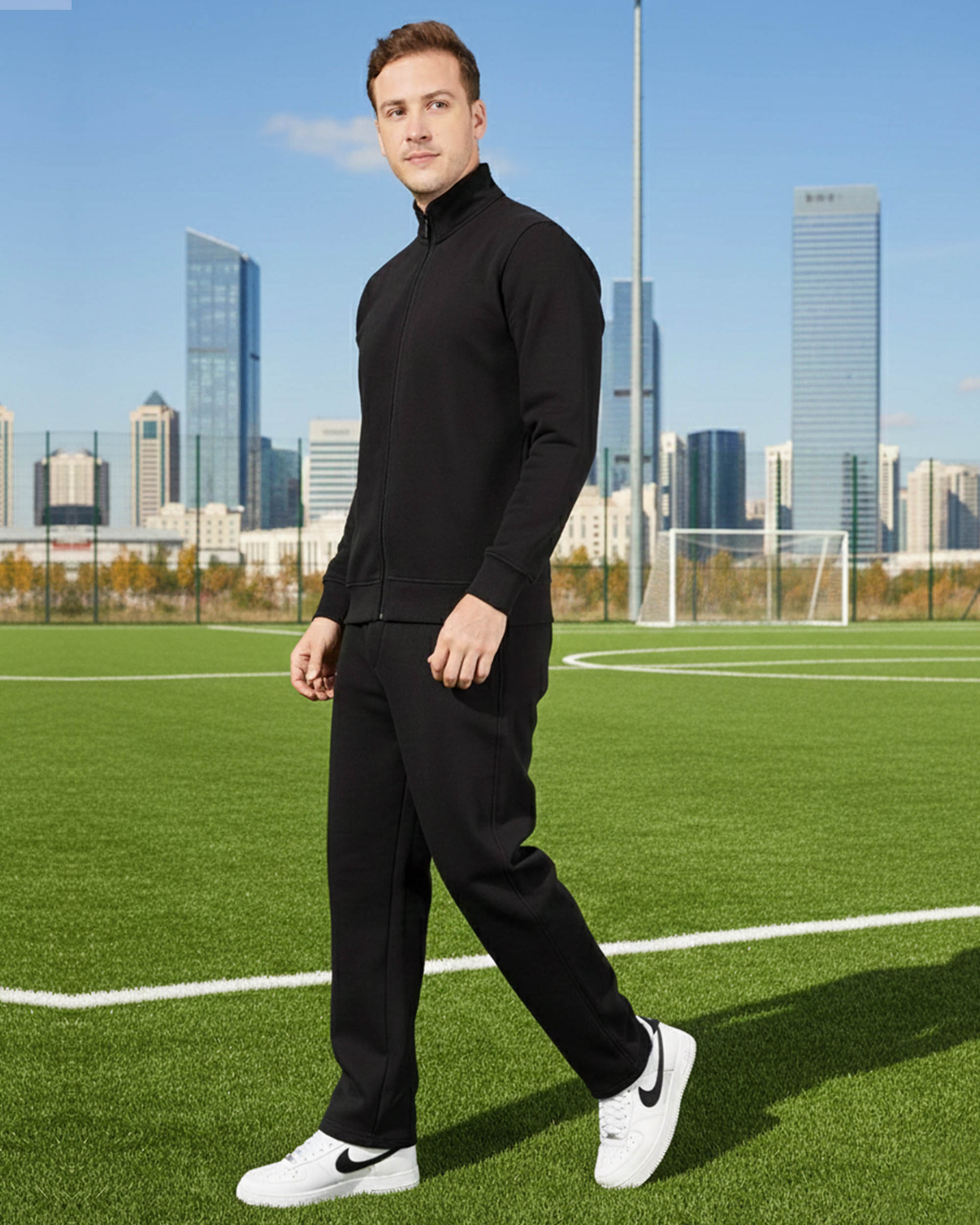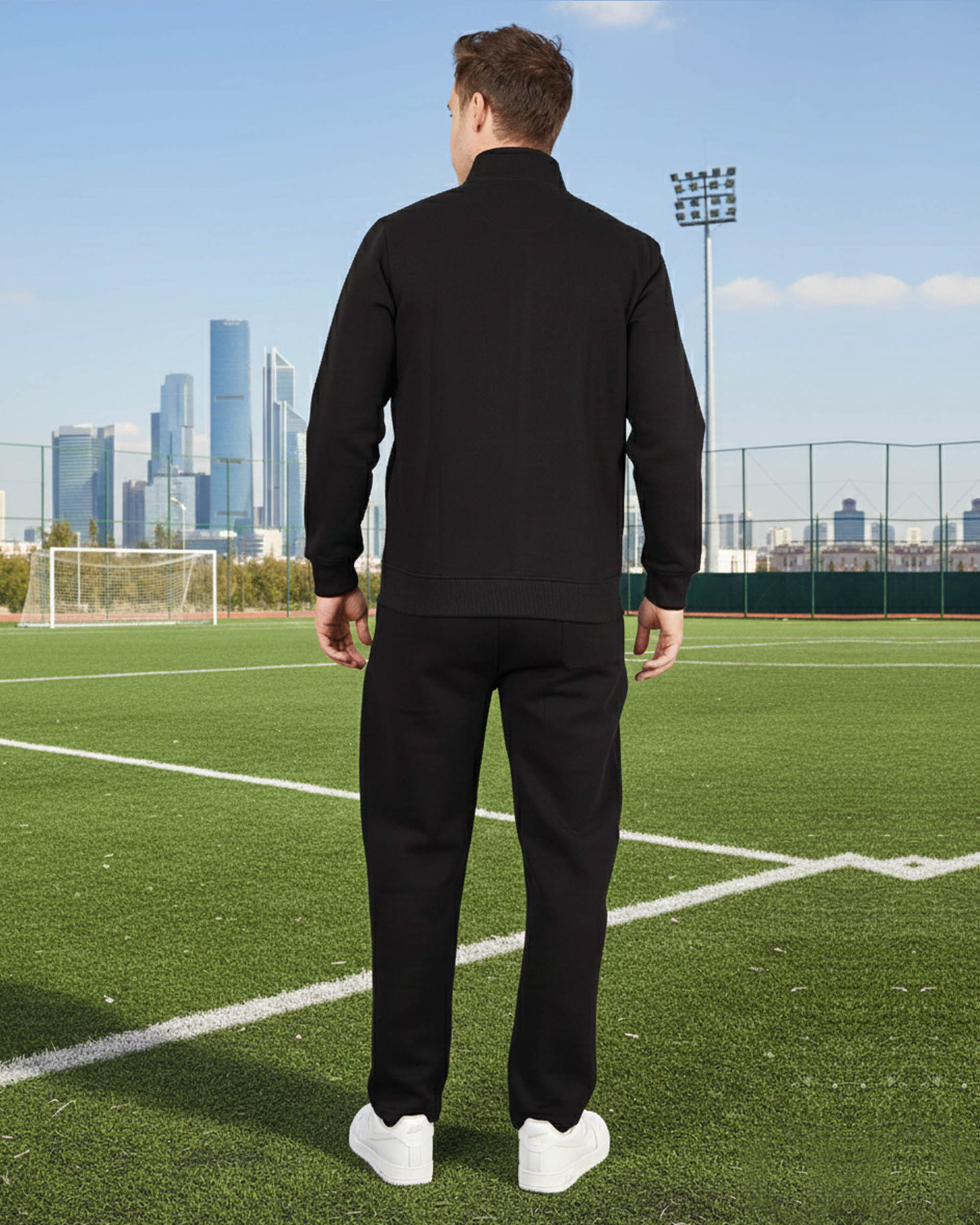 Stay comfortable and stylish with this classic black full-zip tracksuit. Made from soft, breathable fabric, the set includes a high-neck zip-up jacket and matching jogger-style pants—perfect for workouts, travel, or casual wear.