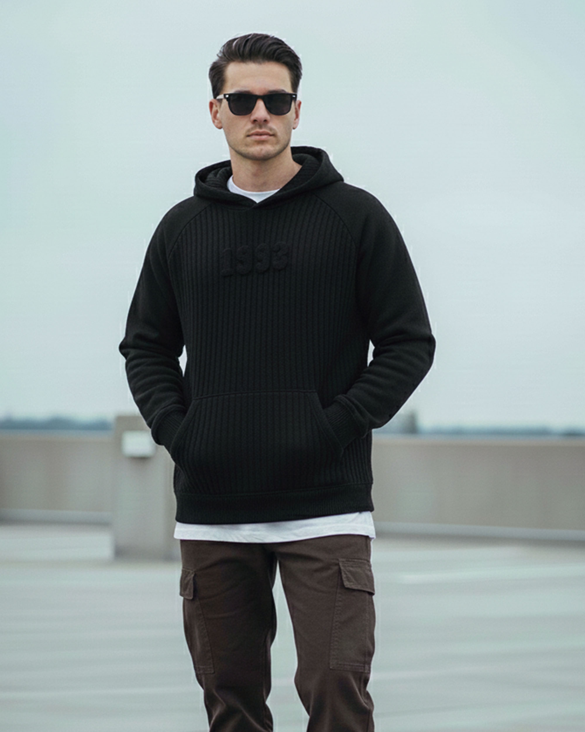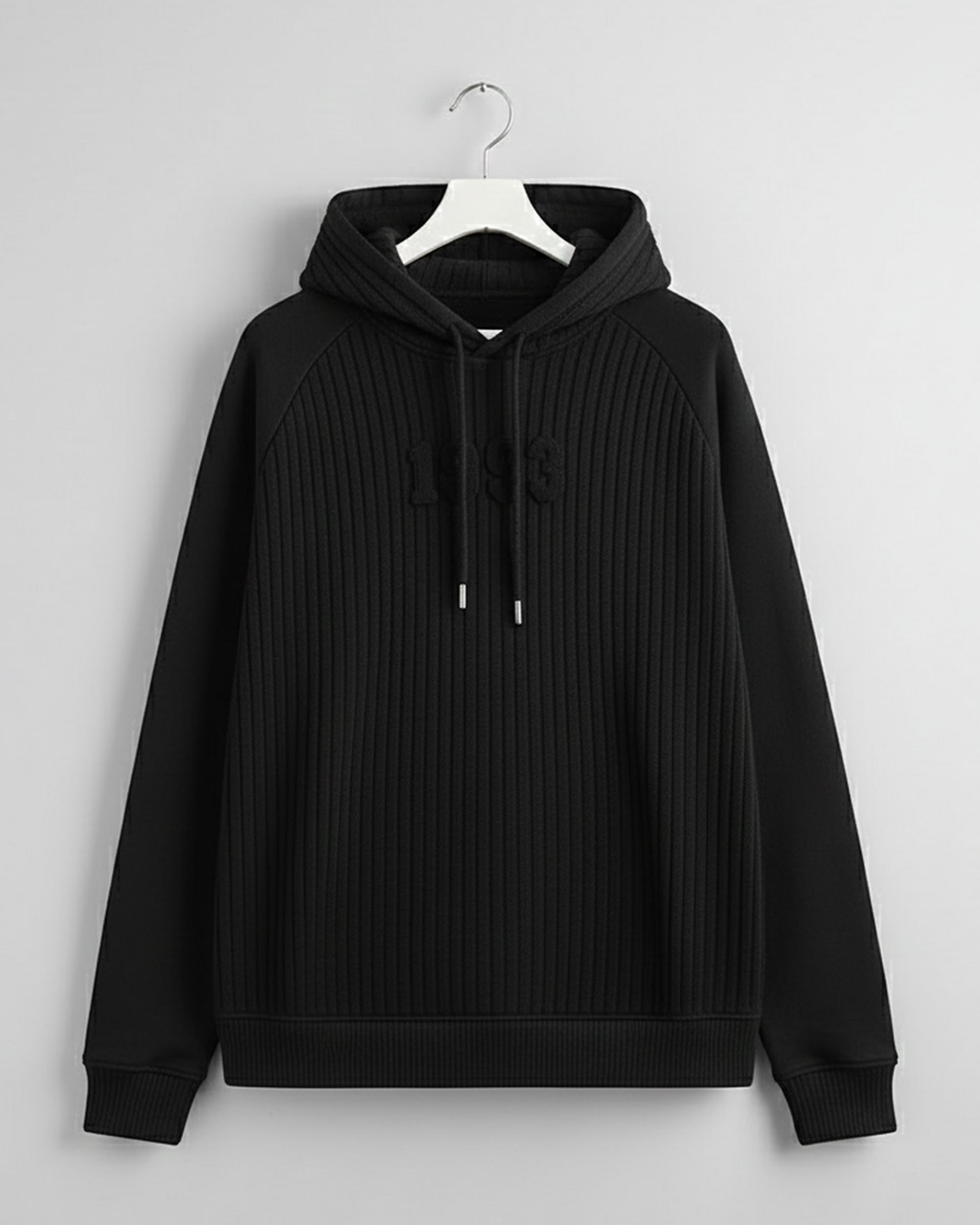 Upgrade your winter look with this premium “1993” embossed black hoodie for men. Made from heavy fleece fabric, this hoodie provides superior warmth and comfort without compromising on style. The embossed chest detailing gives it a classy streetwear vibe, making it a perfect choice for college, travel, daily wear, and winter outings. Featuring a soft inner lining, kangaroo pocket, adjustable drawstring hood,