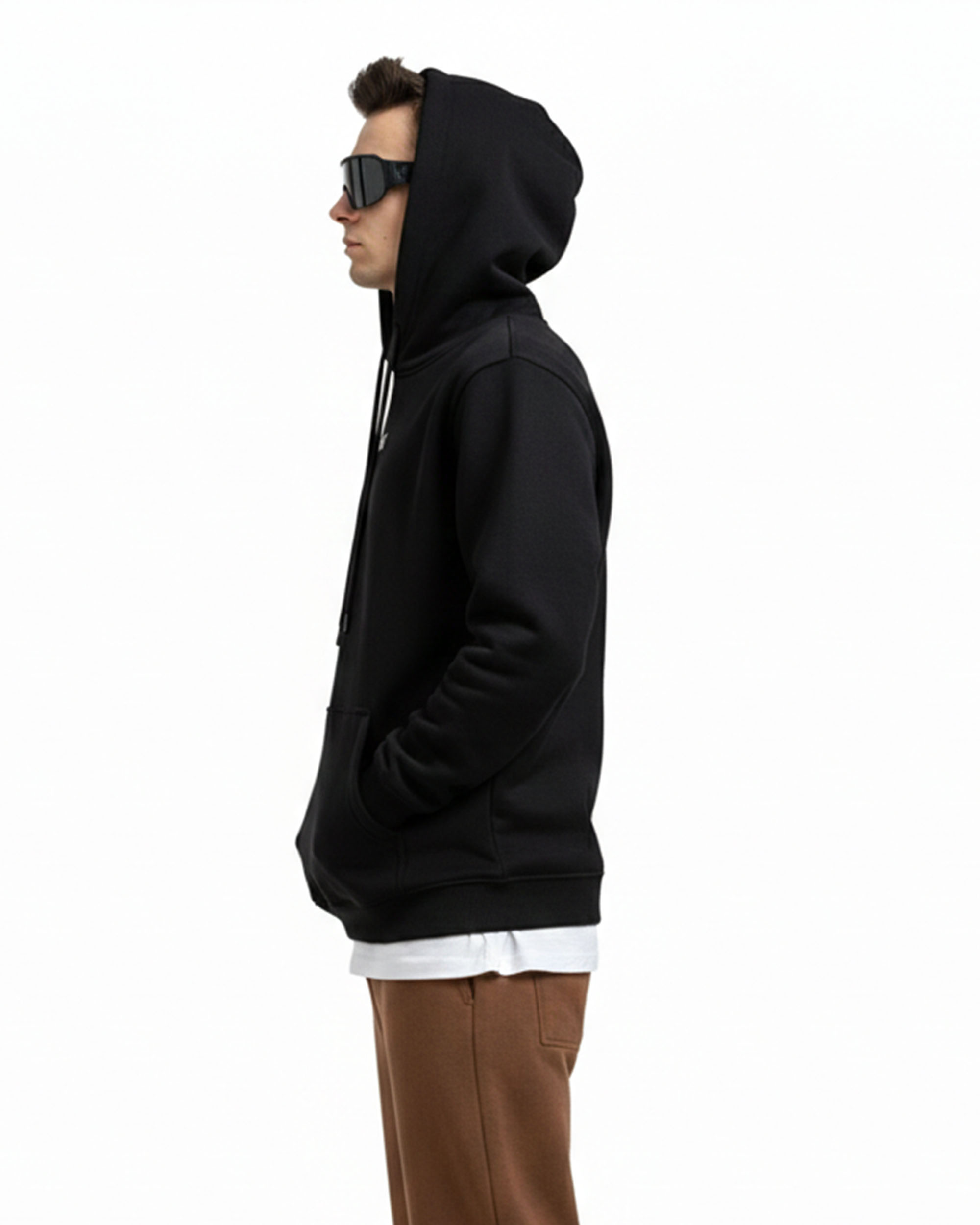 Upgrade your winter wardrobe with this premium solid black hoodie designed for everyday comfort and style. Crafted with a soft fleece interior, it provides excellent warmth without compromising breathability. The front features a subtle, minimal print, giving it a clean and modern look. Equipped with a functional hood, front kangaroo pocket, and ribbed detailing, this hoodie pairs perfectly with joggers, denim, or athleisure wear. Ideal for winter outings, college, workouts, and travel.
