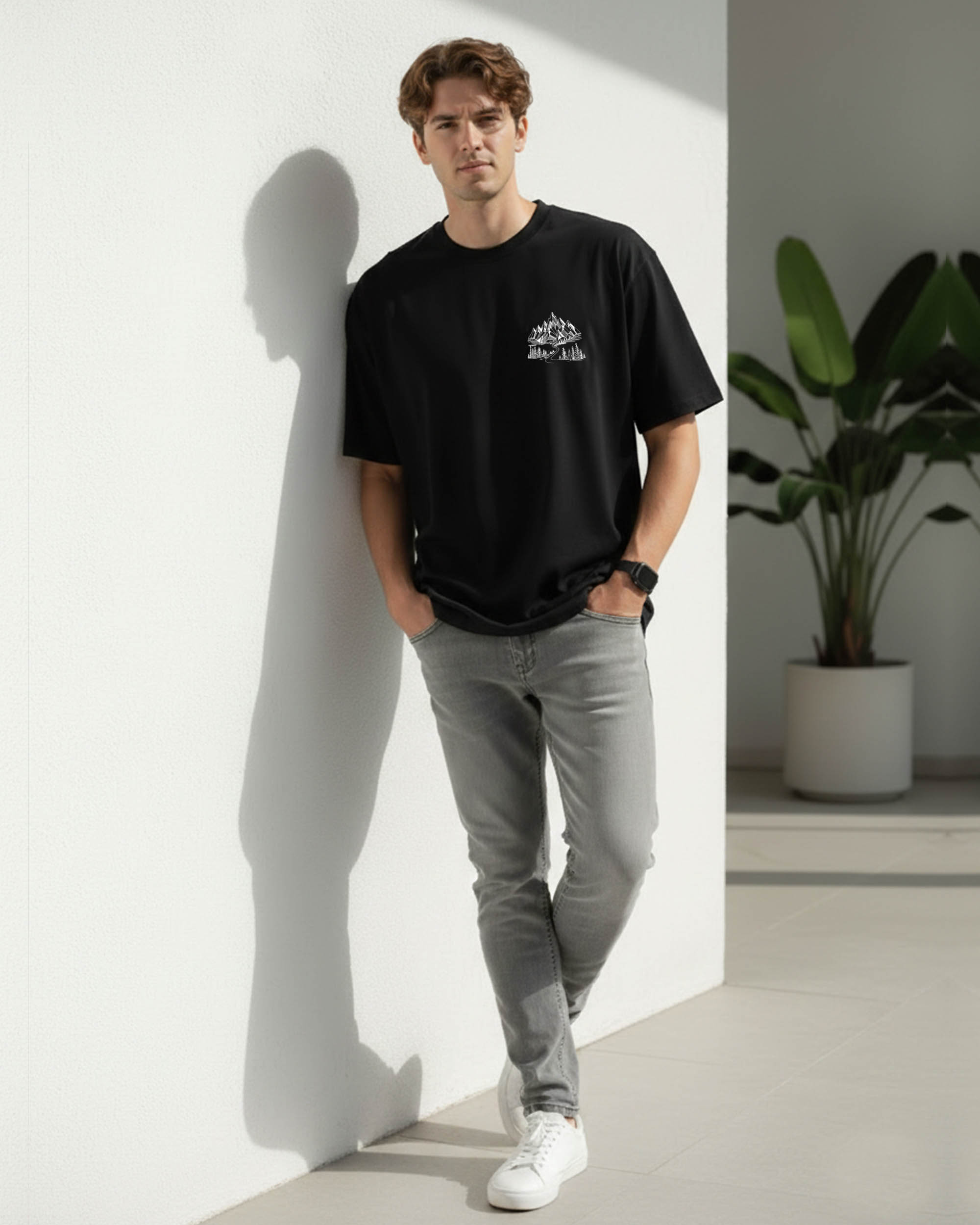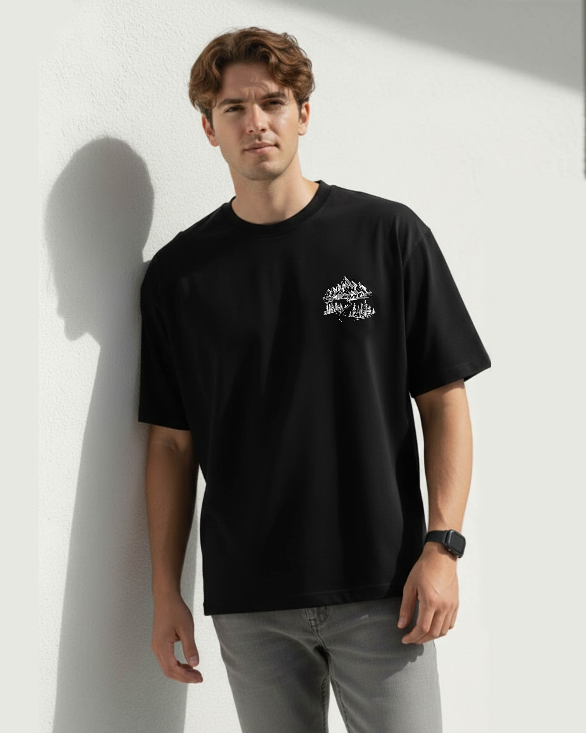 Elevate your everyday style with this black oversized T-shirt featuring a subtle mountain graphic that reflects adventure and minimal fashion. Crafted from a premium cotton blend, this tee provides superior comfort, breathability, and durability for daily wear.