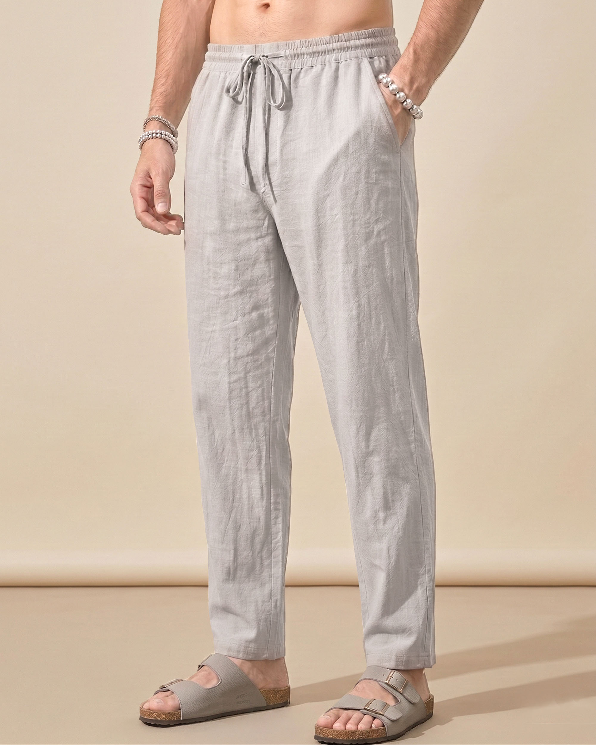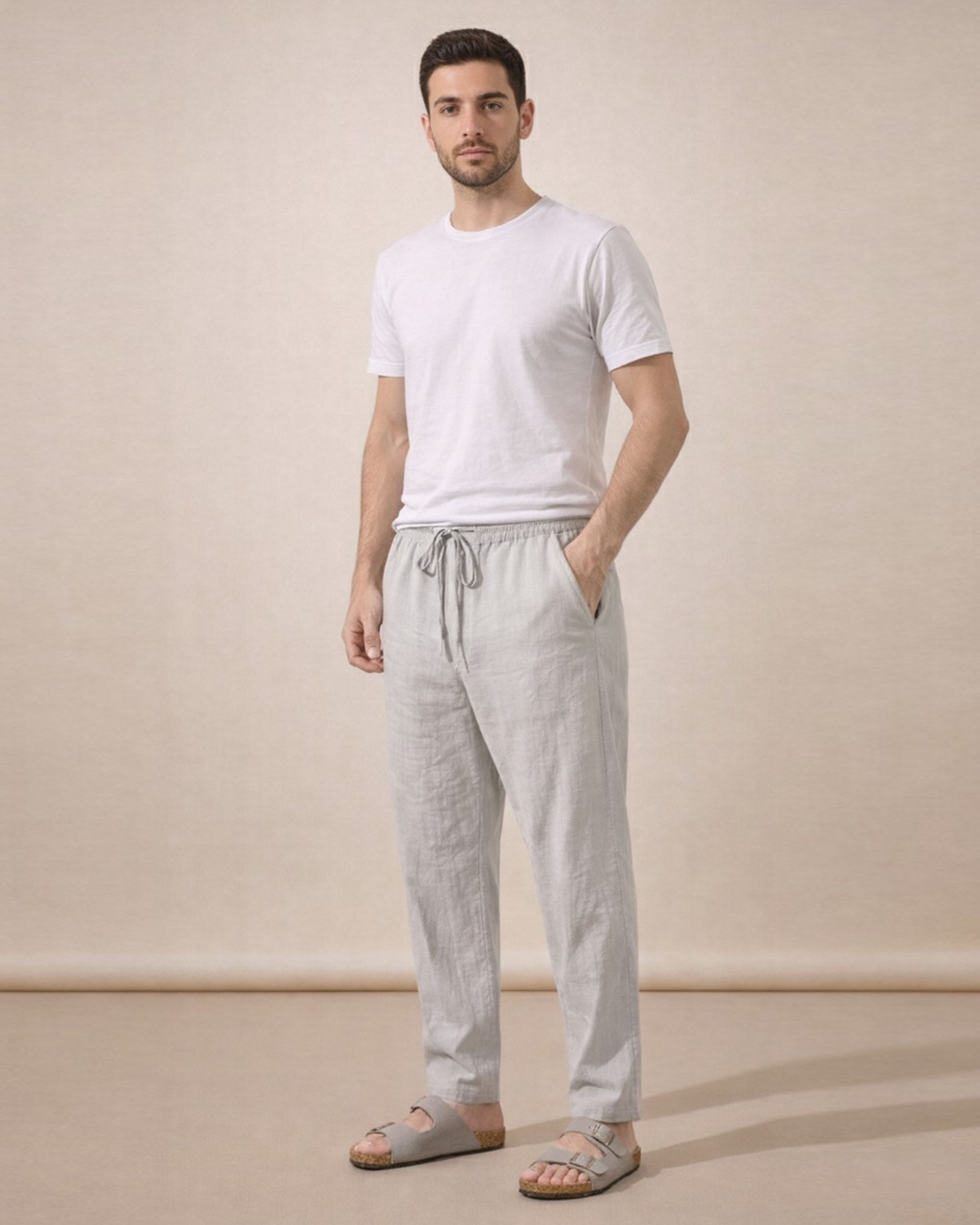 Upgrade your summer wardrobe with these stylish men’s linen blend casual trousers. Designed with breathable and lightweight fabric, these pants offer superior comfort and airflow, making them perfect for warm weather and everyday wear.