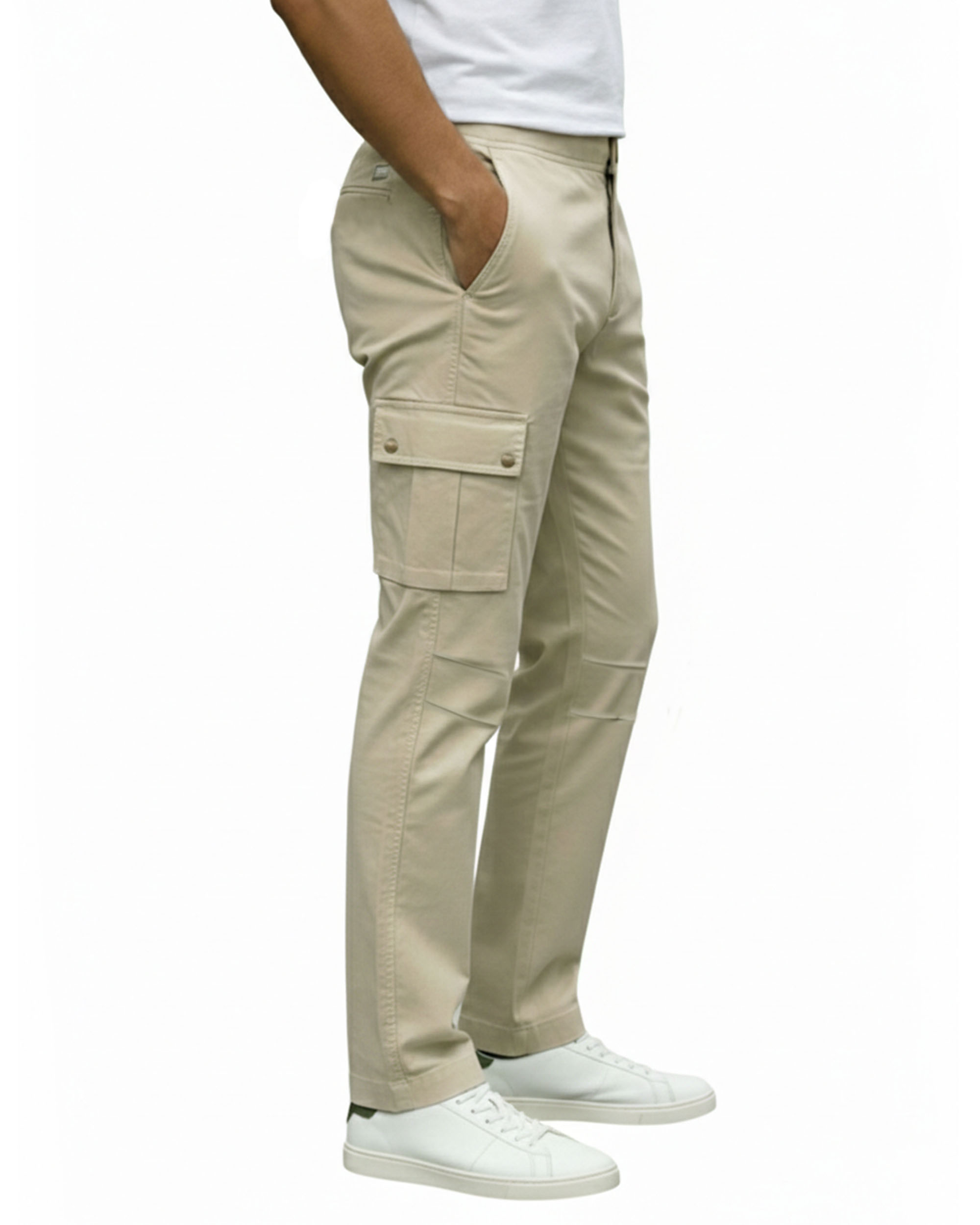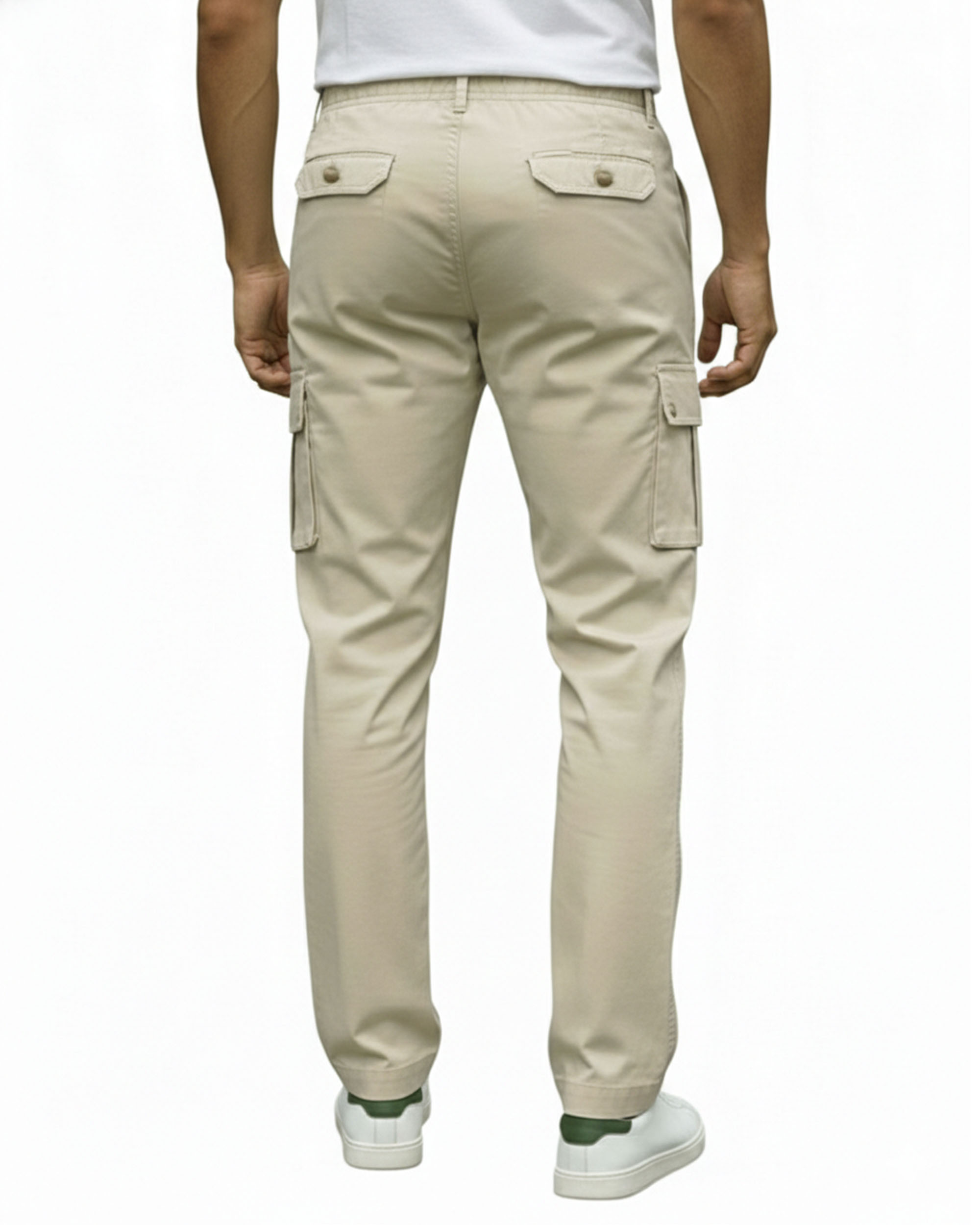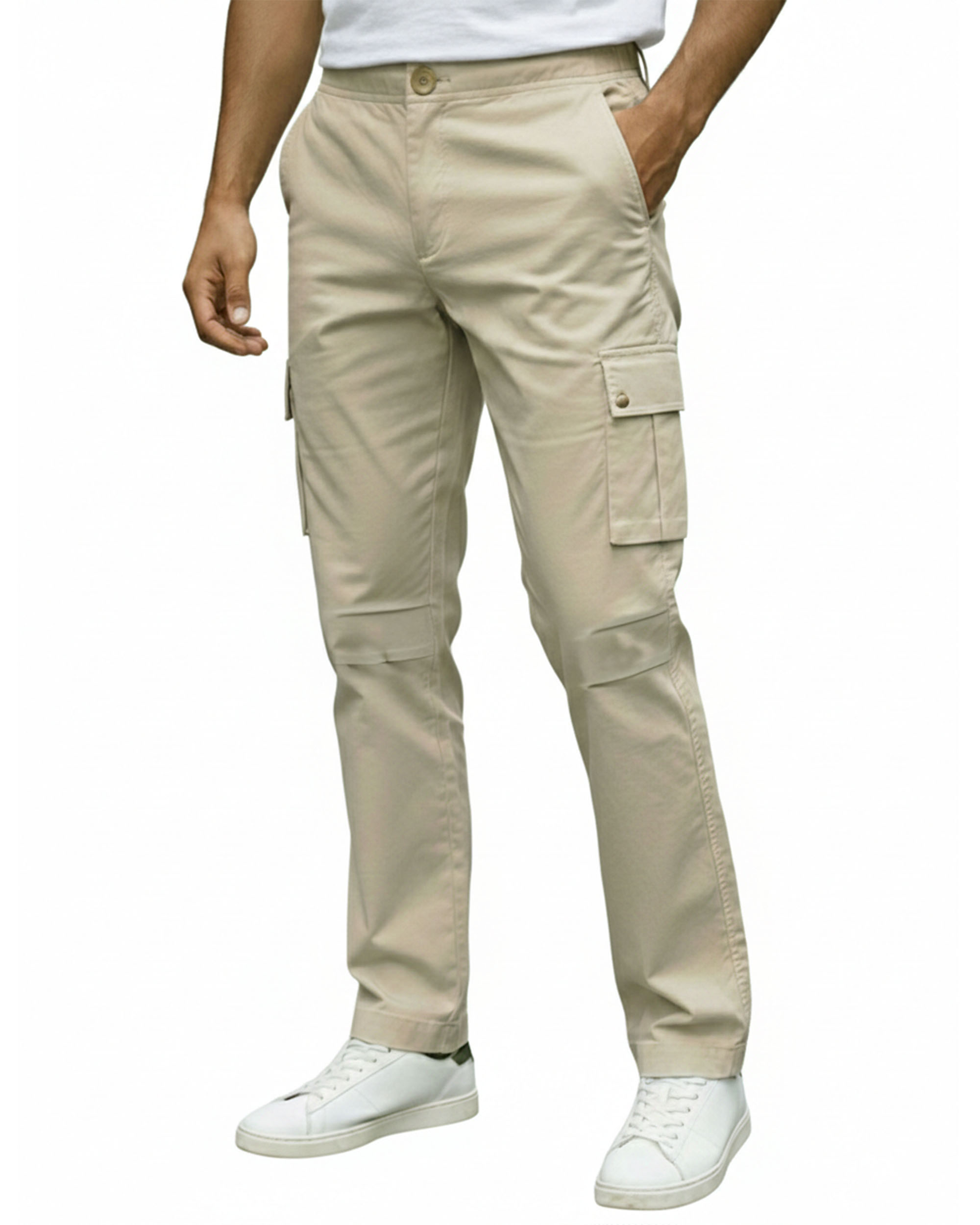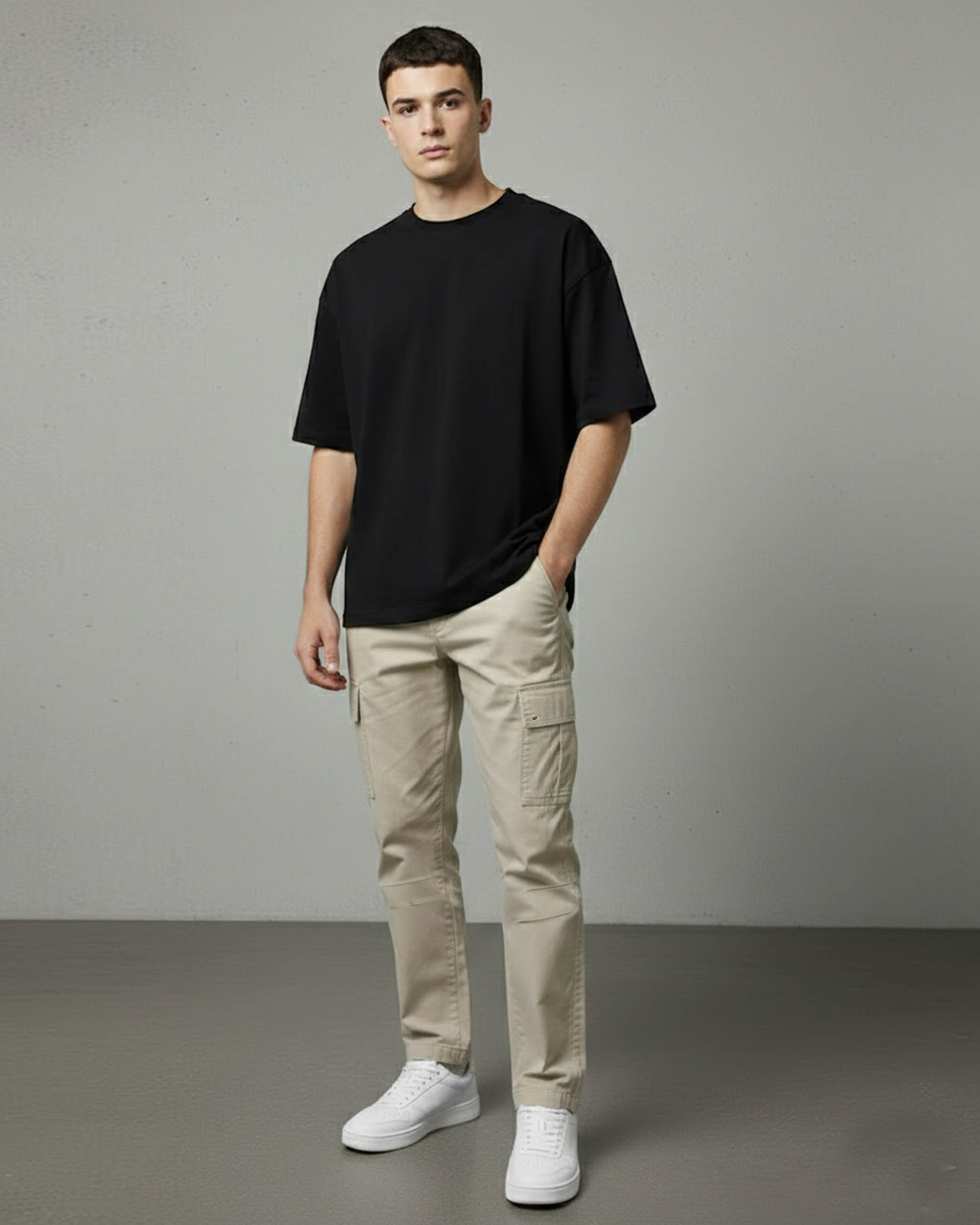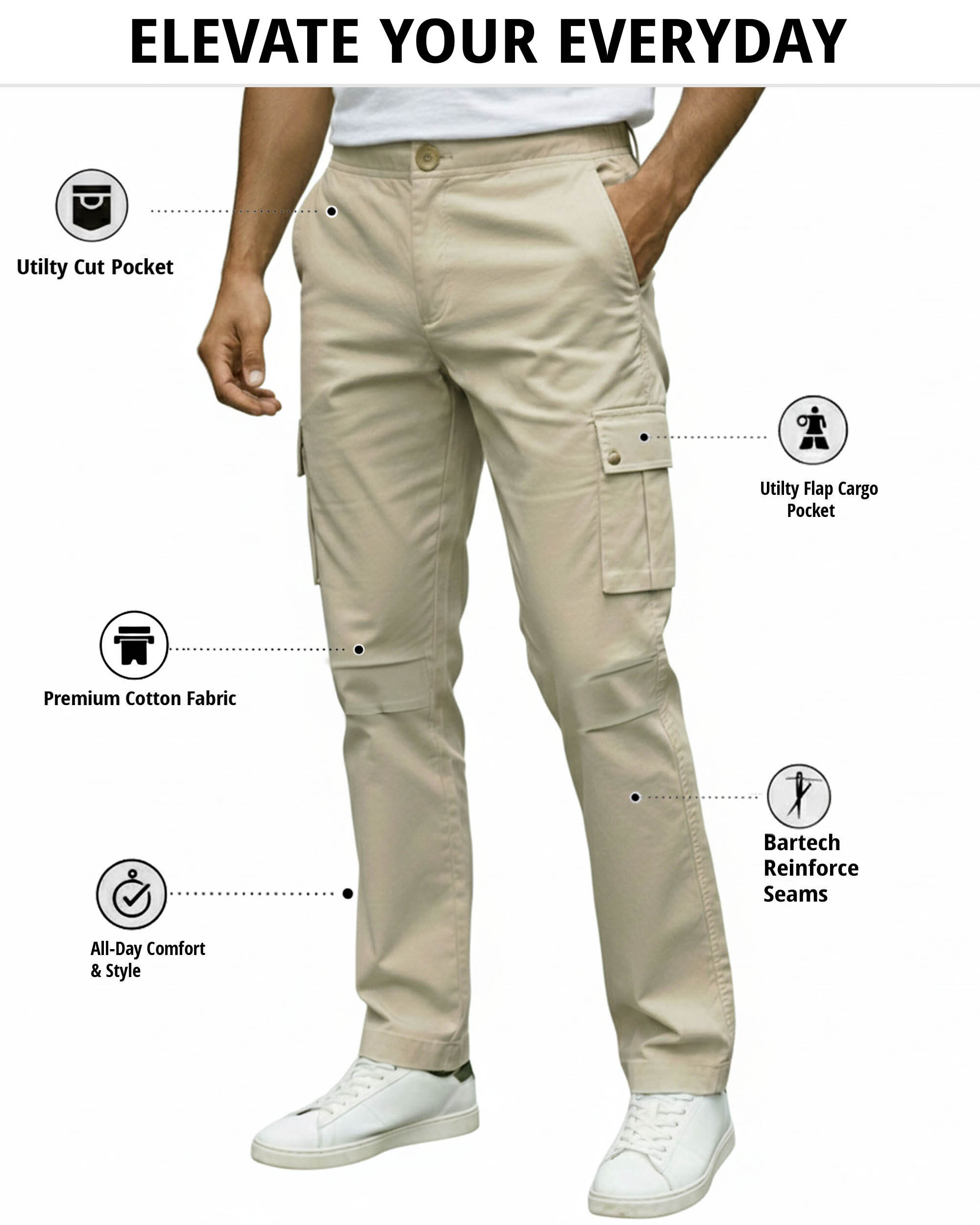 Upgrade your wardrobe with these Men’s Off-White Regular Fit Mid Rise Cotton Cargo Pants, designed to deliver everyday comfort with a modern utility look. Made from premium cotton fabric, these cargo pants are soft, breathable, and perfect for all-day wear. The regular fit offers a relaxed yet structured silhouette, while the mid-rise waist ensures a secure and comfortable fit. Featuring multiple cargo pockets, these pants provide practical storage for your essentials while enhancing the overall style. The elegant off-white color adds a refined touch, making these cargos easy to pair with t-shirts, shirts, or jackets for both casual and smart-casual occasions. Whether you're heading out for travel, weekend outings, or daily activities, these pants are built to keep you comfortable and stylish.