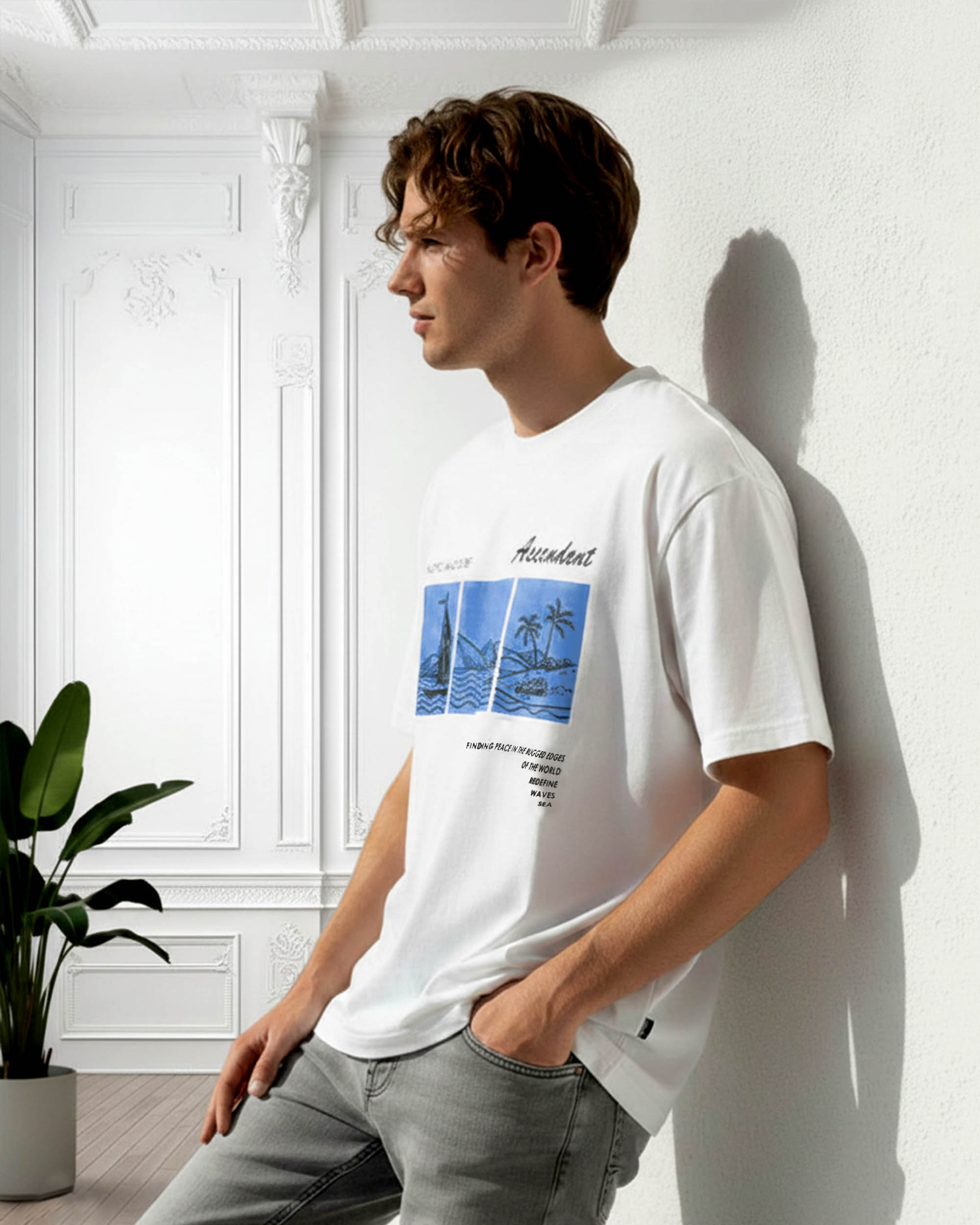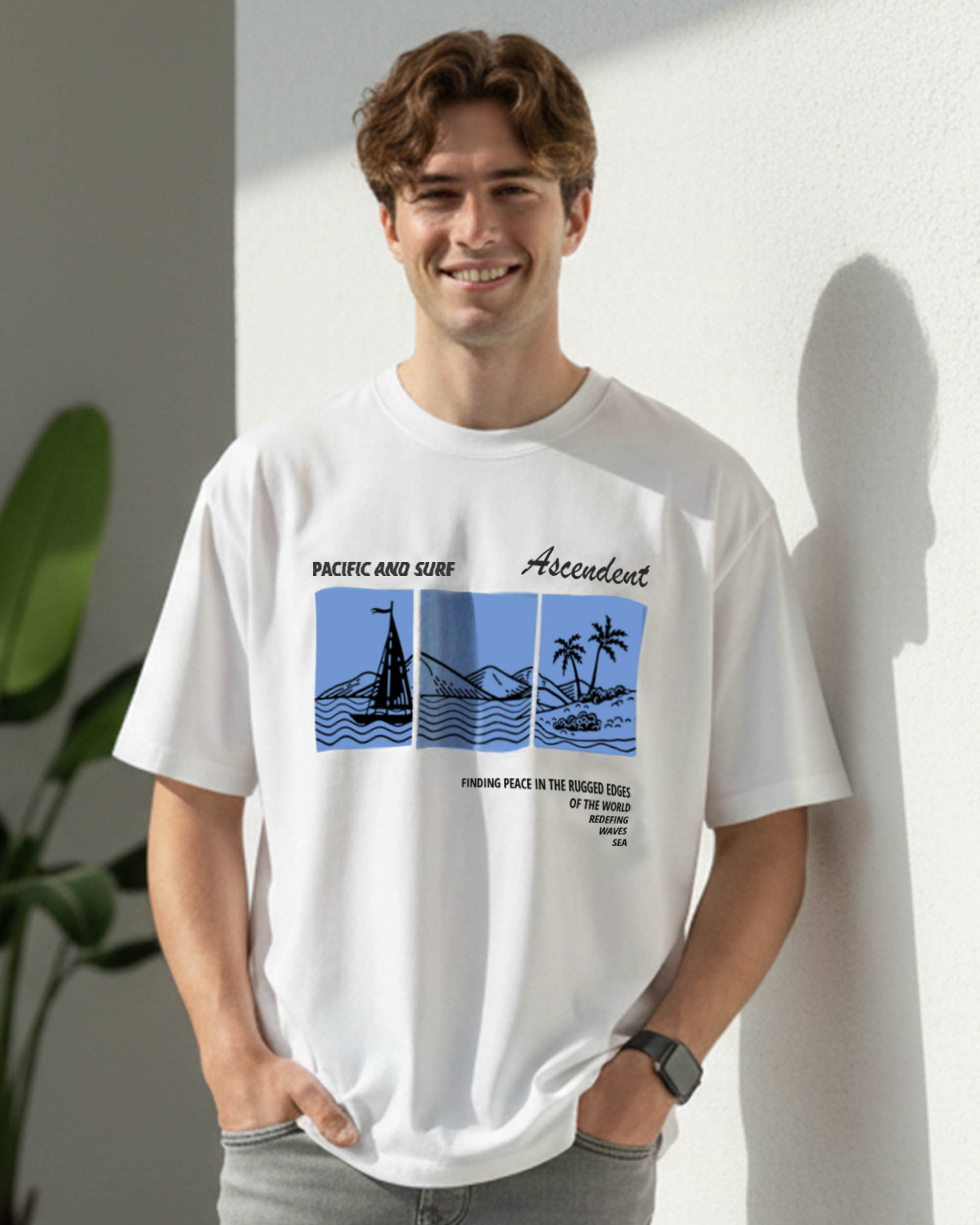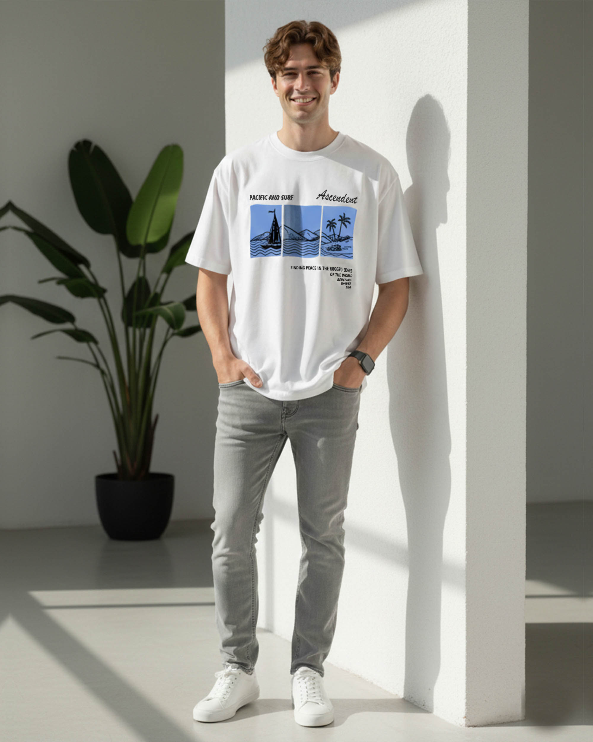 Refresh your casual wardrobe with this Men’s Printed White T-Shirt, designed to deliver both comfort and style. Featuring a modern graphic beach-inspired print, this t-shirt adds a trendy touch to your everyday look. Made from soft and breathable fabric, it keeps you comfortable throughout the day, making it ideal for summer wear, travel, college, or casual outings.