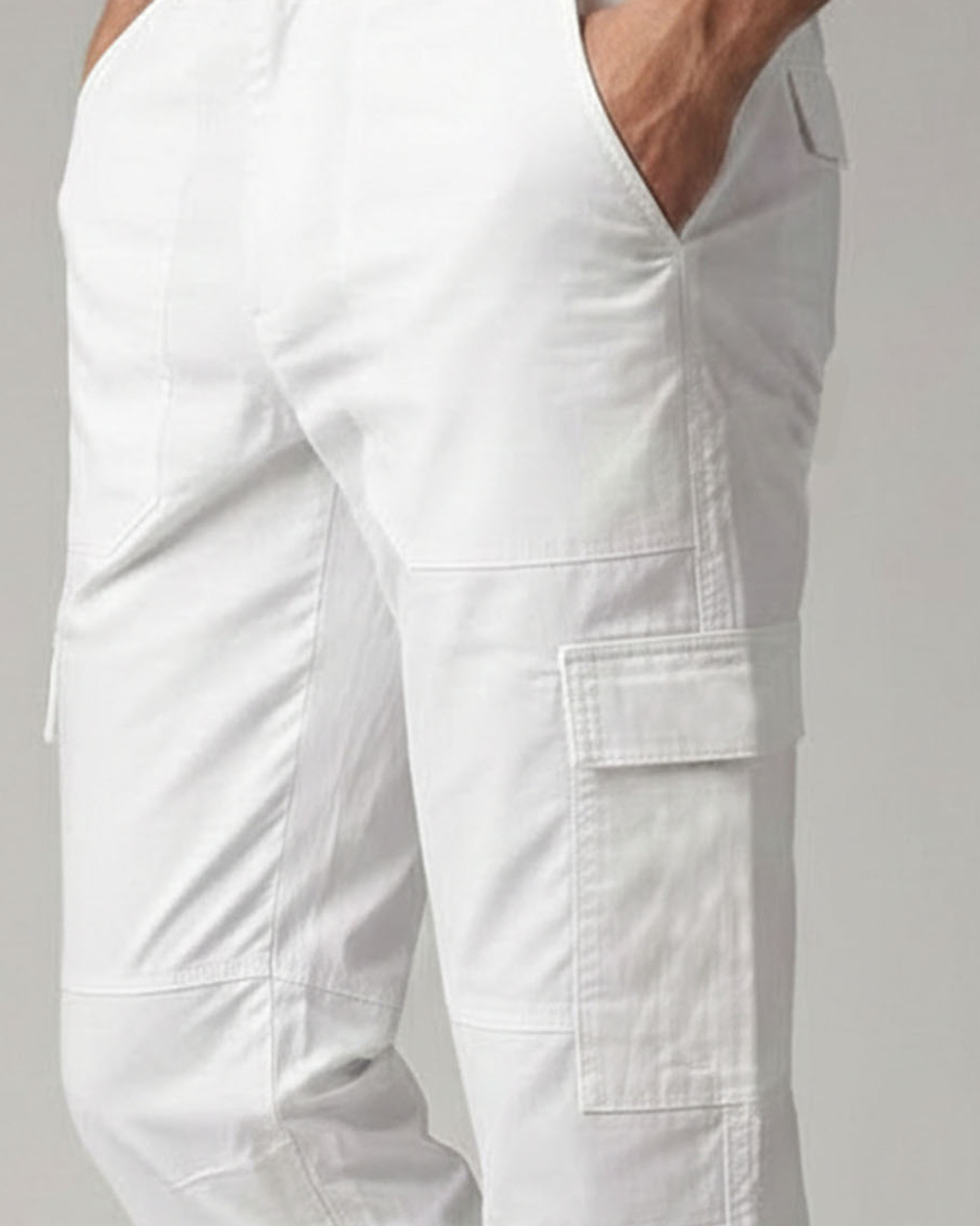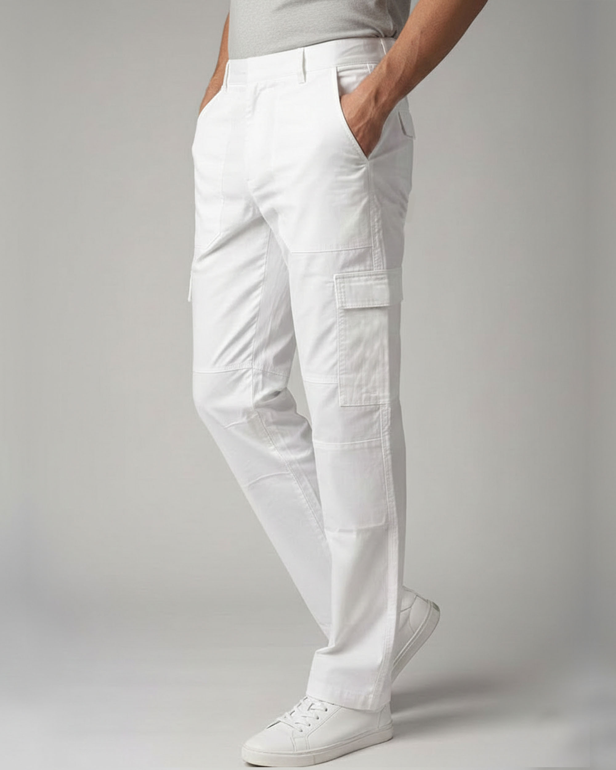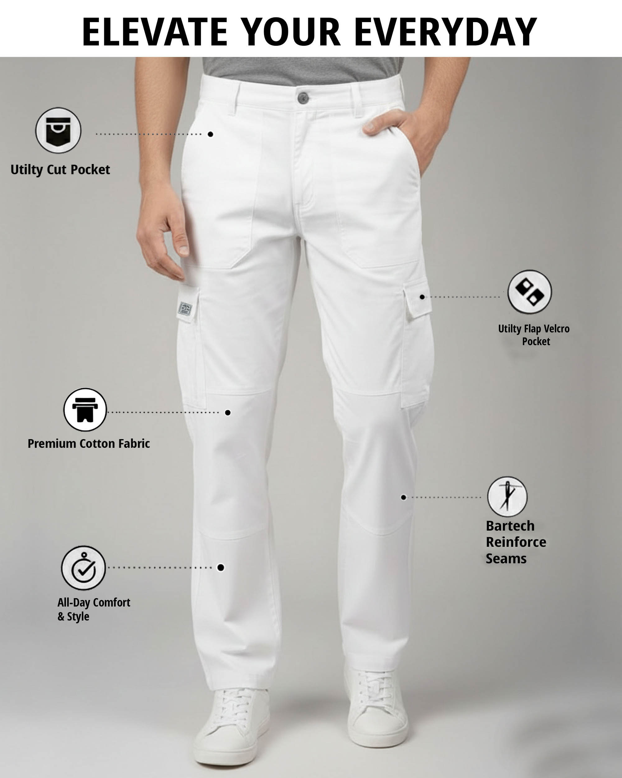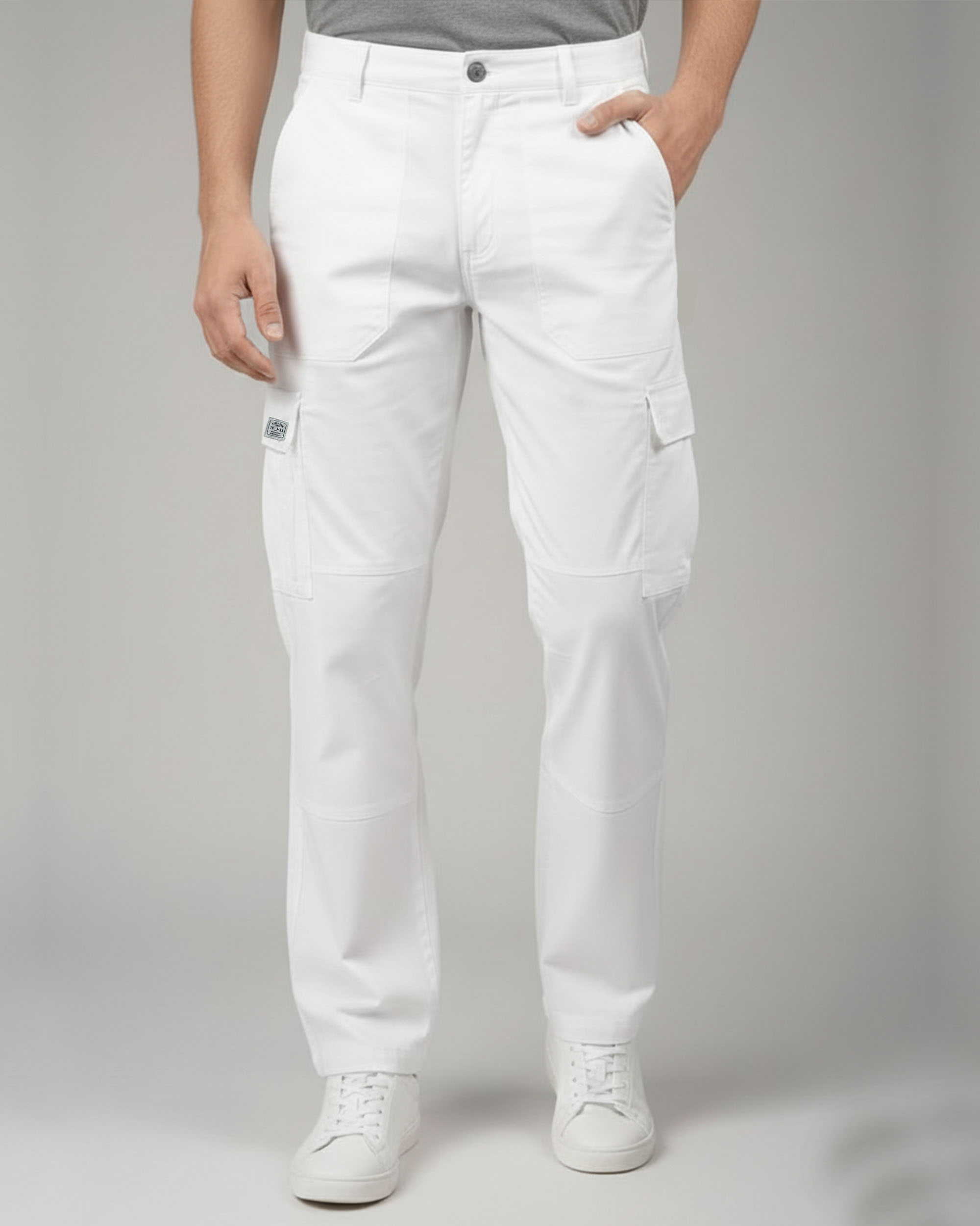 Upgrade your wardrobe with these stylish White Regular Fit Cotton Cargo Pants, crafted for men who value both comfort and fashion. Made from premium-quality cotton, these cargos offer excellent breathability, making them ideal for all-day wear.