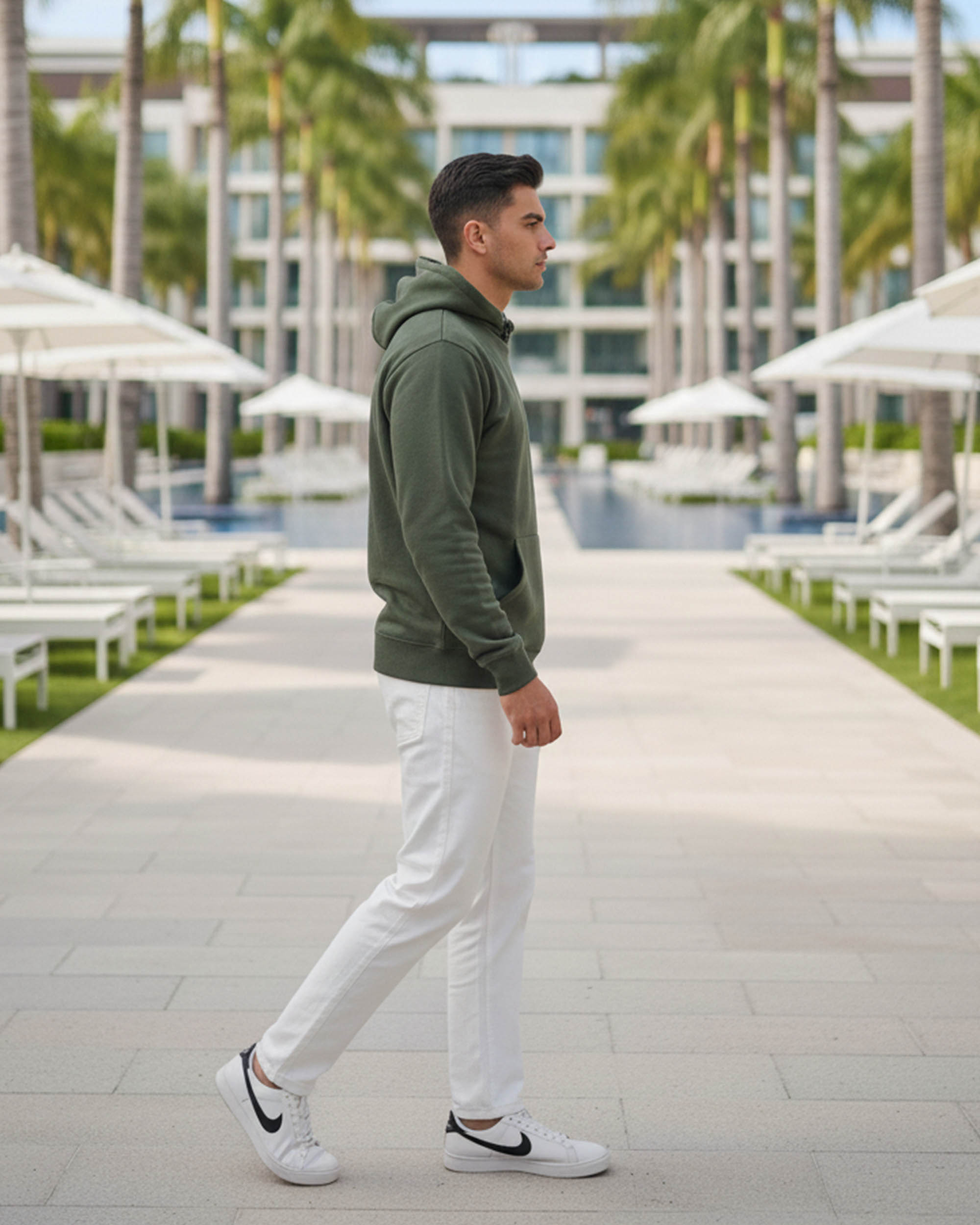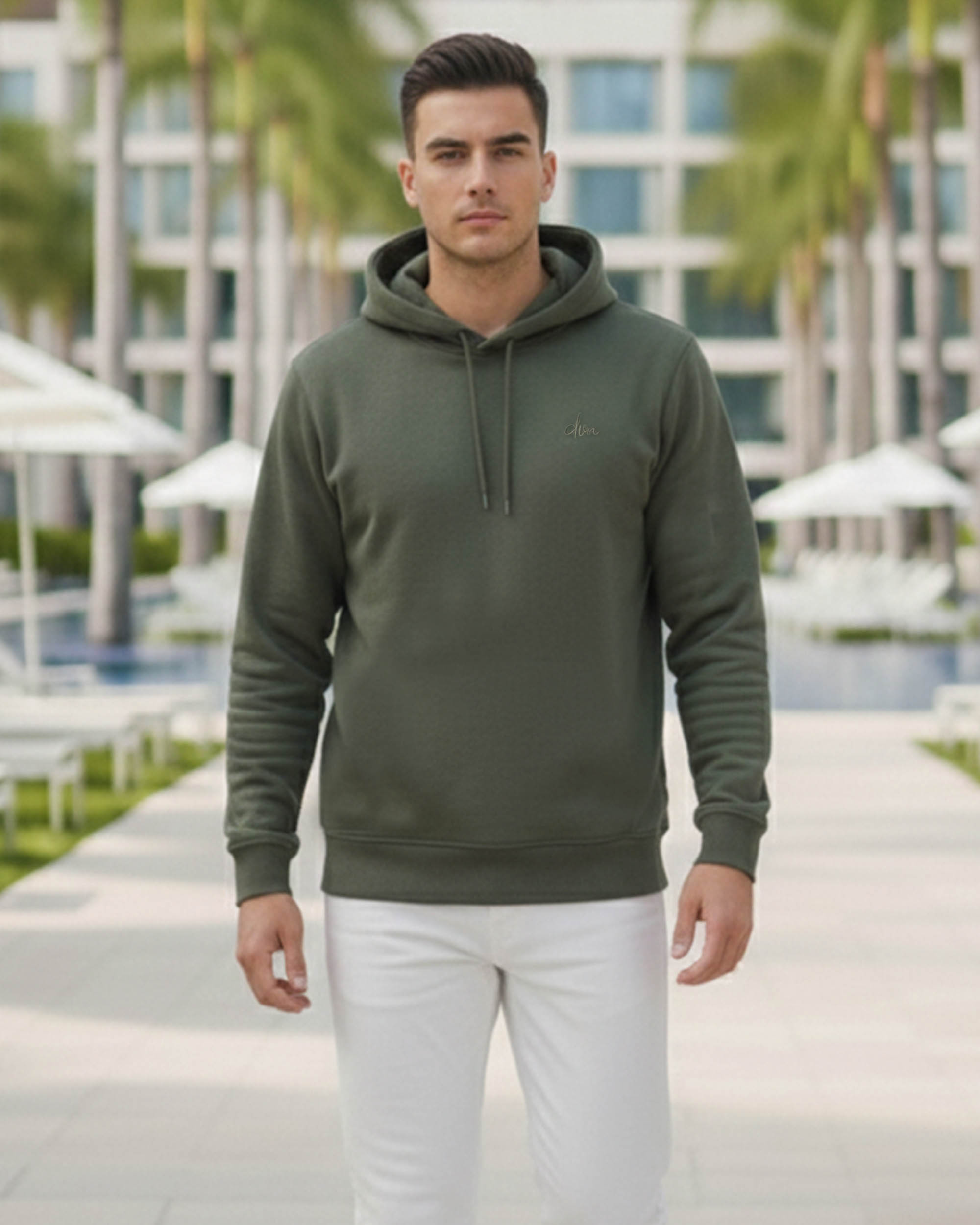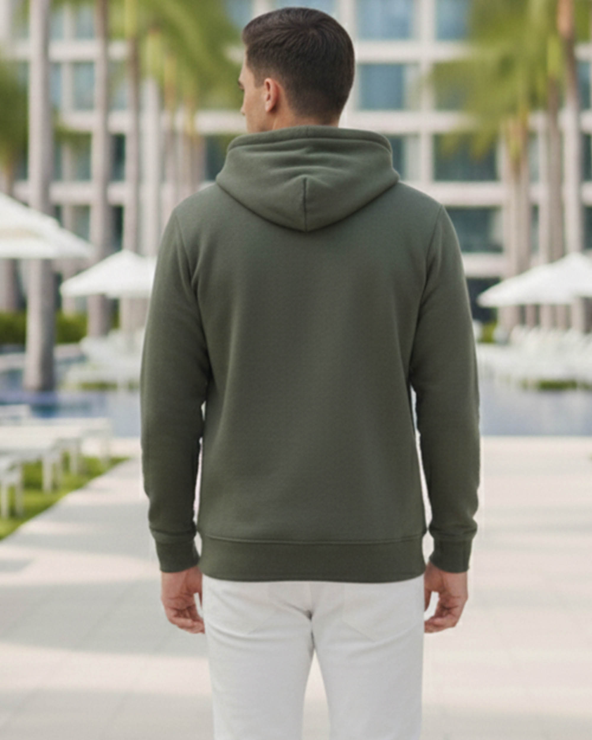 Refresh your casual wardrobe with this men’s solid olive green hooded sweatshirt. Crafted from a soft and breathable cotton blend fabric, this hoodie offers all-day comfort with a premium look. Featuring a minimalist solid design, adjustable hood, and side pocket, it is perfect for casual outings, travel,