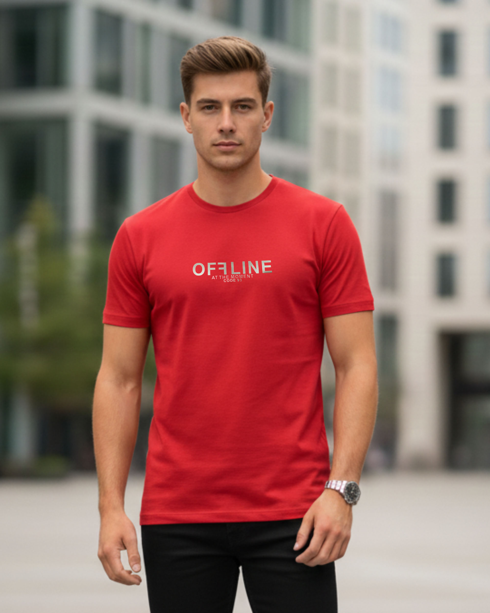 Upgrade your everyday style with this Red “OFFLINE” Printed T-Shirt, designed for men who love casual fashion with a modern touch. The soft cotton-blend fabric feels light, breathable, and comfortable for all-day wear. Featuring a clean round neck, half sleeves, and a slim fit design, this T-shirt pairs perfectly with jeans, joggers, or shorts.