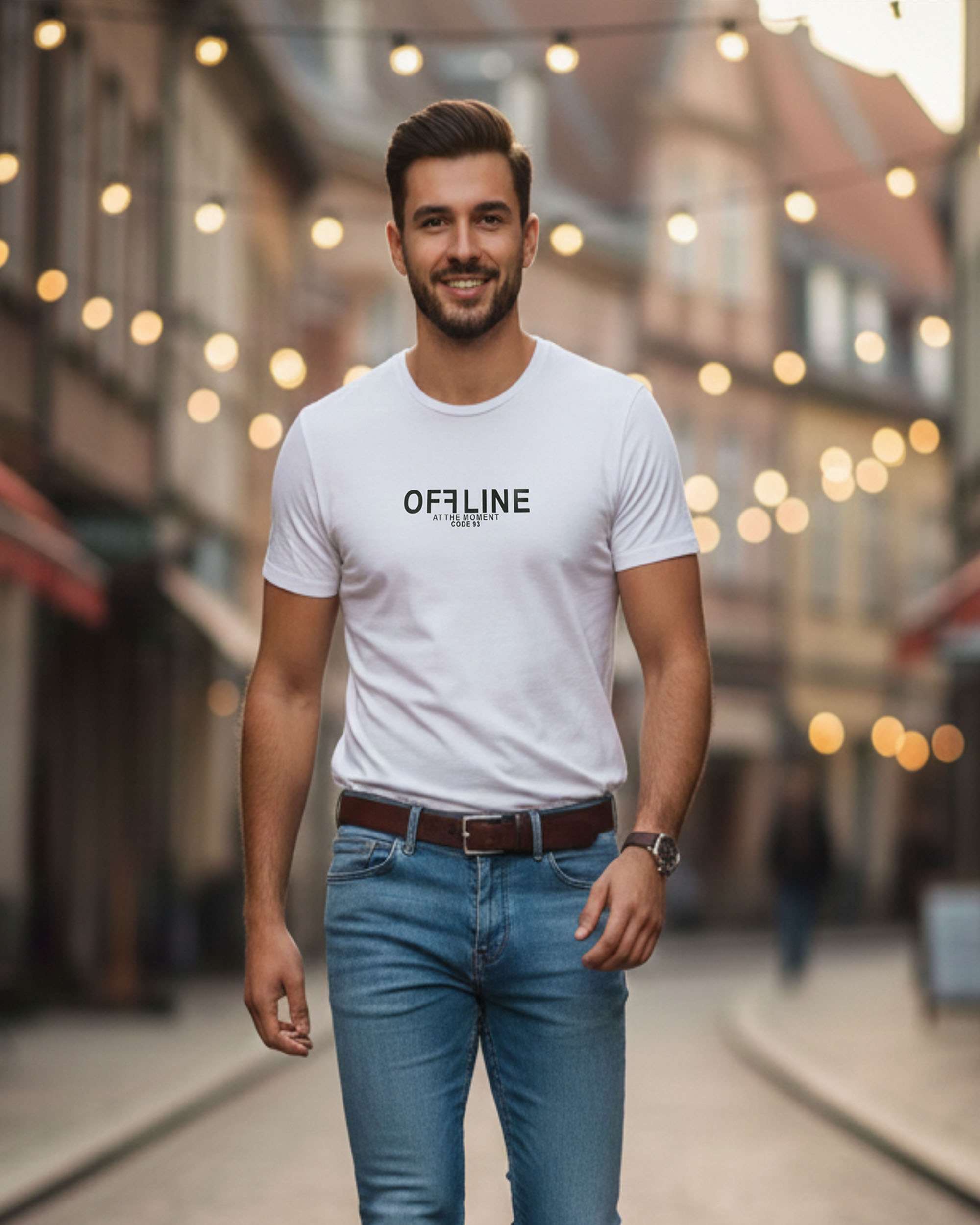 Stay stylish and comfortable with this Men’s White “OFFLINE” Printed Cotton T-Shirt, designed for those who love minimal yet bold fashion. Featuring a clean white base and a modern typography print, this T-shirt brings a refreshing casual vibe that's perfect for everyday use.