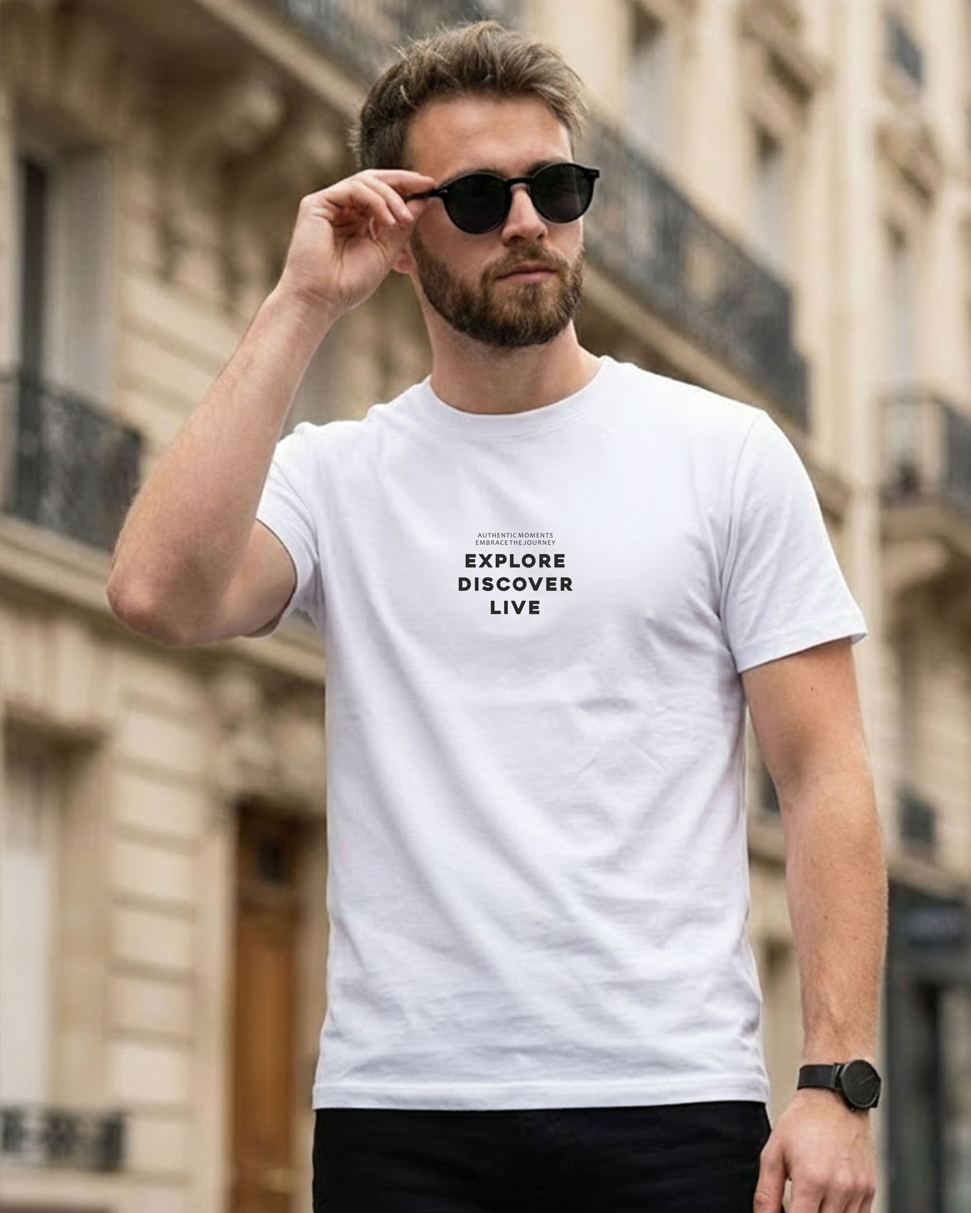 Step out in style with this premium printed cotton T-shirt, designed for men who love to Explore, Discover & Live. Crafted from high-quality 100% breathable cotton, this tee ensures exceptional comfort for all-day wear. The minimalistic center chest print gives a modern, travel-inspired aesthetic—perfect for casual outings, travel, gym warm-ups, daily wear, or pairing with jeans and joggers. The fabric is soft, lightweight, and durable, making it ideal for summers as well as layering in winters.