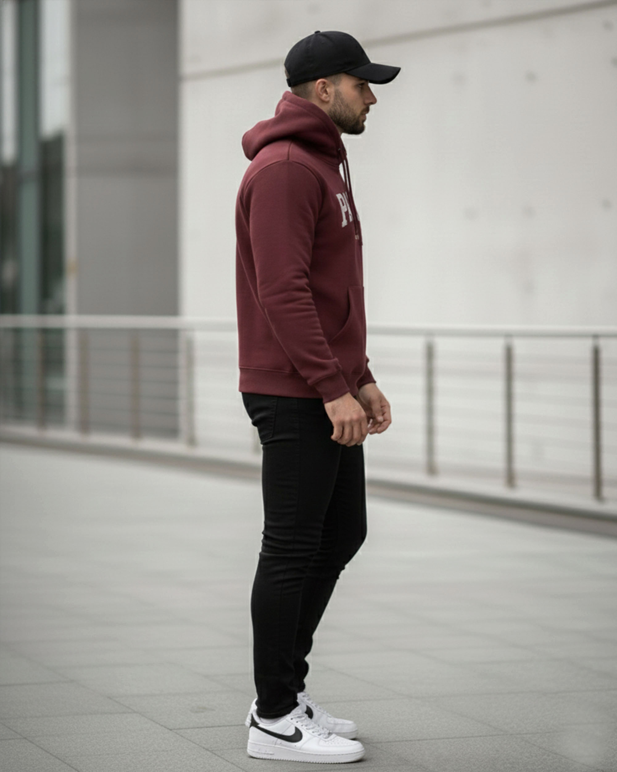 Upgrade your casual wardrobe with this stylish Men’s Maroon Printed Hoodie Sweatshirt. Designed with a bold front graphic print and a comfortable hooded neck, this sweatshirt offers a perfect blend of fashion and comfort. Crafted from a soft cotton blend fabric, it provides warmth without feeling bulky. The kangaroo pocket adds both style and functionality, making it ideal for casual outings, travel, and everyday wear.