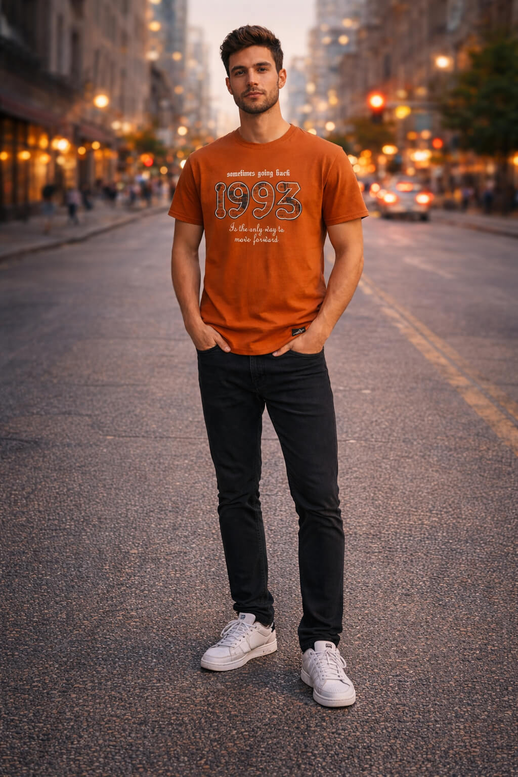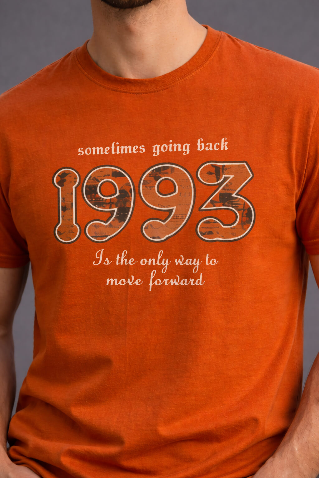 Add a bold and confident touch to your everyday wardrobe with this Men’s Rust Orange 1993 Graphic Print T-Shirt from Davno. Designed for men who appreciate statement fashion with a vintage vibe, this T-shirt perfectly balances comfort and standout style.