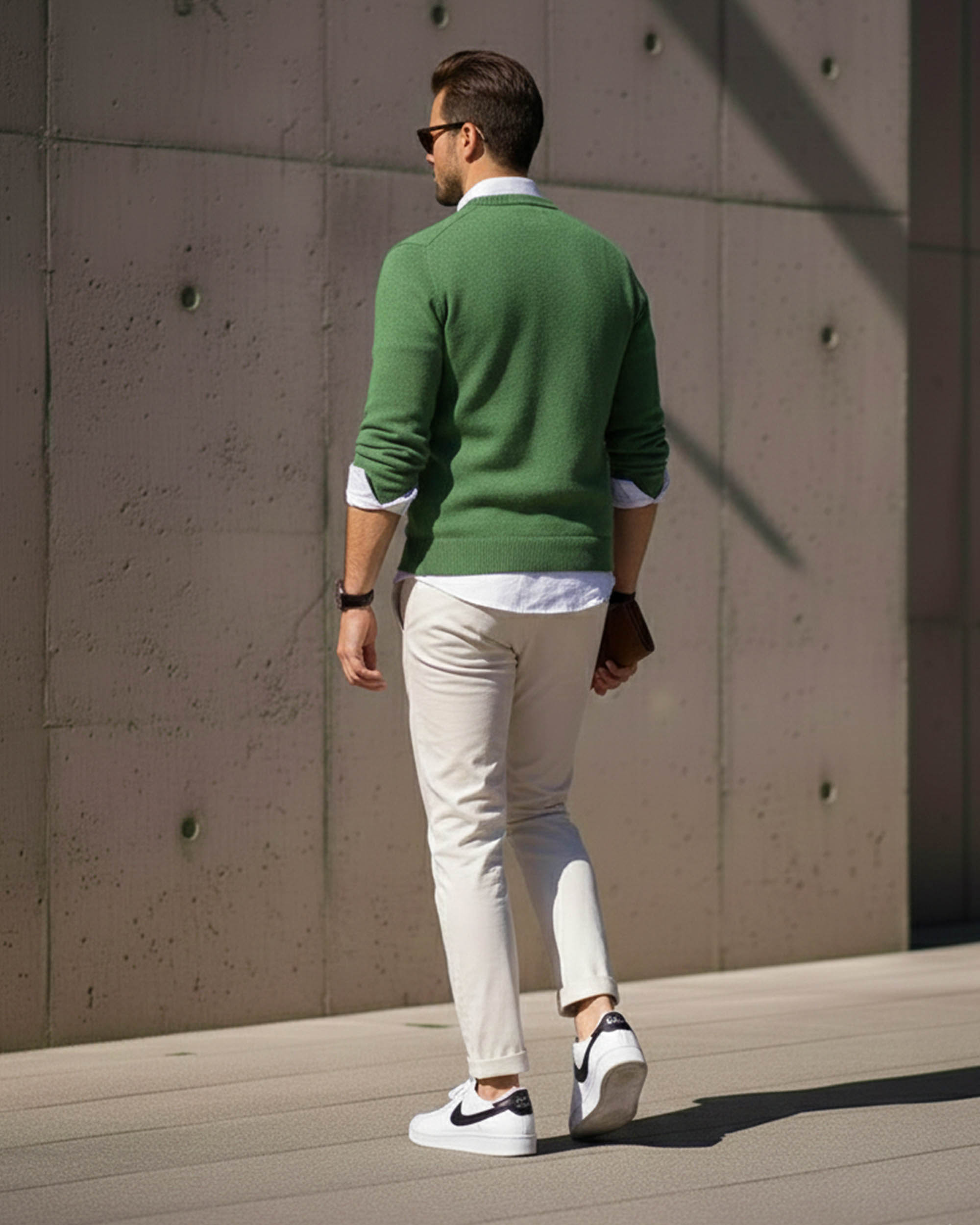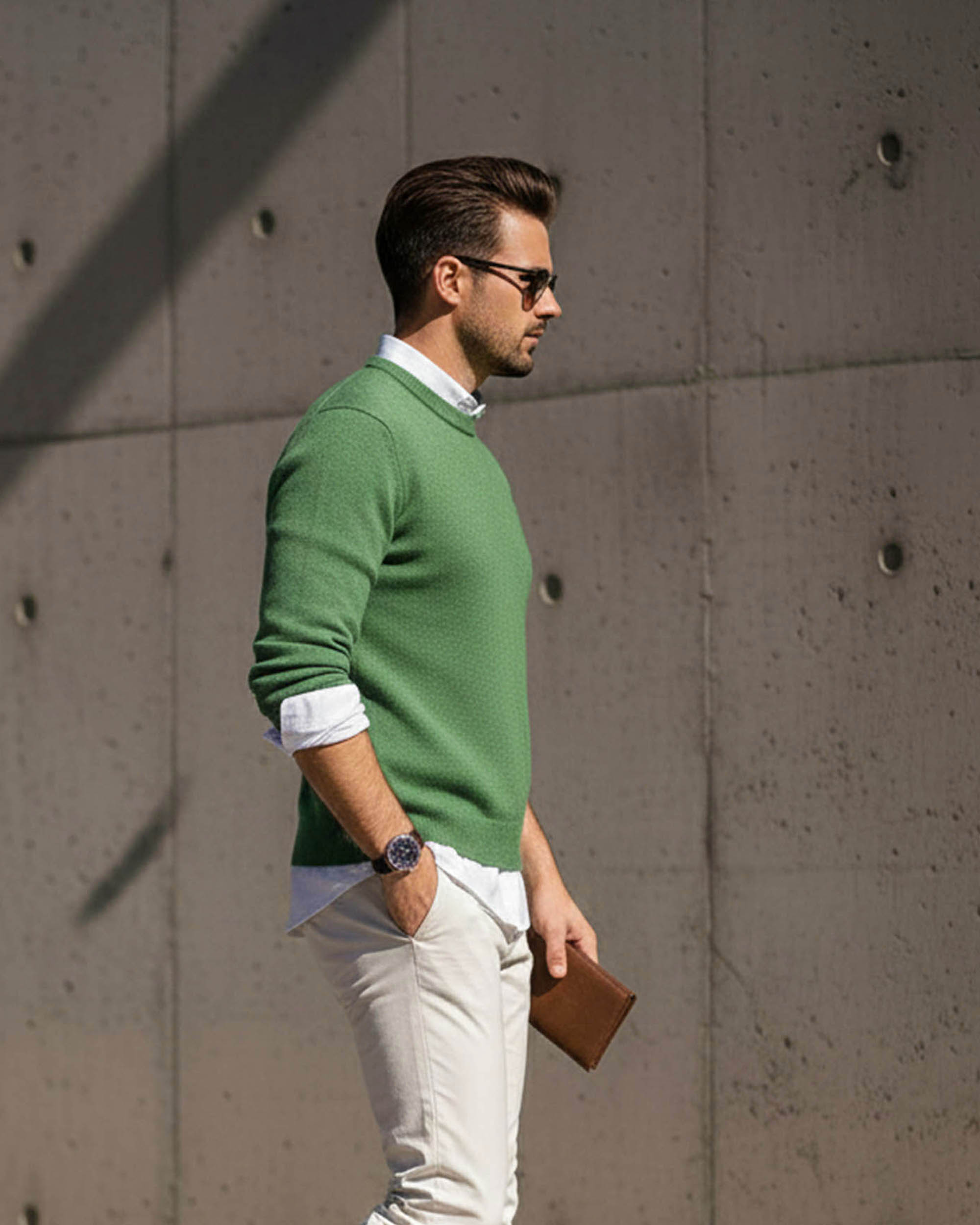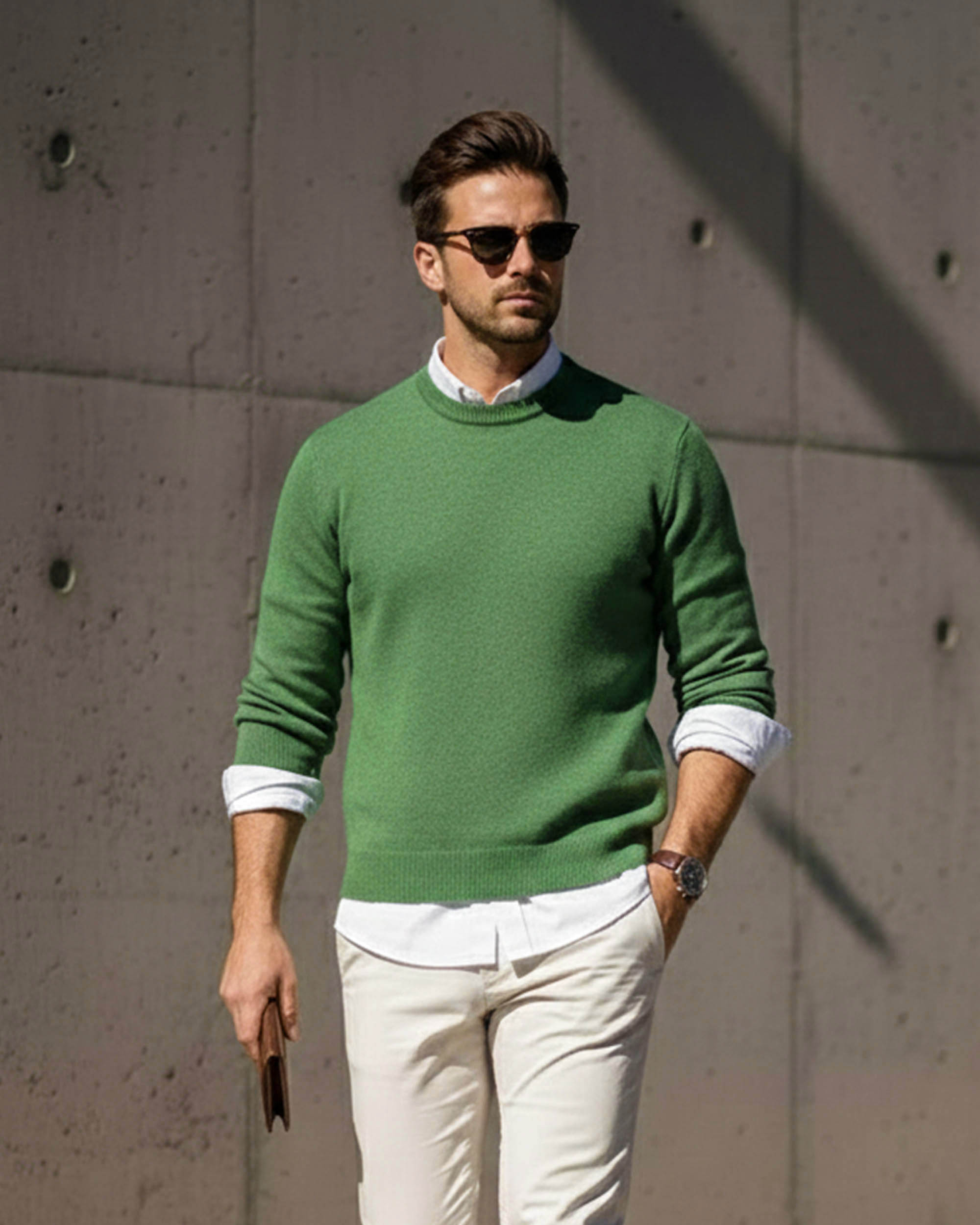 Timeless and versatile, this solid green sweater offers effortless style and everyday comfort. Crafted from a warm yet breathable knit fabric, it features a classic crew neck, ribbed cuffs, and hem for a neat silhouette. The clean, minimal design makes it perfect for layering over shirts or under jackets—ideal for office, weekend, or smart-casual settings.