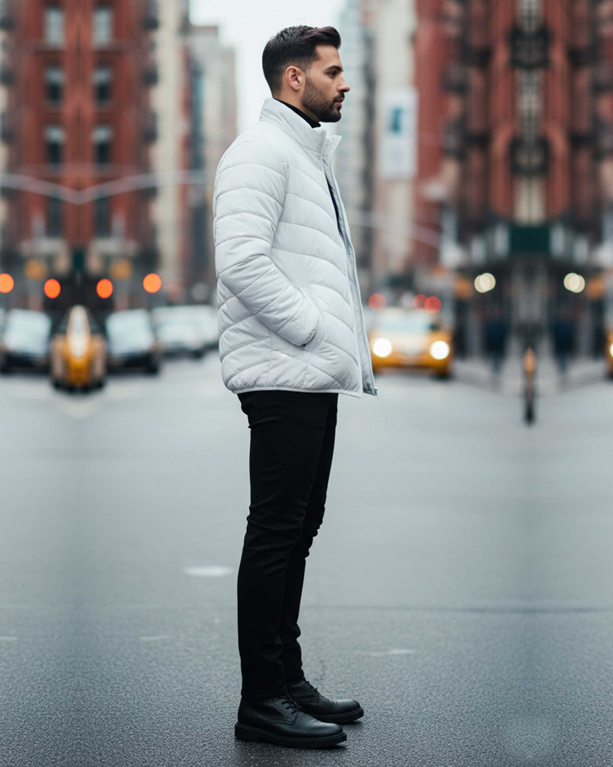 Stay stylish and warm this winter with our White quilted puffer jacket for men. Designed with lightweight yet insulating fabric, it provides excellent warmth without adding bulk. The modern quilt pattern, full front zipper, and high-neck collar make it a versatile choice for everyday wear, travel, and outdoor activities. Pair it with jeans, joggers, or chinos for a complete winter-ready look.