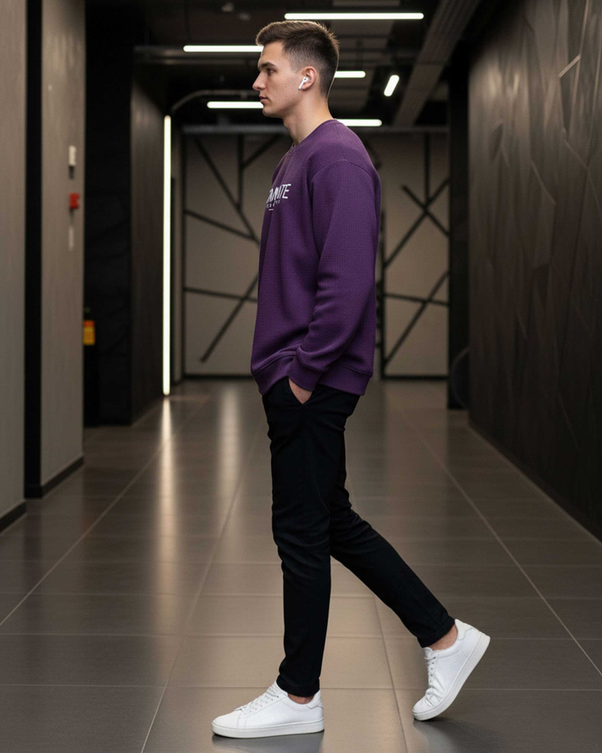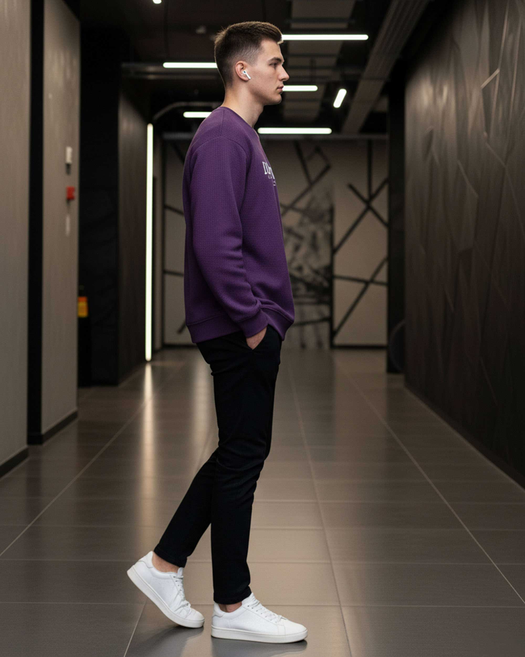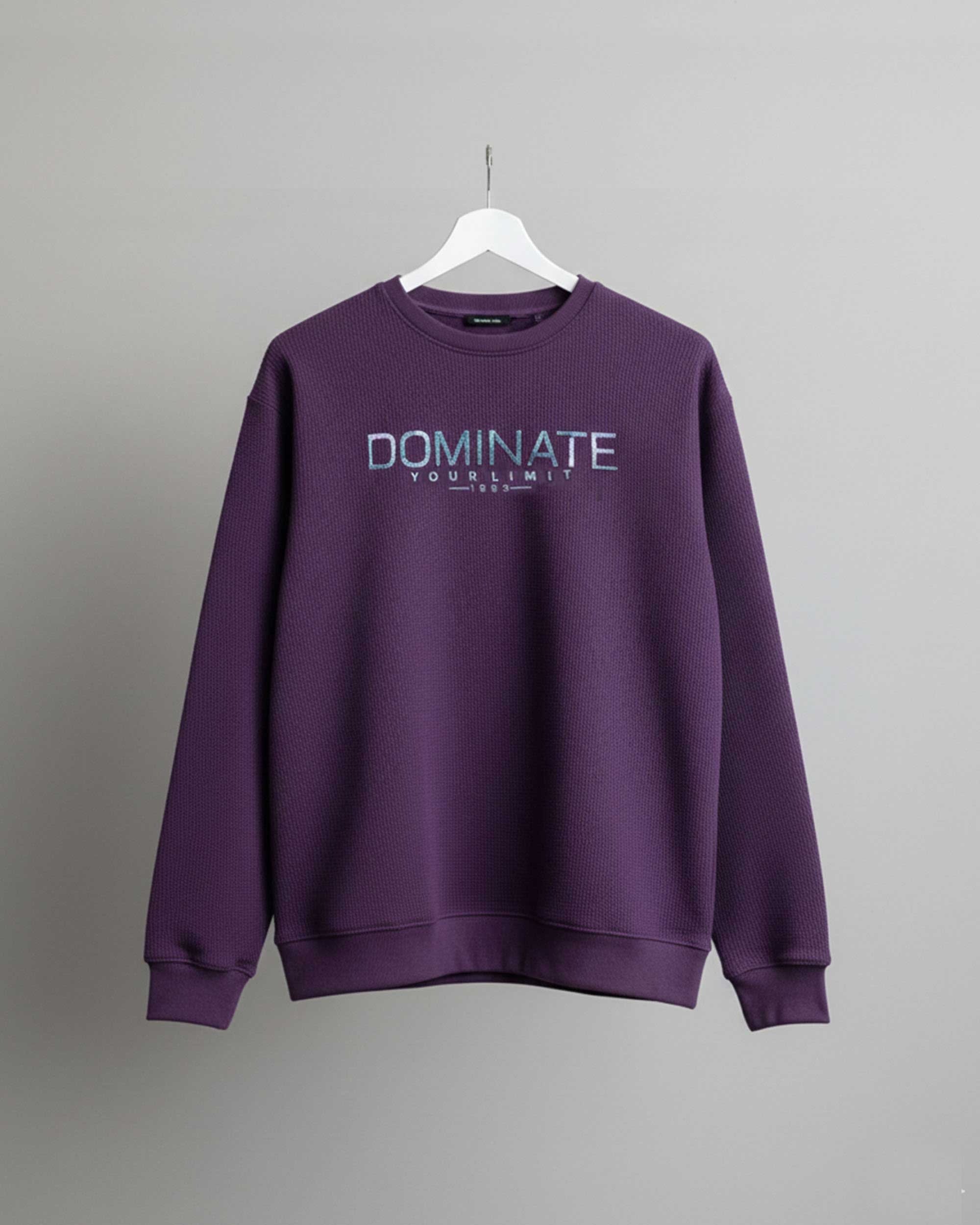 Upgrade your winter wardrobe with this stylish and comfortable purple printed sweatshirt. Designed with a soft textured fabric and premium stitching, it combines warmth, durability, and modern streetwear fashion. The "DOMINATE — YOUR LIMIT" chest print adds a motivational and sporty touch, making it perfect for college, gym-to-street style, travel, and daily casual wear. Pair it effortlessly