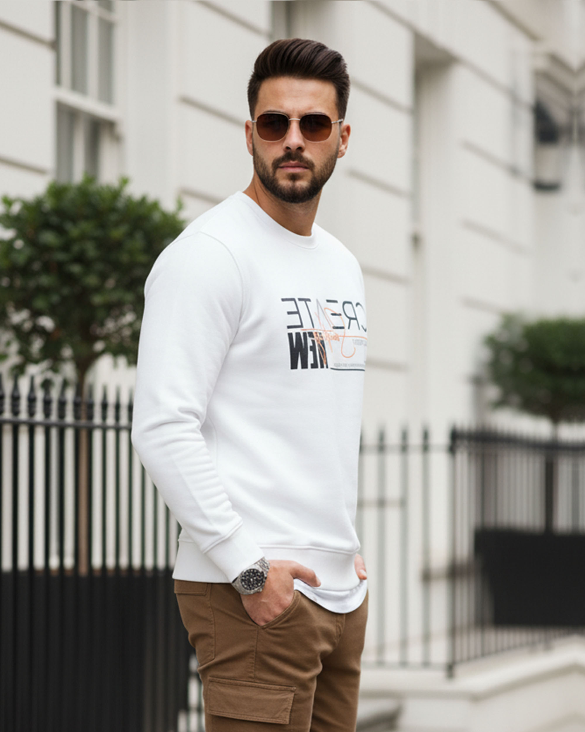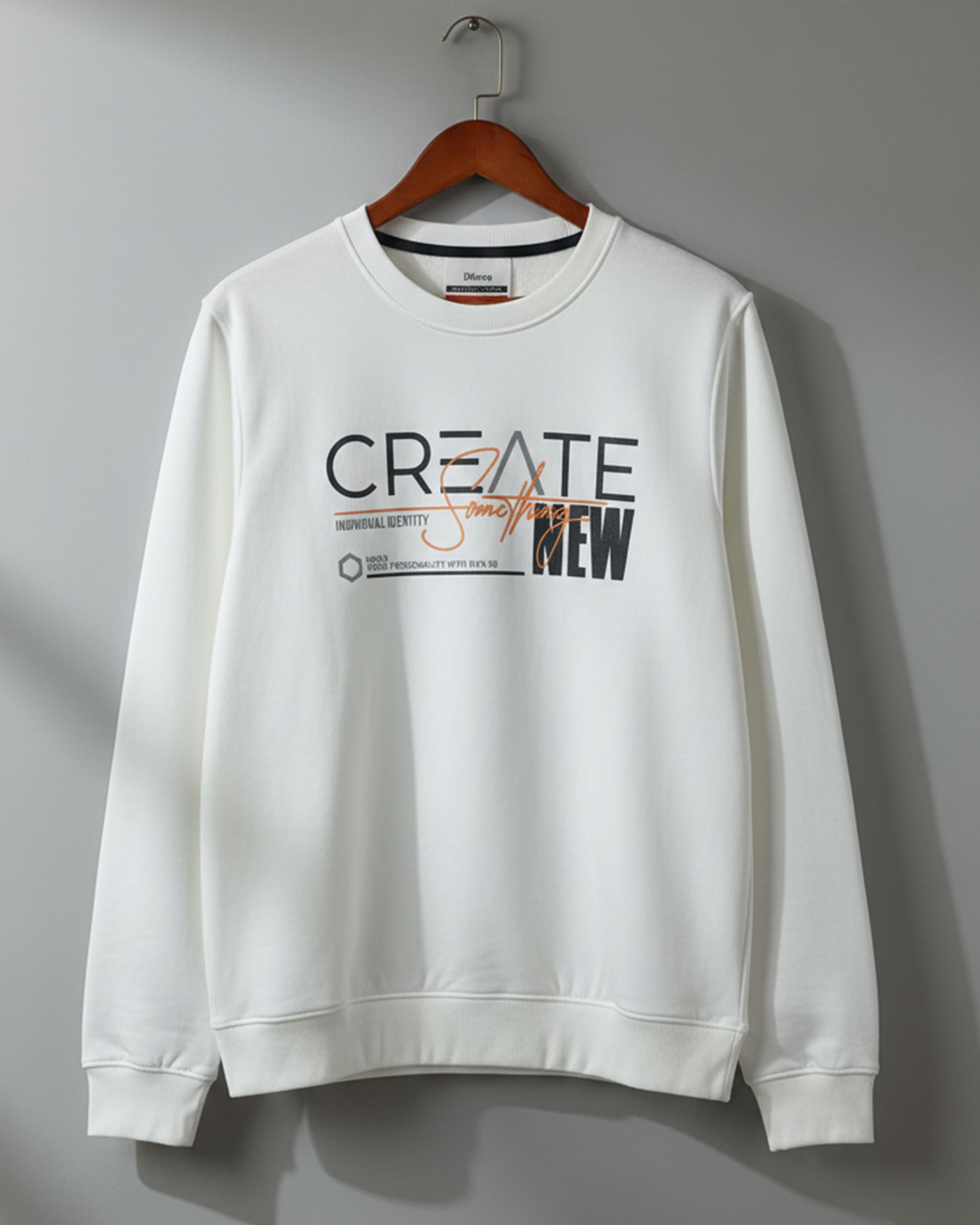 Showcase your modern and confident personality with this "Create Something New" printed fleece sweatshirt, made for comfort, warmth and style. Crafted from high-quality fleece, it offers excellent insulation while remaining breathable and lightweight. The trendy round neck and rib knit finishing give it a premium street-style appearance.